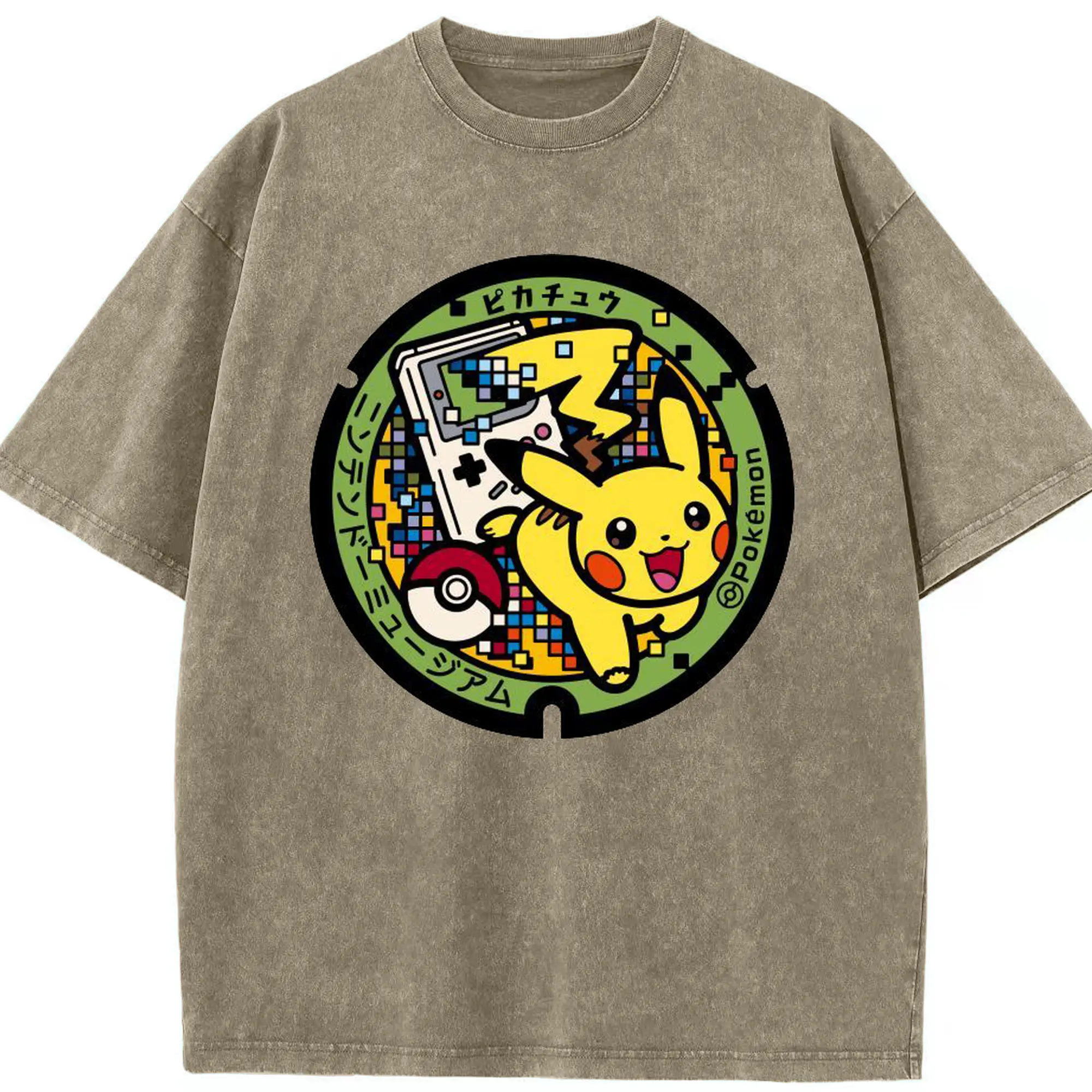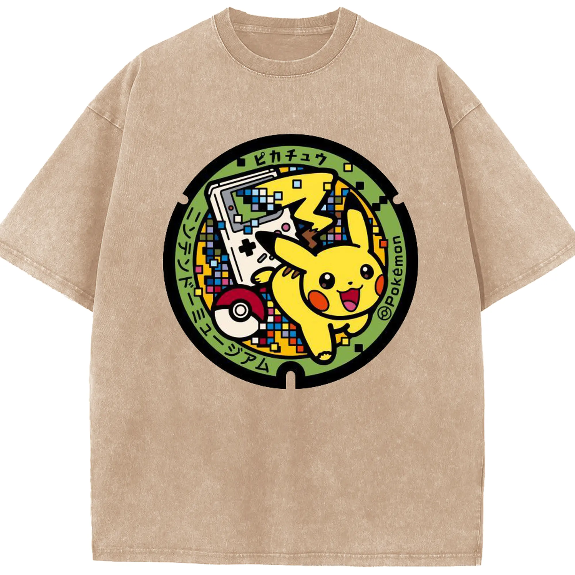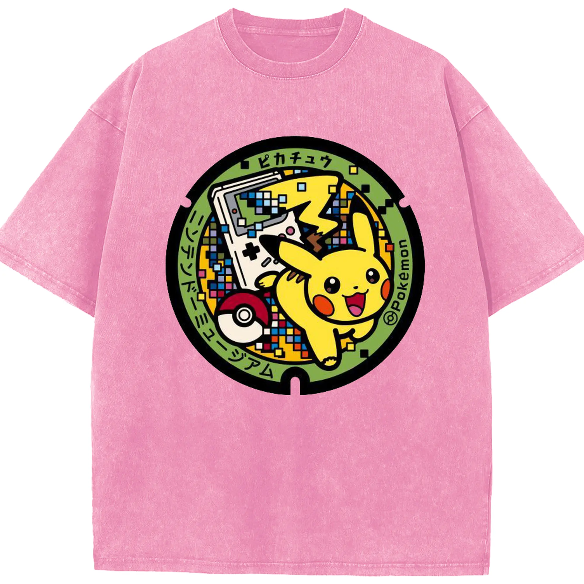 ポケモン ポケモン - 綿100% ヴィンテージ風 半袖Tシャツ ・ フロントプリント ・ 柔らか肌触り ・ 通気性 快適 ・ スポーツ カジュアル 外出用
