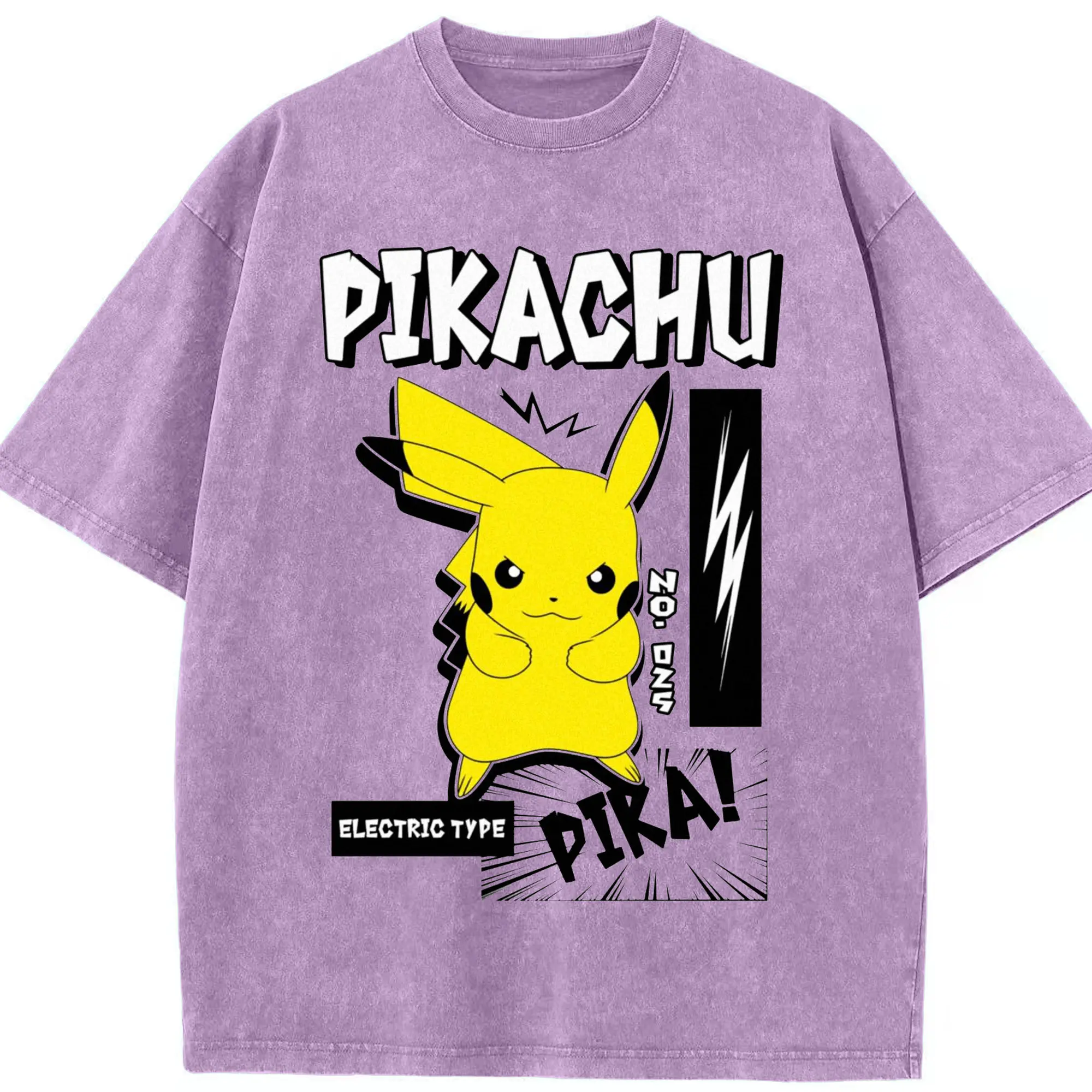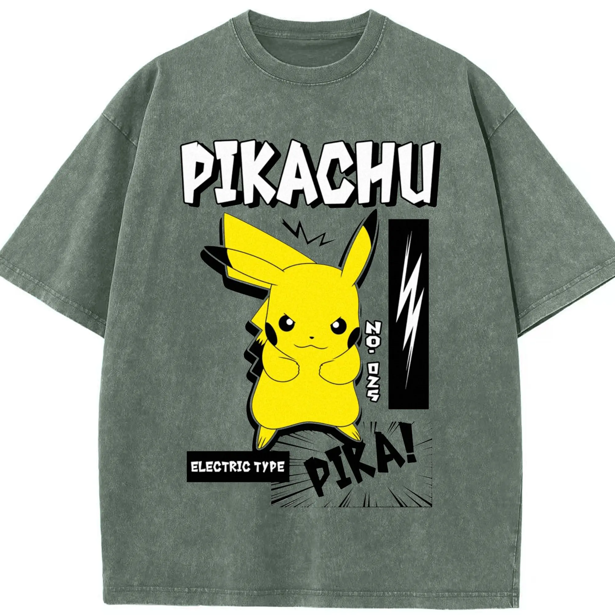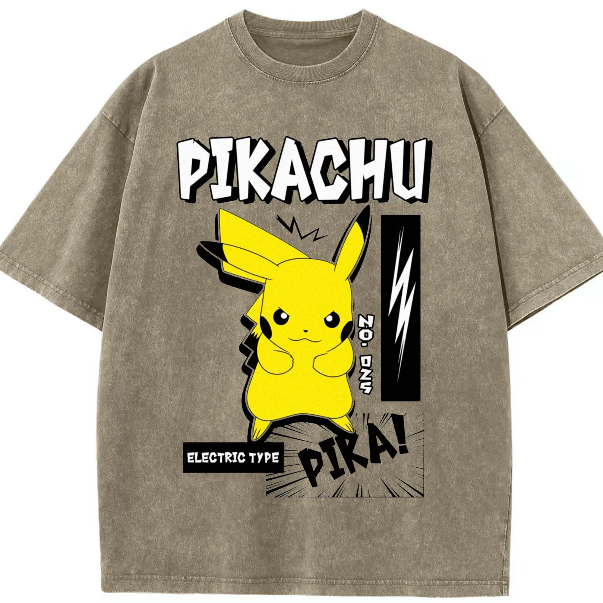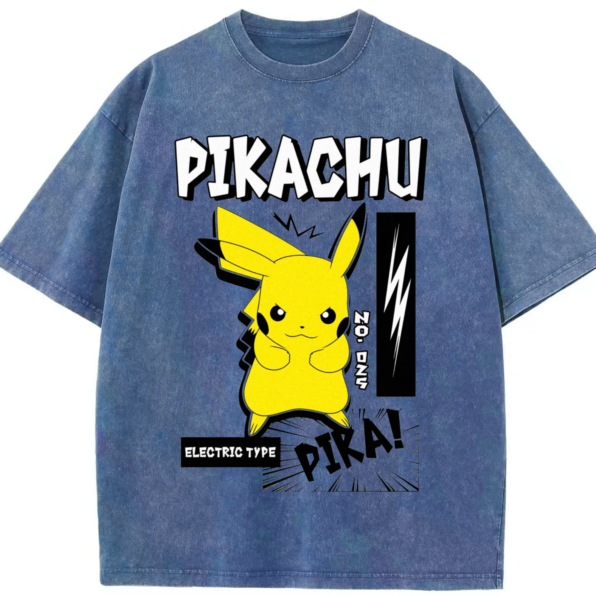 ポケモンピカチュウ - 綿100% ヴィンテージ風 半袖Tシャツ ・ フロントプリント ・ 柔らか肌触り ・ 通気性 快適 ・ スポーツ カジュアル 外出用