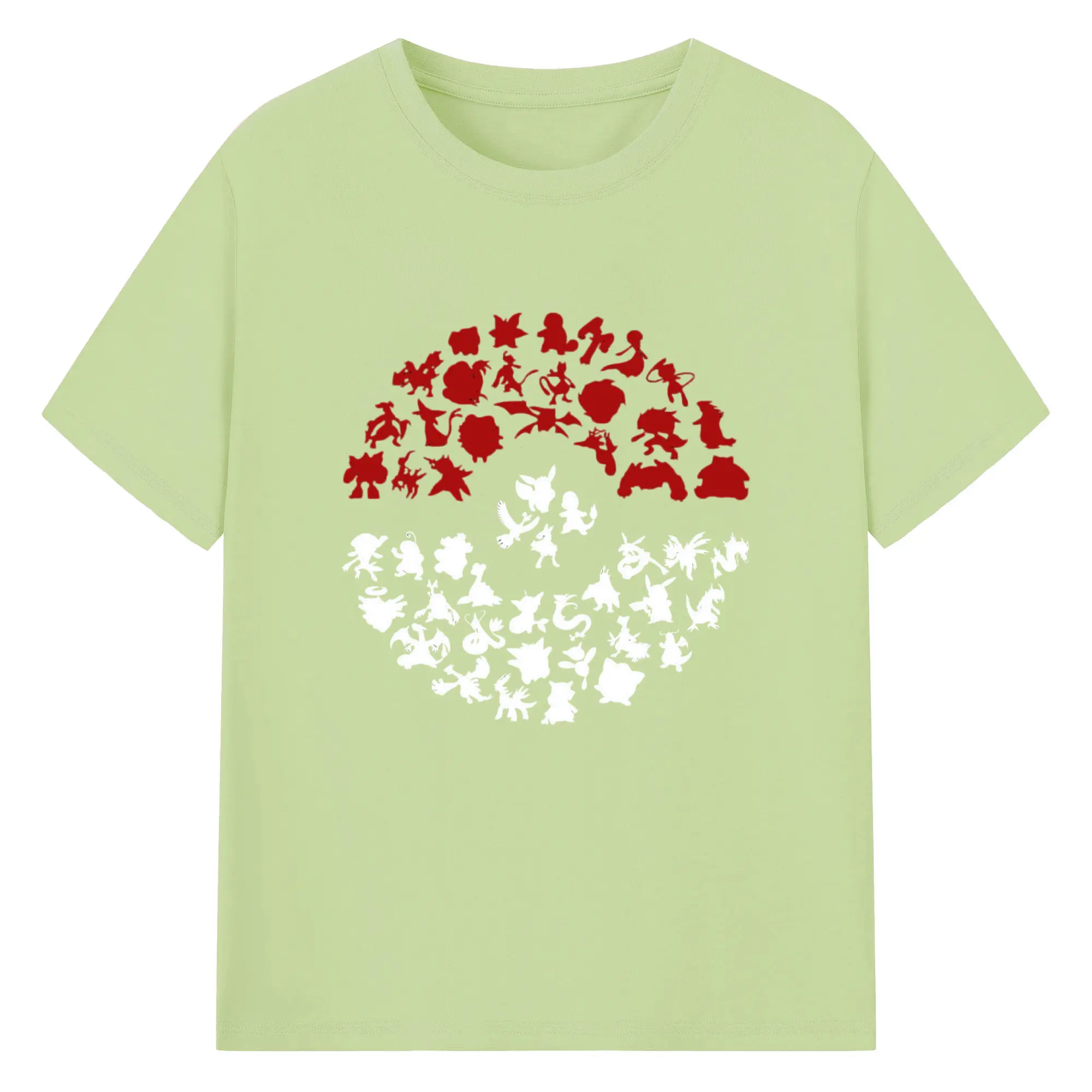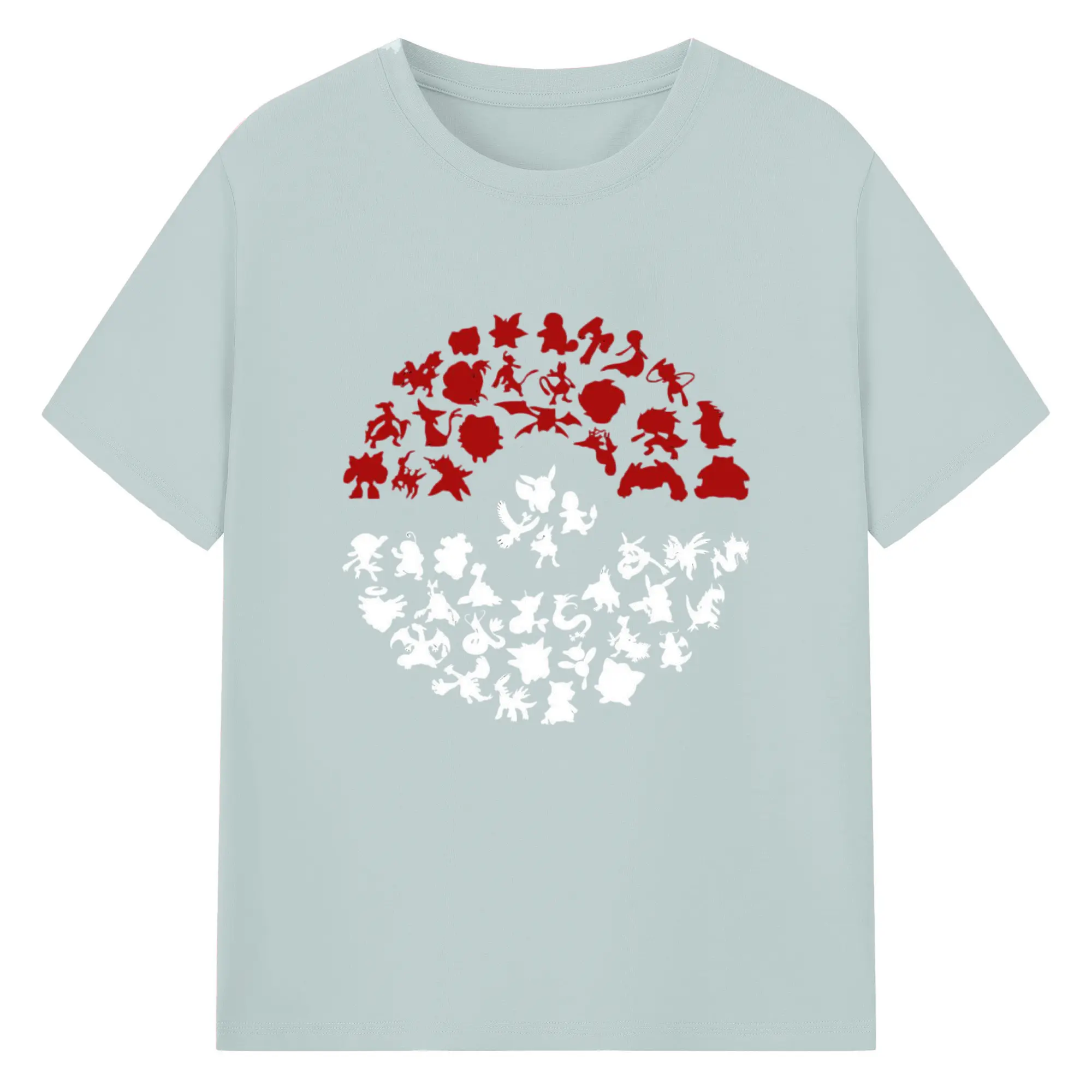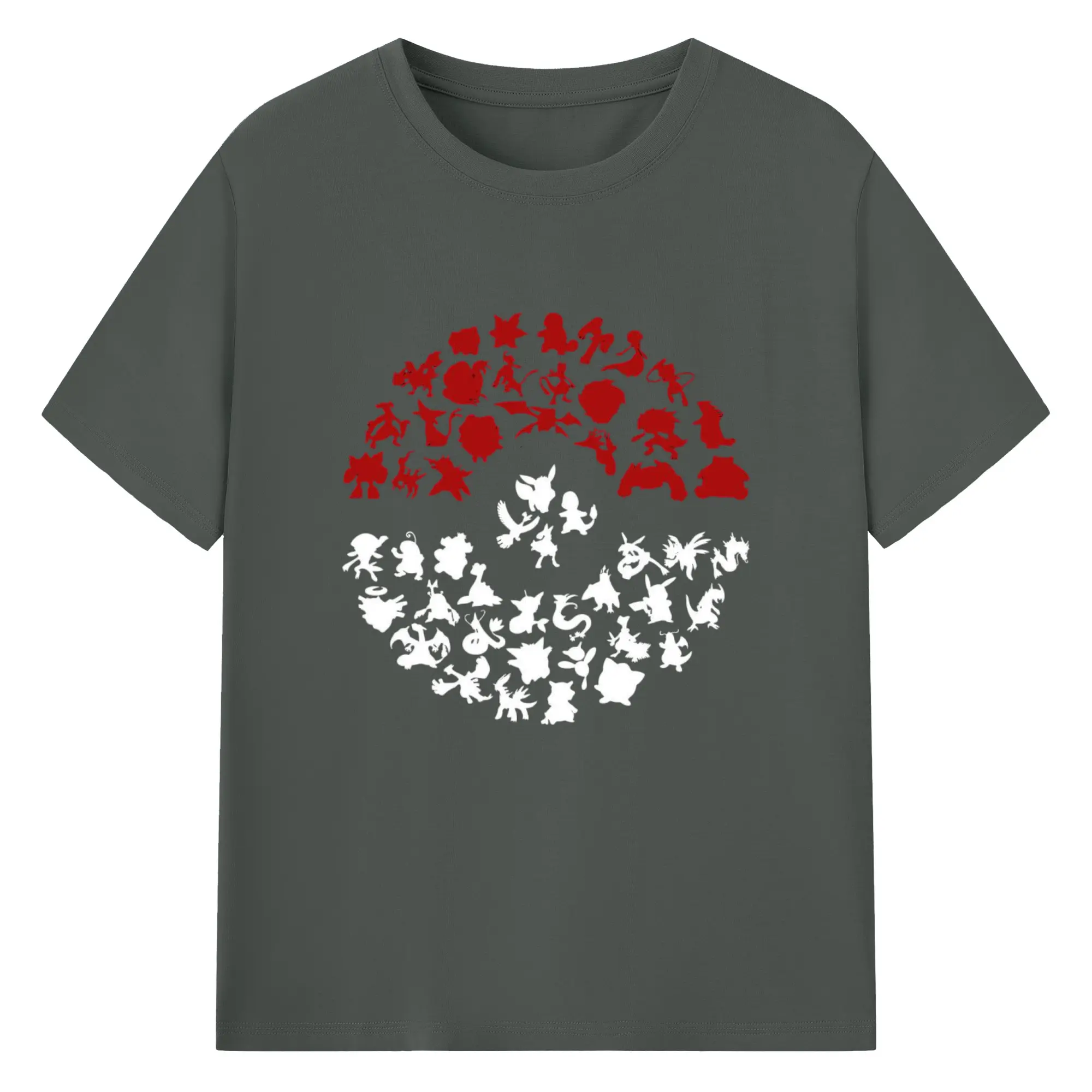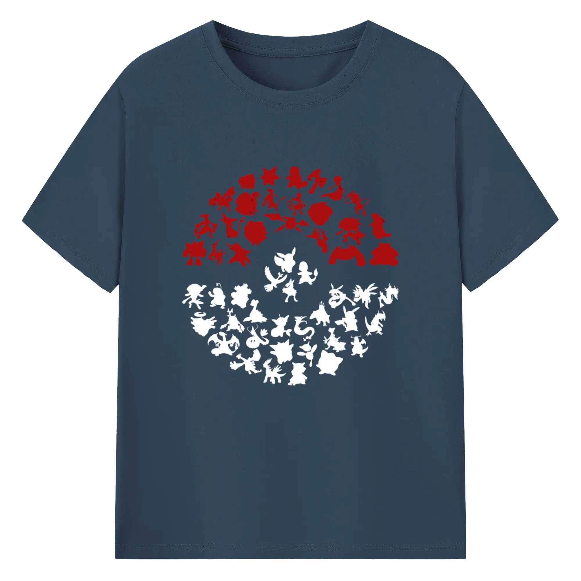 ポケモン モンスターボール図鑑 - 綿100% ヴィンテージ風 半袖Tシャツ ・ フロントプリント ・ 柔らか肌触り ・ 通気性 快適 ・ スポーツ カジュアル 外出用