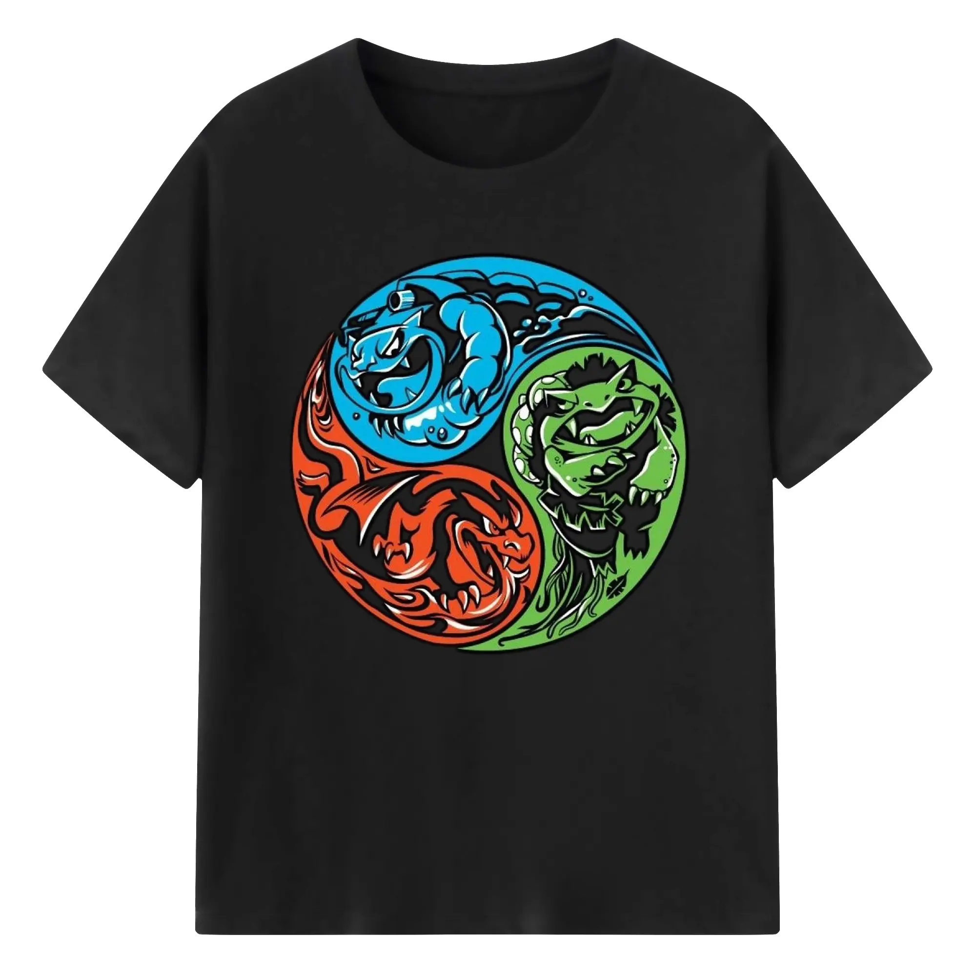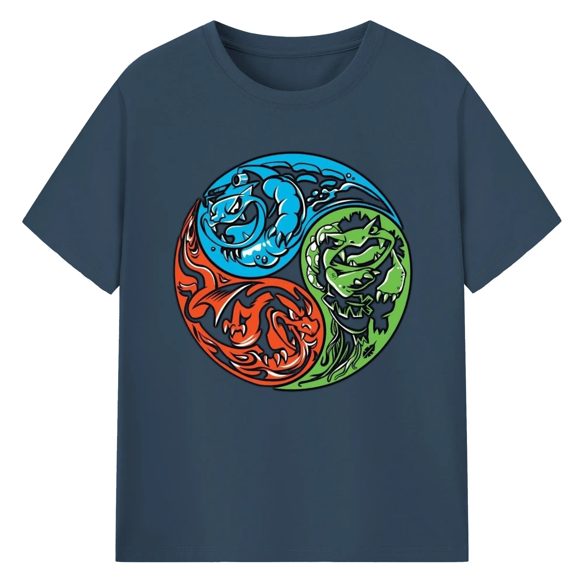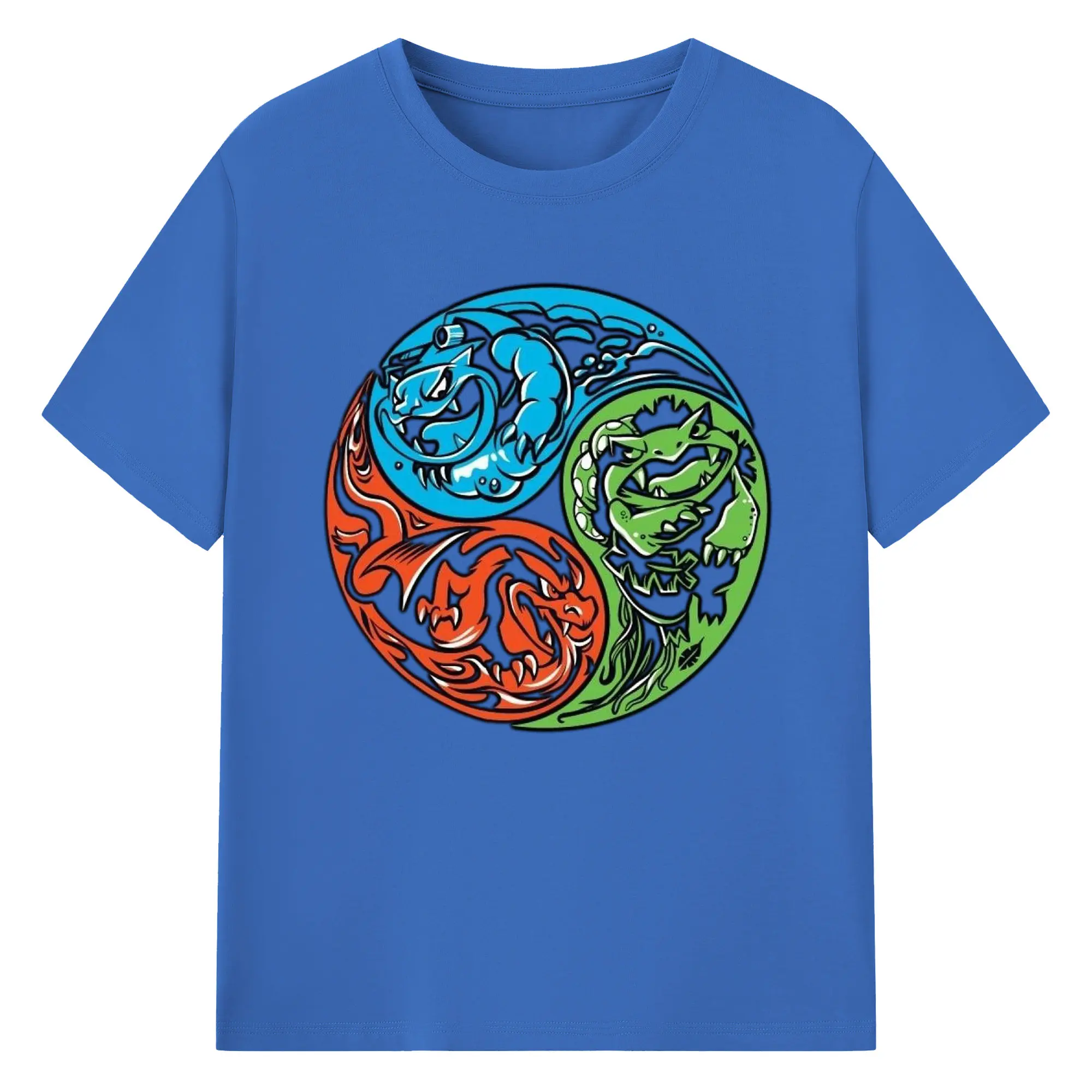 ポケモン リザードン フシギバナ カメックス - 綿100% ヴィンテージ風 半袖Tシャツ ・ フロントプリント ・ 柔らか肌触り ・ 通気性 快適 ・ スポーツ カジュアル 外出用