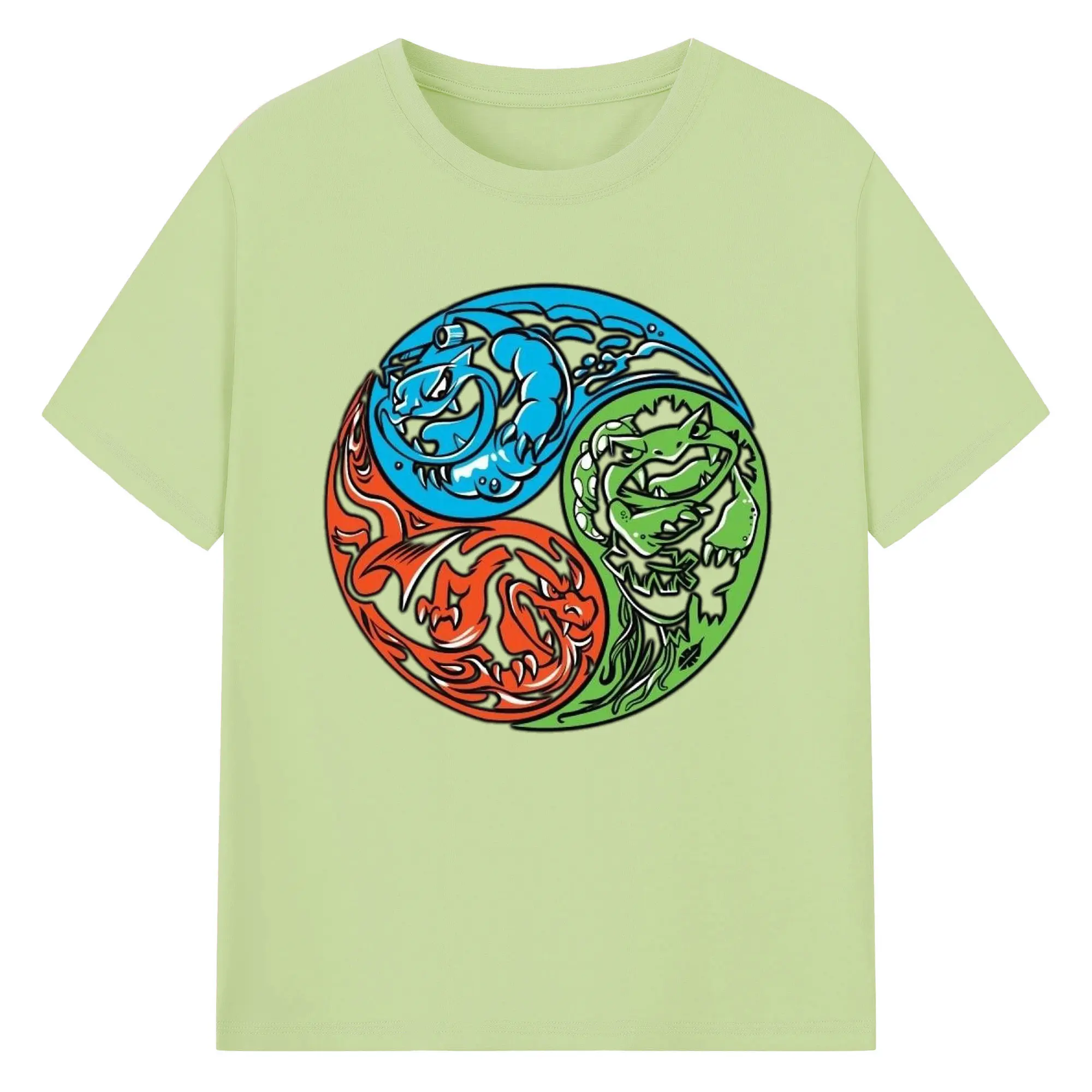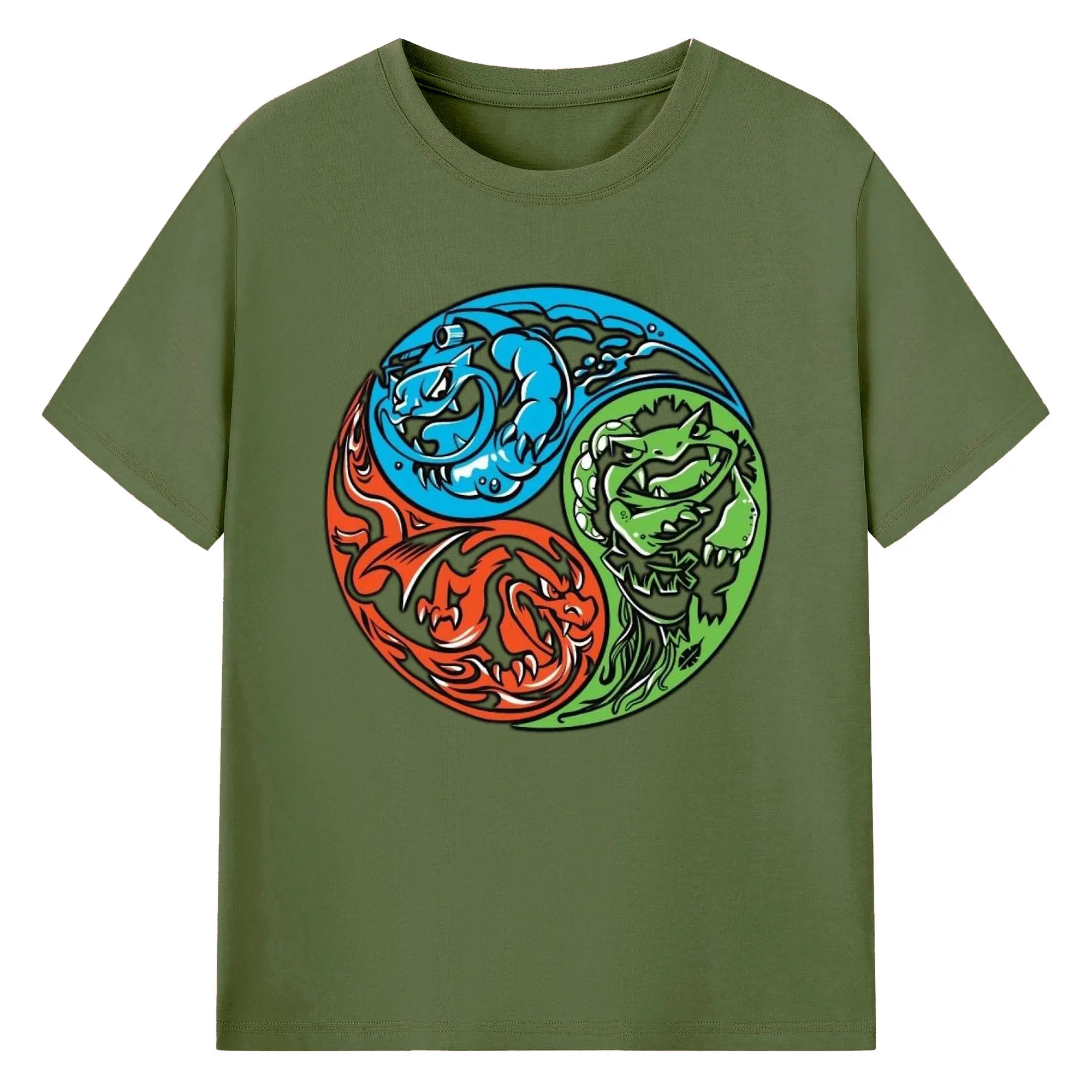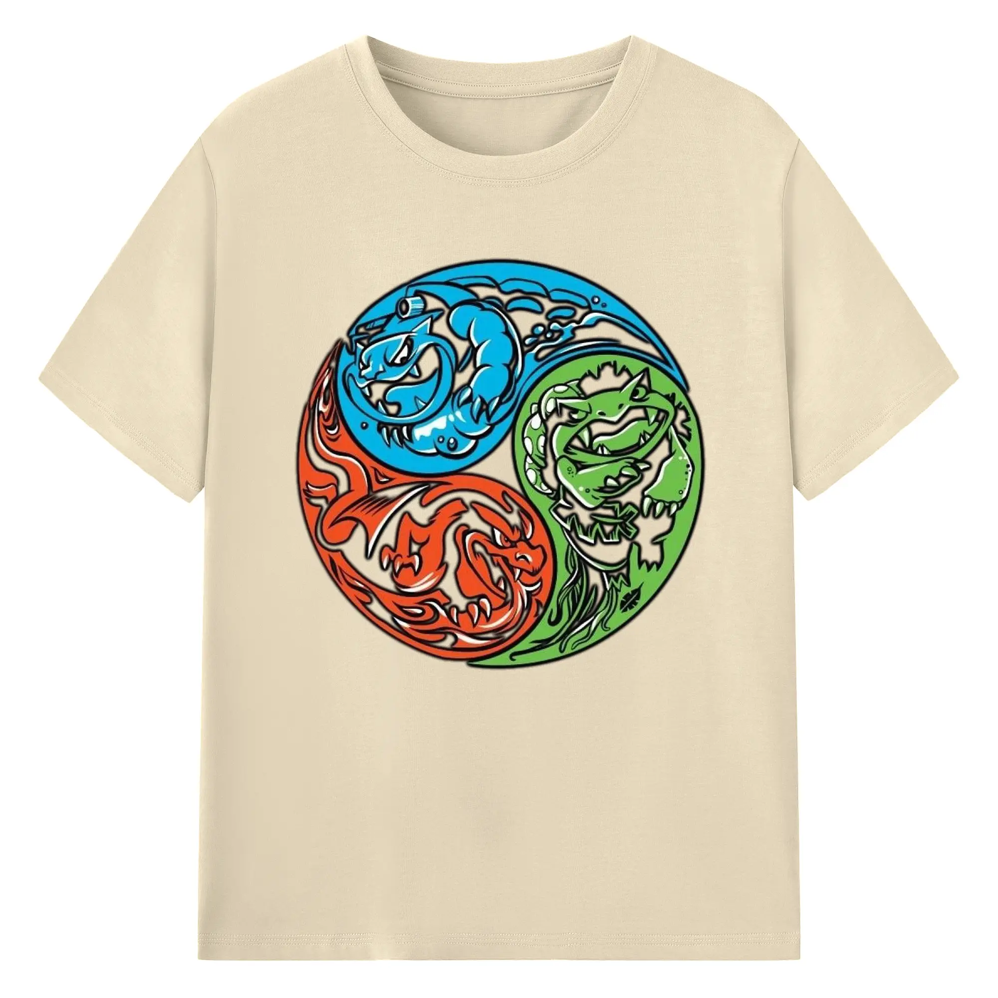 ポケモン リザードン フシギバナ カメックス - 綿100% ヴィンテージ風 半袖Tシャツ ・ フロントプリント ・ 柔らか肌触り ・ 通気性 快適 ・ スポーツ カジュアル 外出用