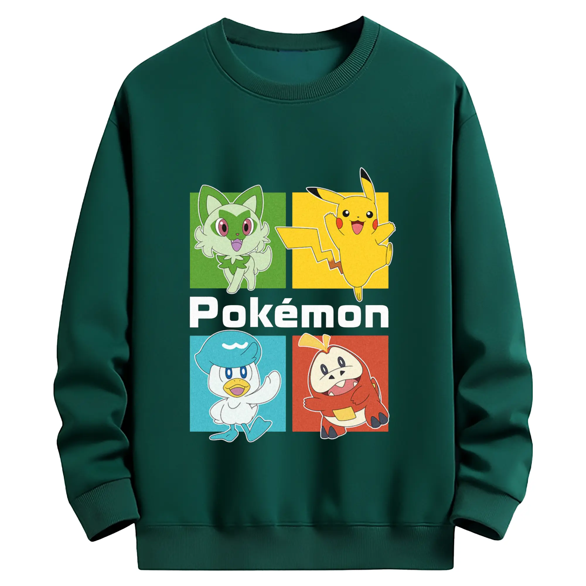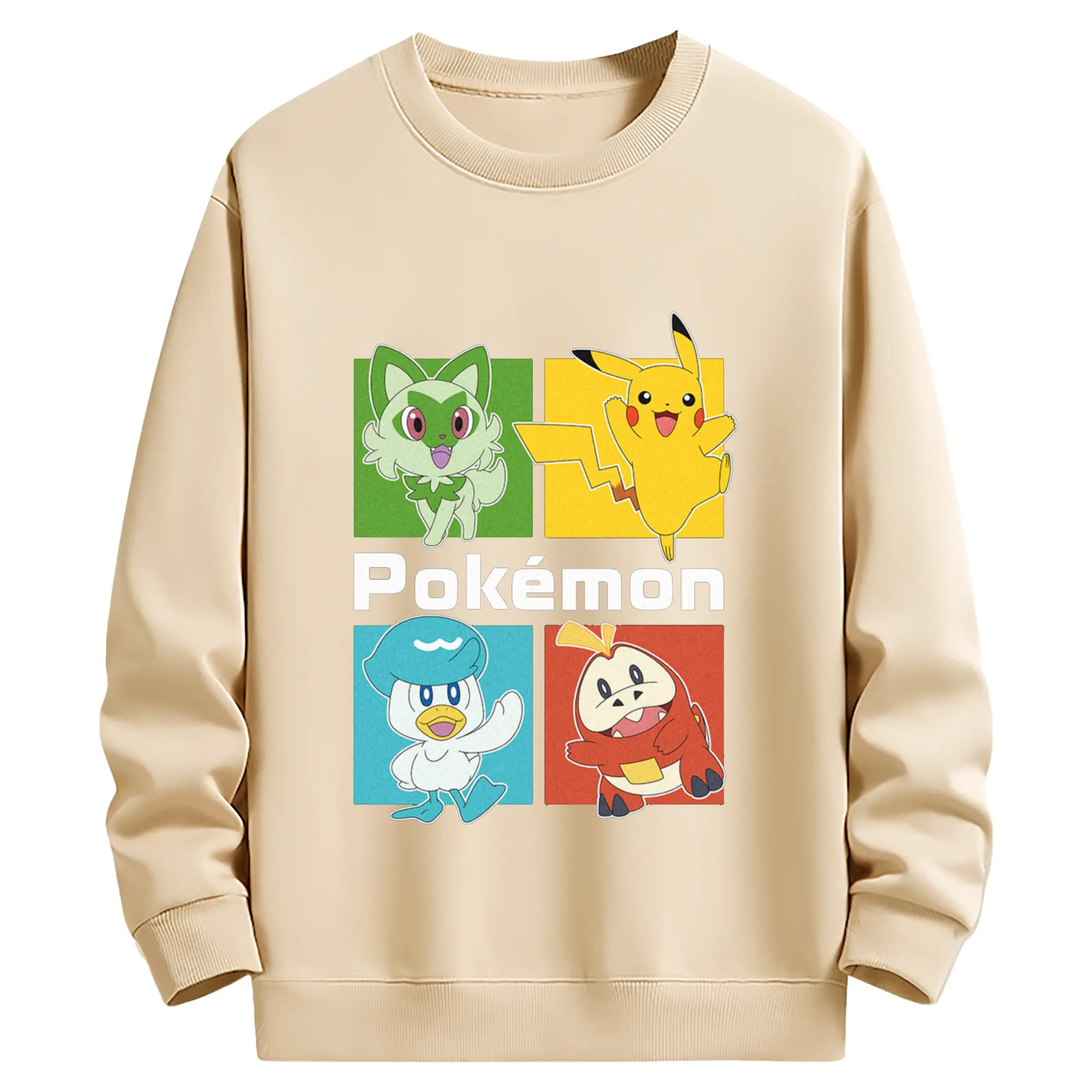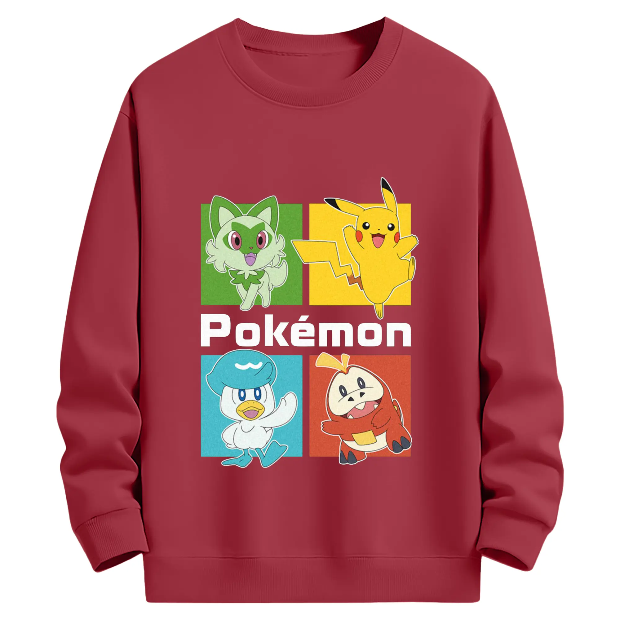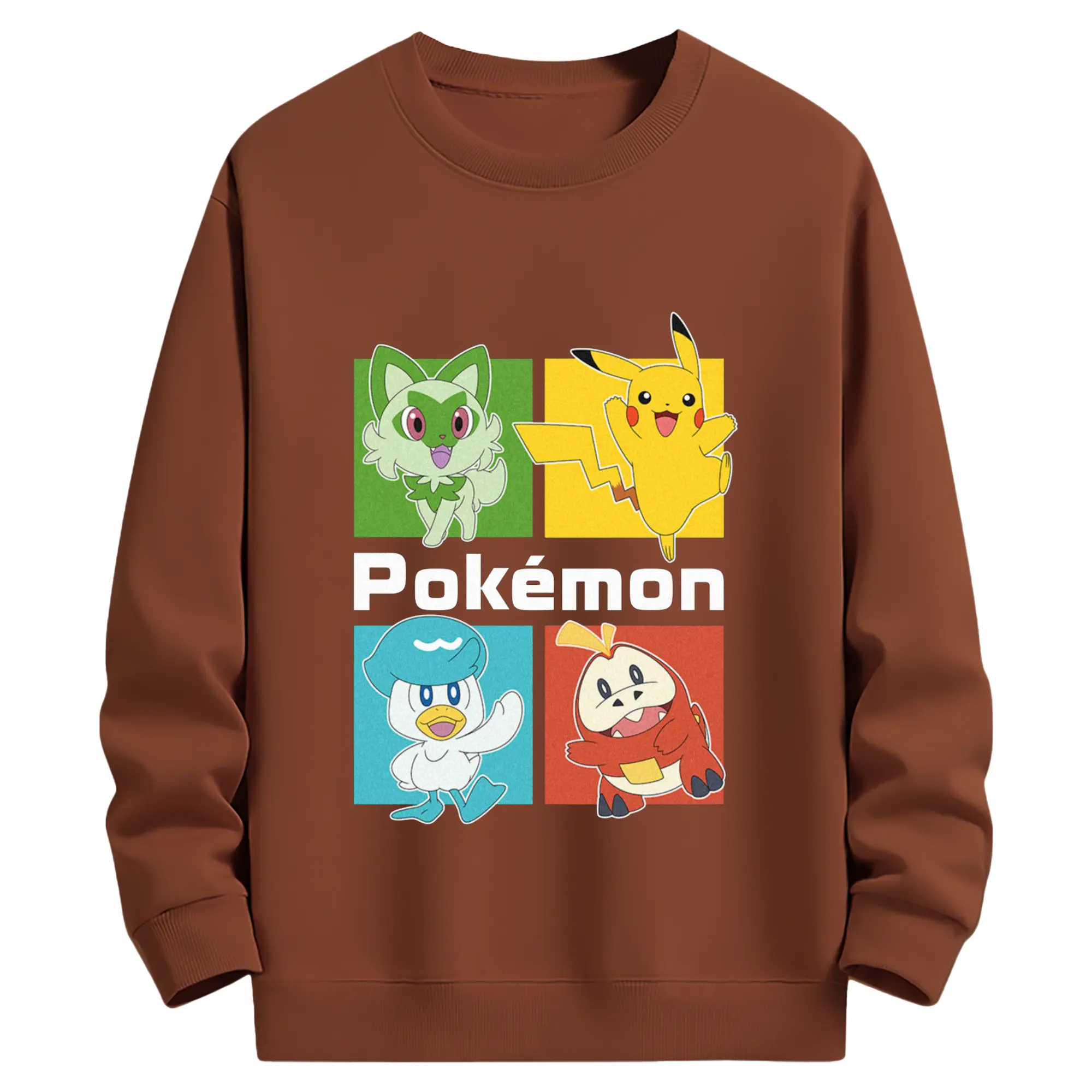 ポケモン ピカチュウ - 高品質 クルーネック スウェット ・ コットン59% ポリエステル41% ・ ユニセックス 長袖 トレーナー ・ カジュアル デイリー スポーツ 散歩用
