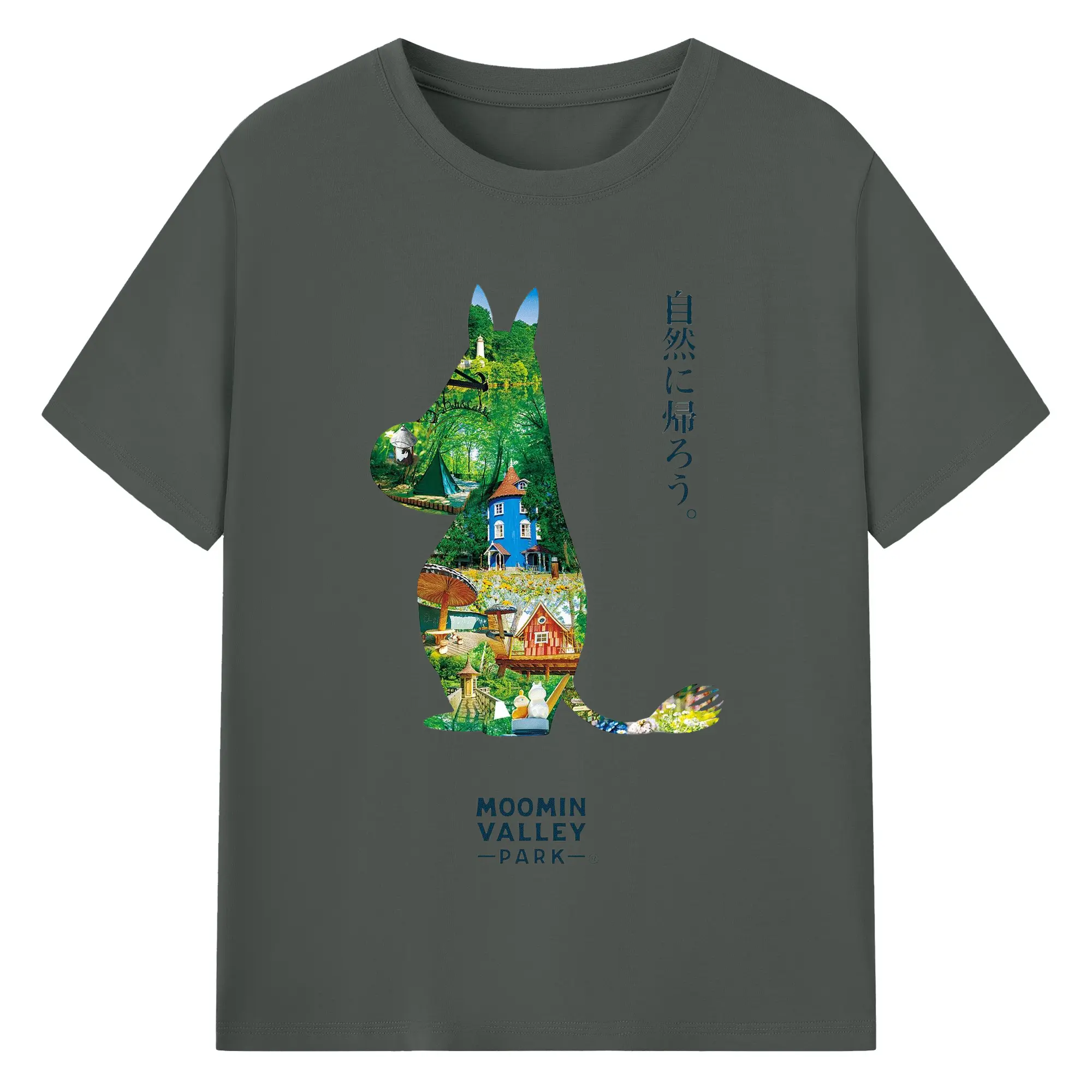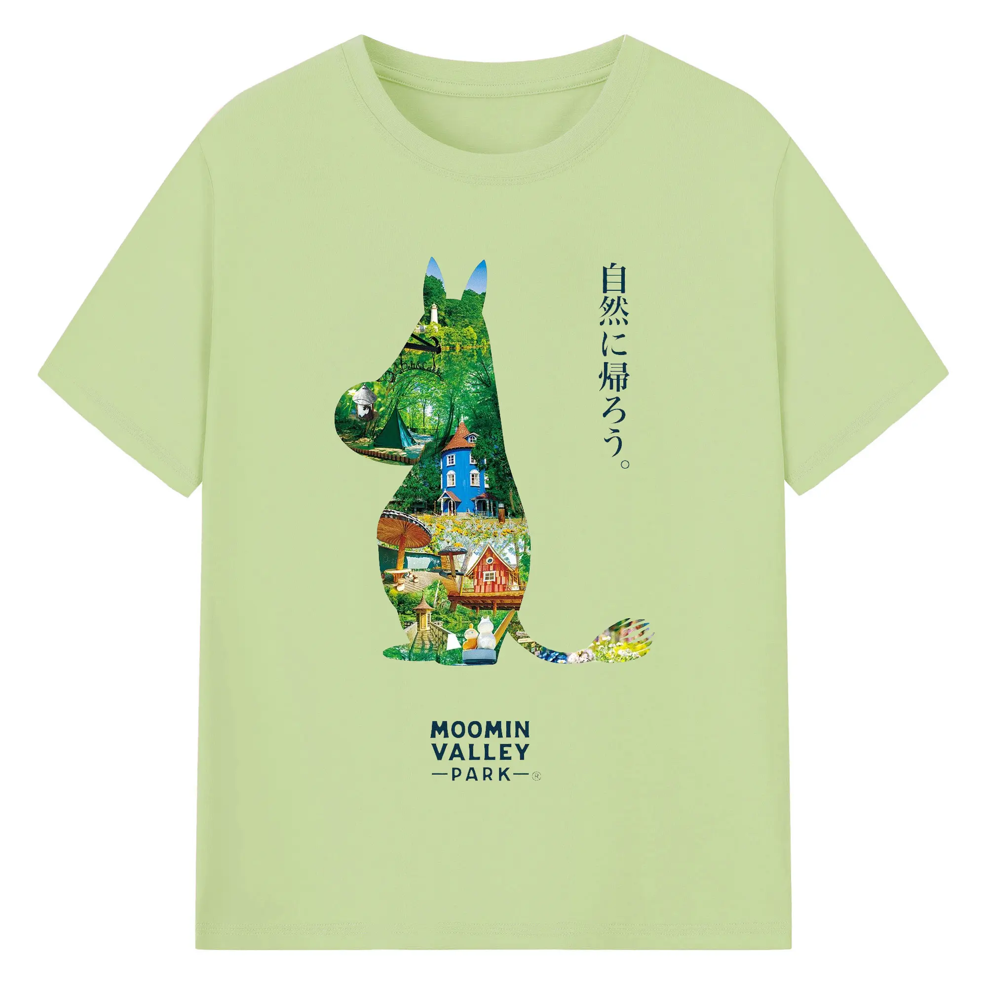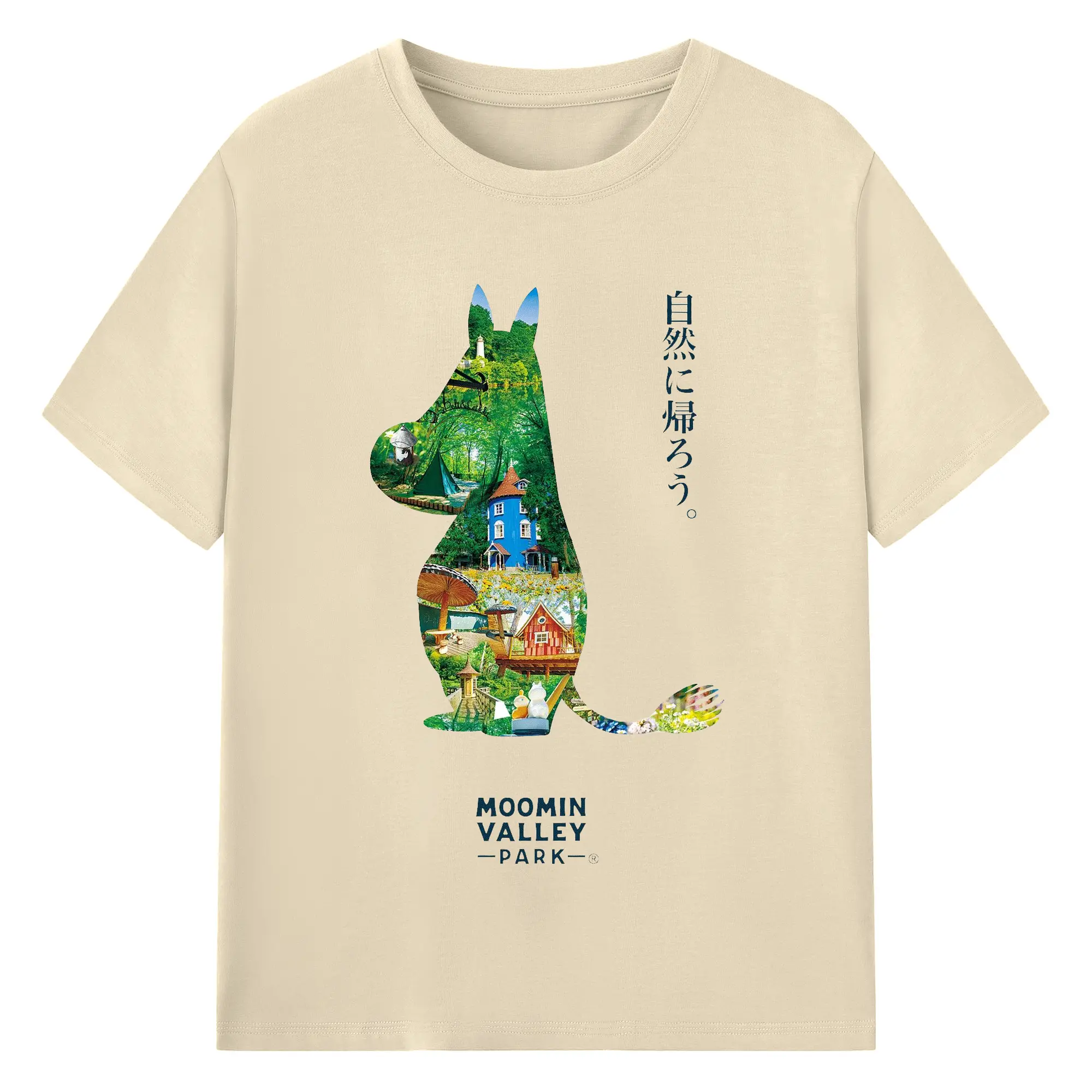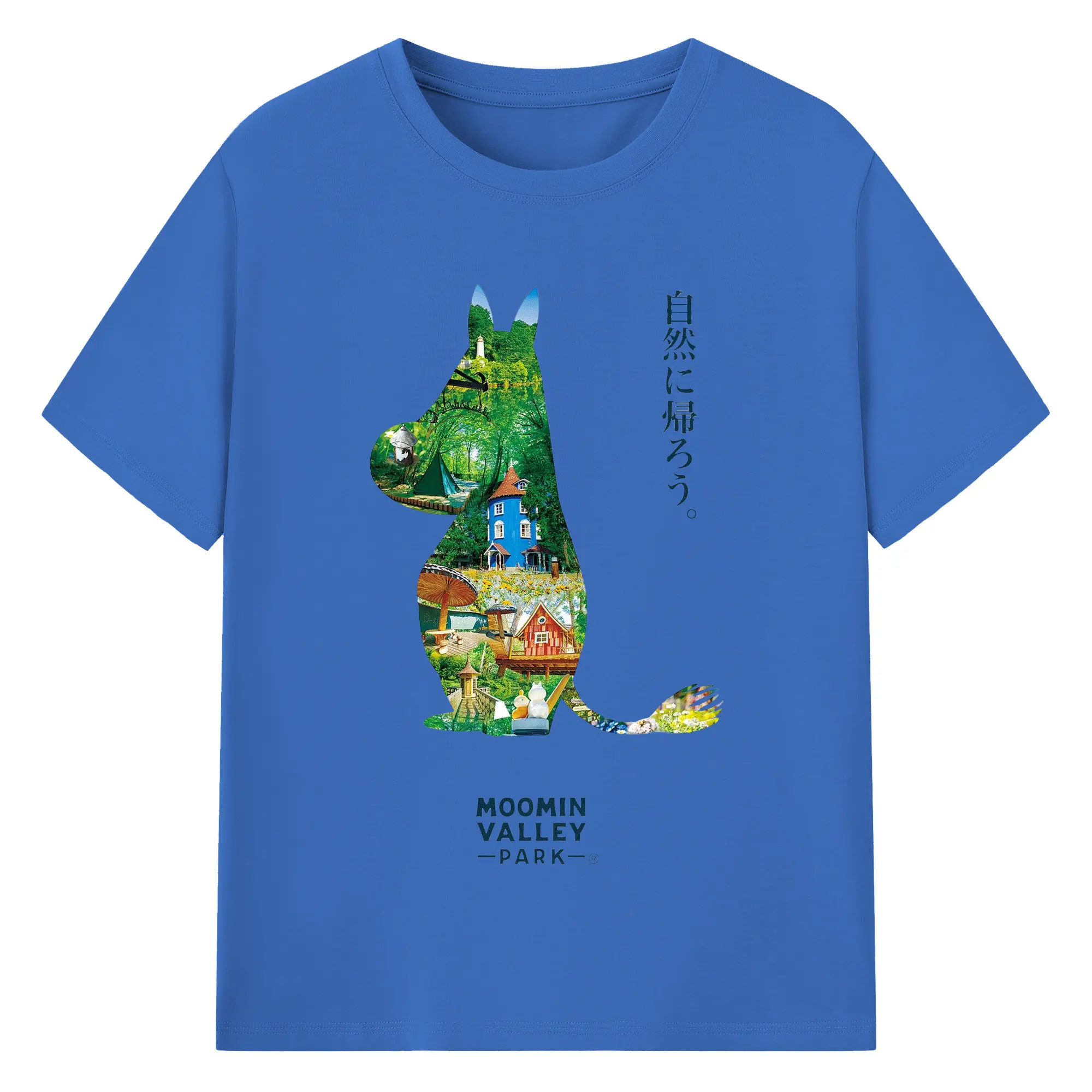 ムーミン谷 - 綿100% ヴィンテージ風 半袖Tシャツ ・ フロントプリント ・ 柔らか肌触り ・ 通気性 快適 ・ スポーツ カジュアル 外出用