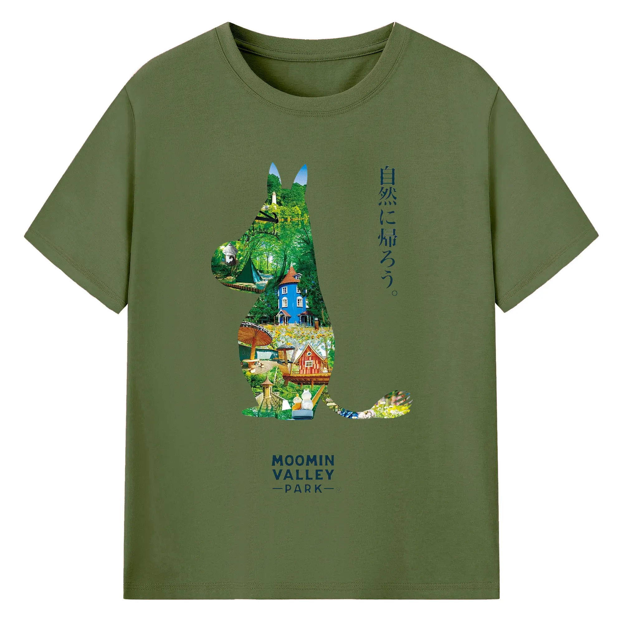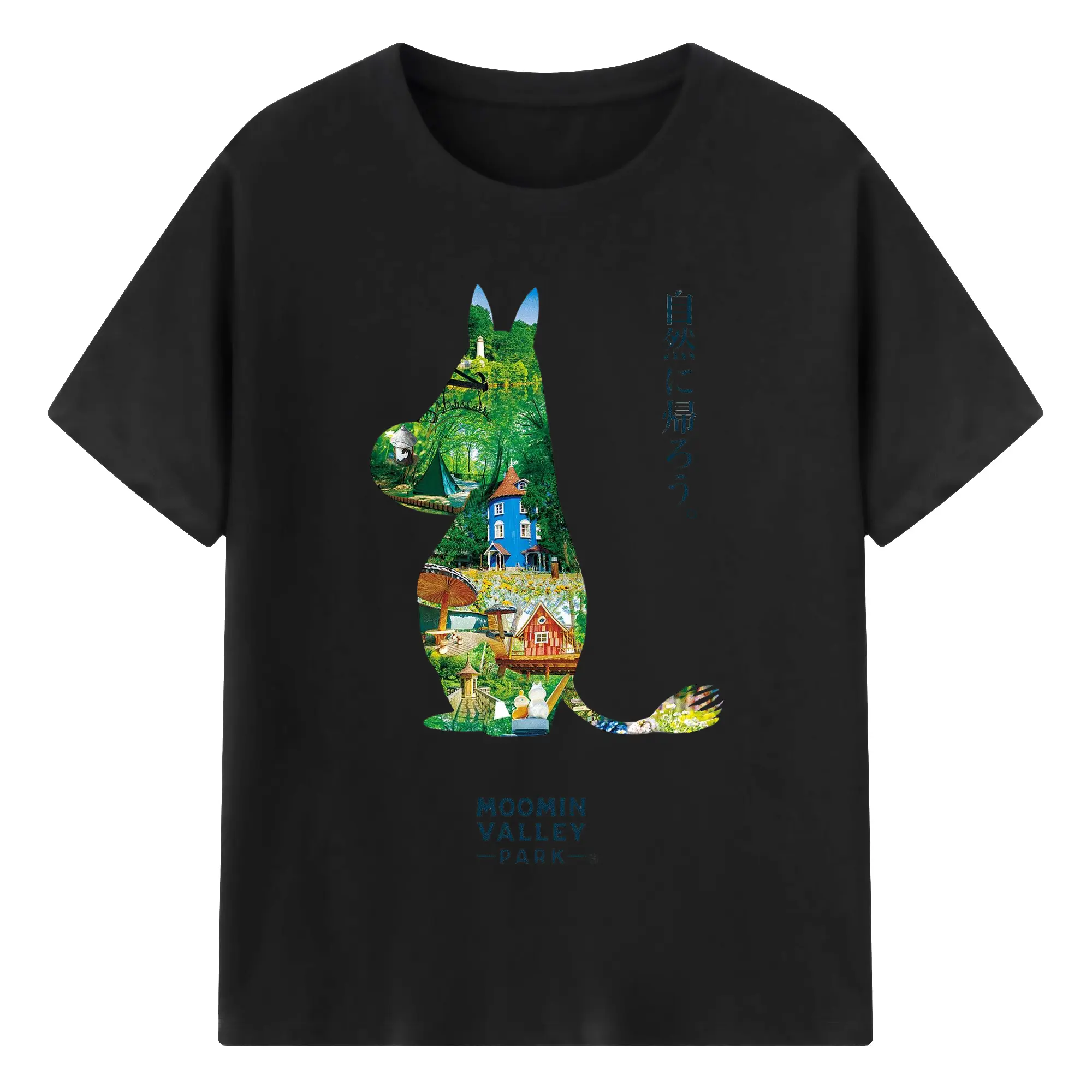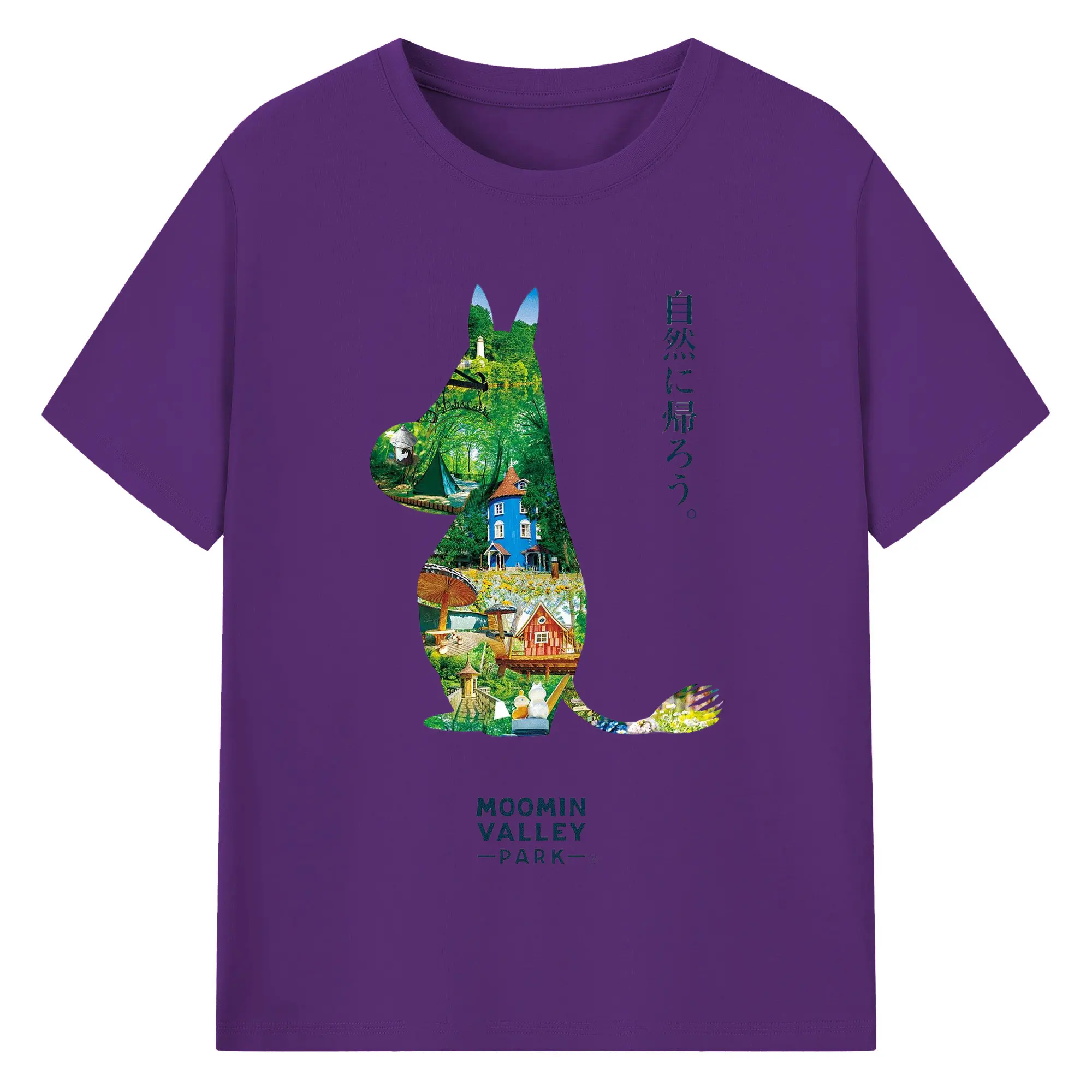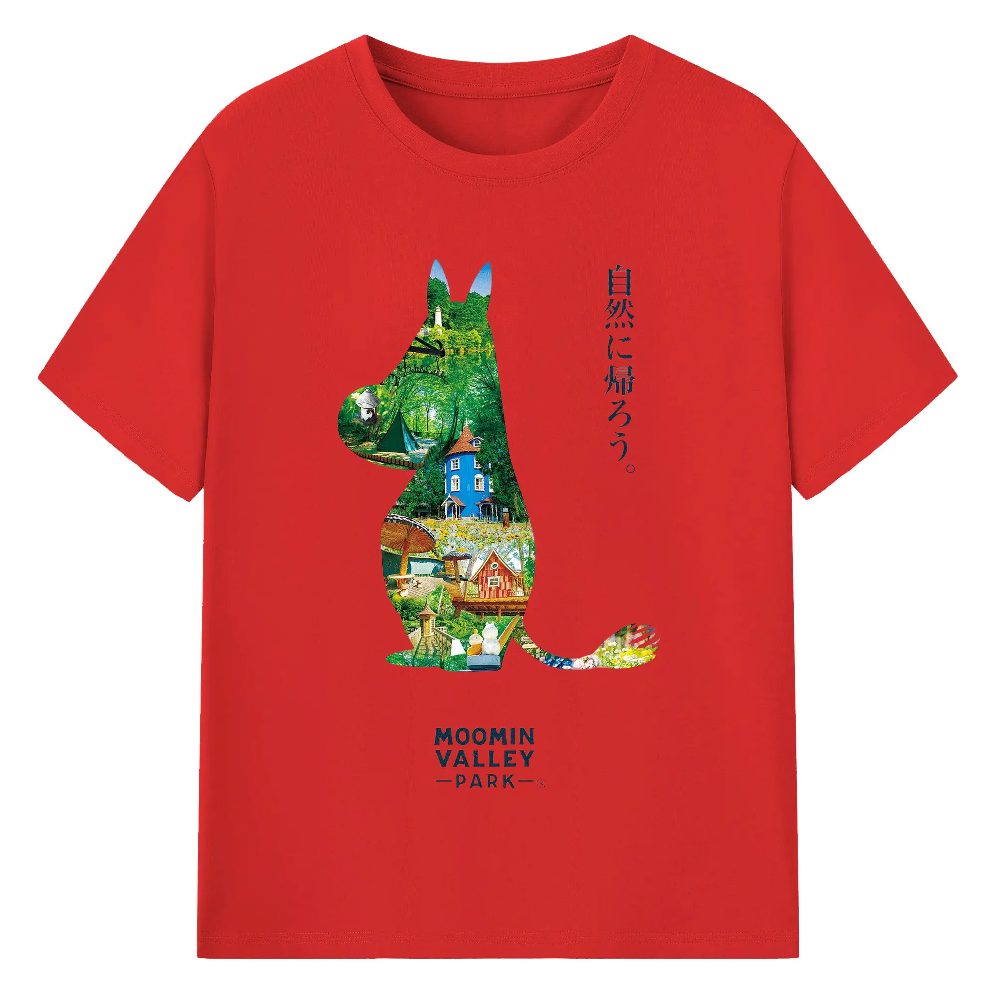 ムーミン谷 - 綿100% ヴィンテージ風 半袖Tシャツ ・ フロントプリント ・ 柔らか肌触り ・ 通気性 快適 ・ スポーツ カジュアル 外出用