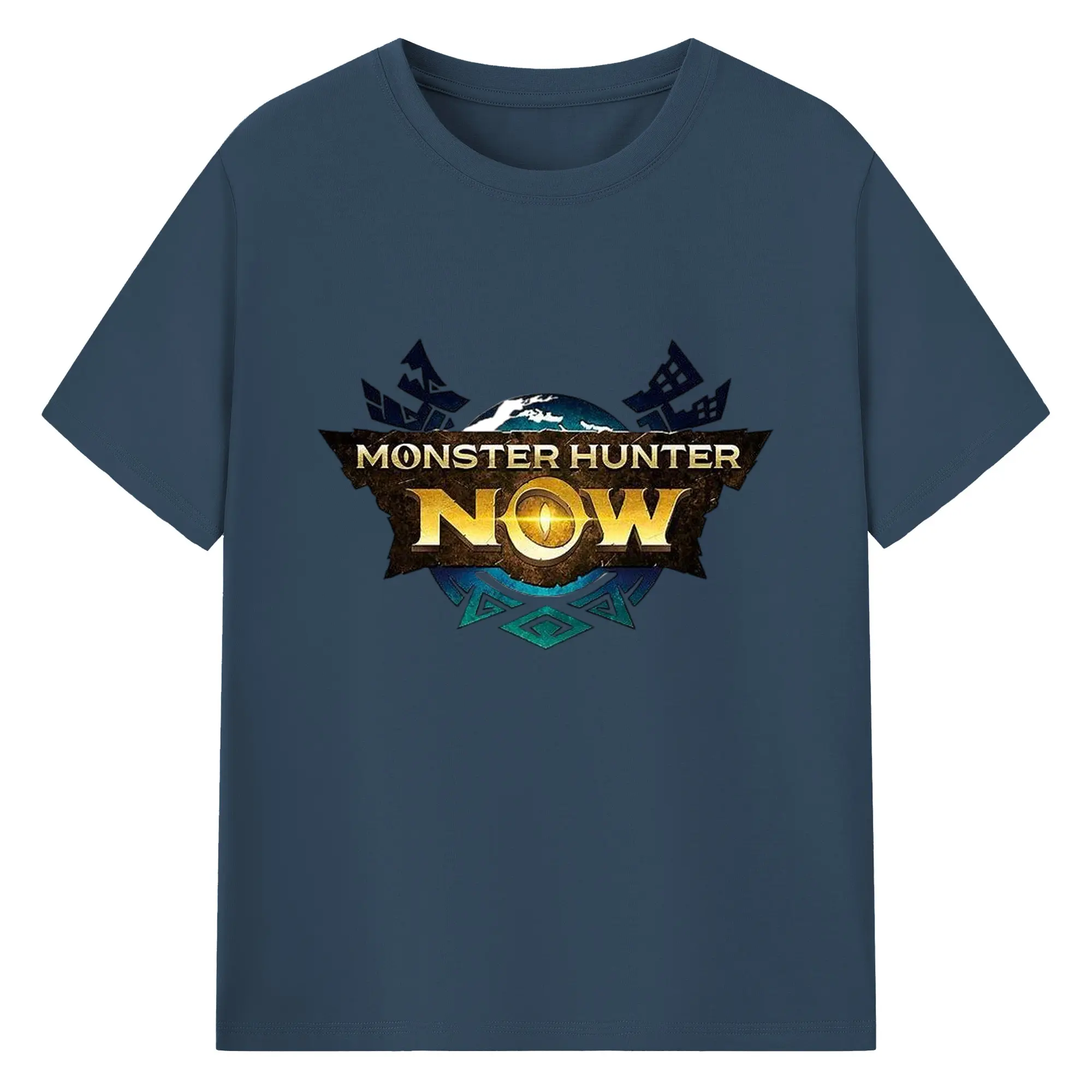 モンハンモンハン シンプルロゴ - 綿100% ヴィンテージ風 半袖Tシャツ ・ フロントプリント ・ 柔らか肌触り ・ 通気性 快適 ・ スポーツ カジュアル 外出用