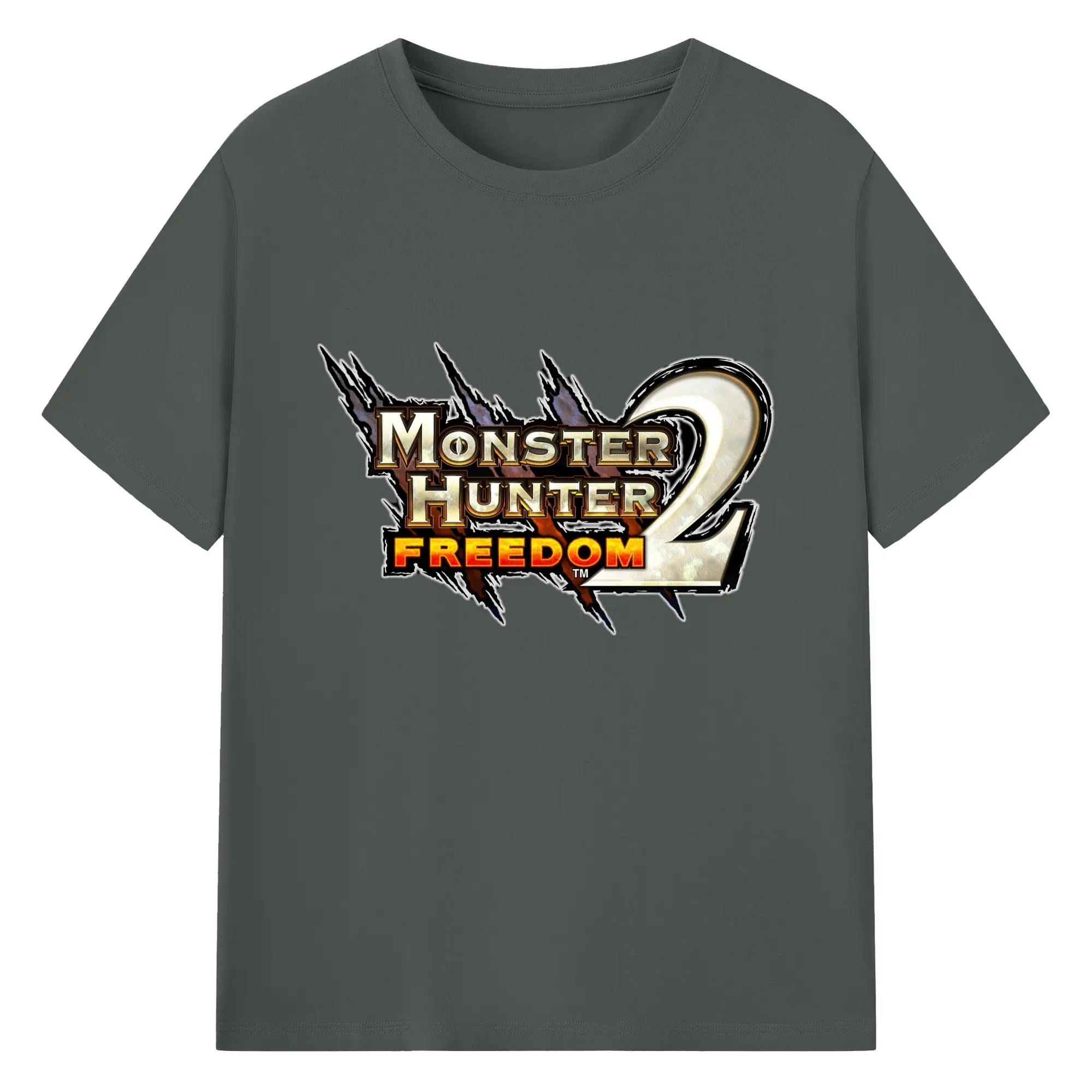 モンハン シンプルロゴ - 綿100% ヴィンテージ風 半袖Tシャツ ・ フロントプリント ・ 柔らか肌触り ・ 通気性 快適 ・ スポーツ カジュアル 外出用