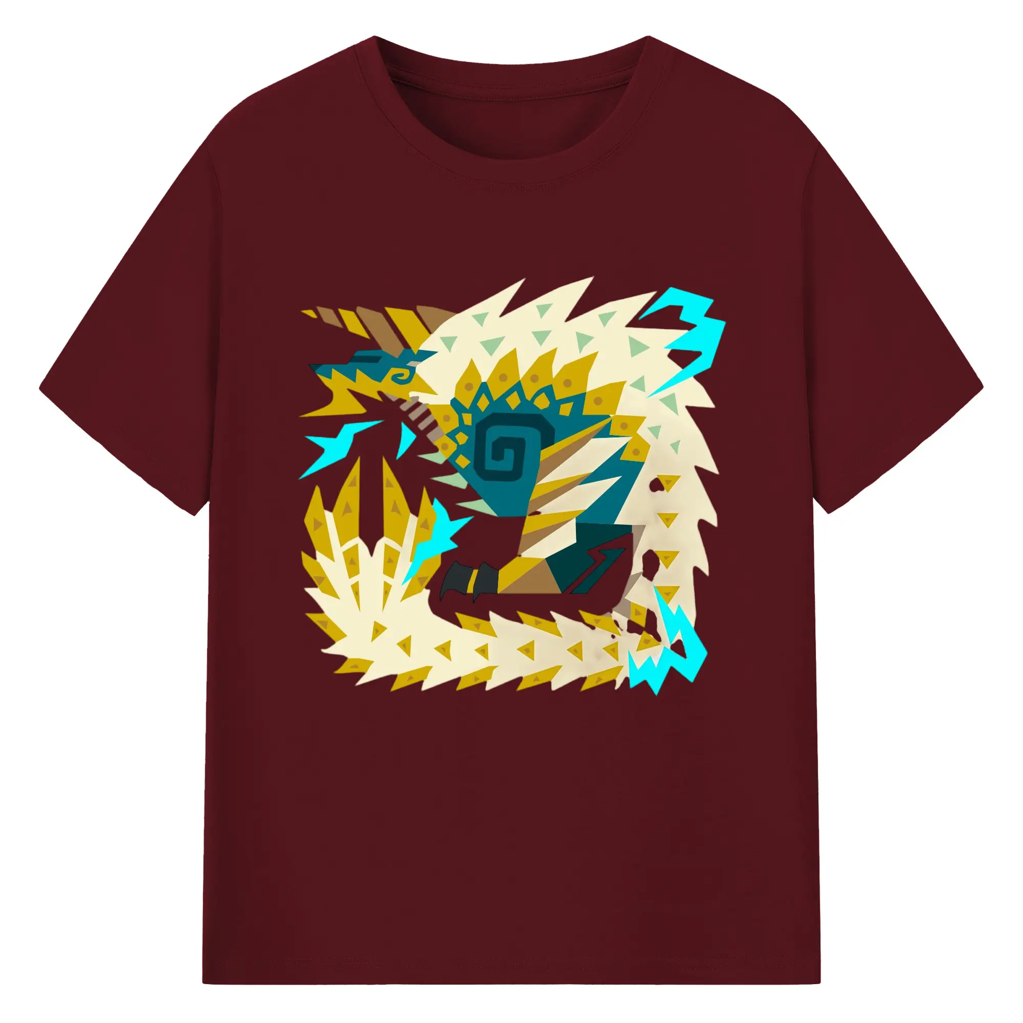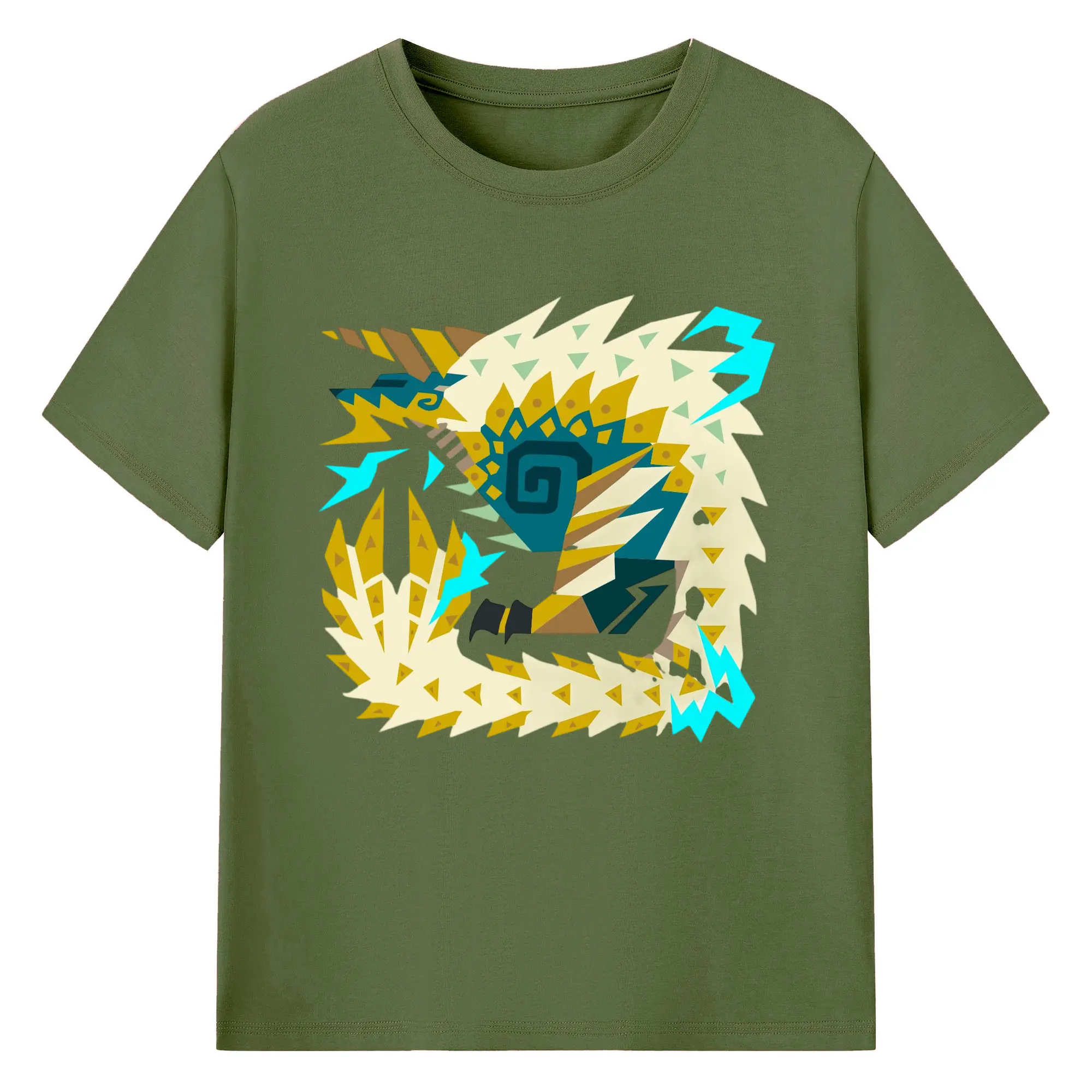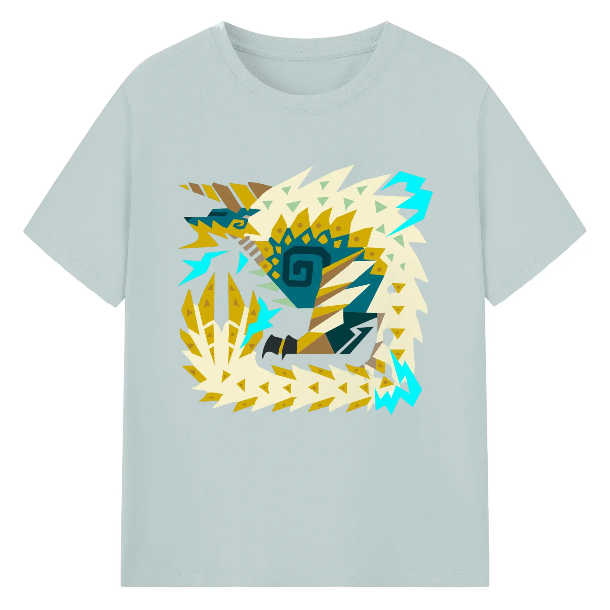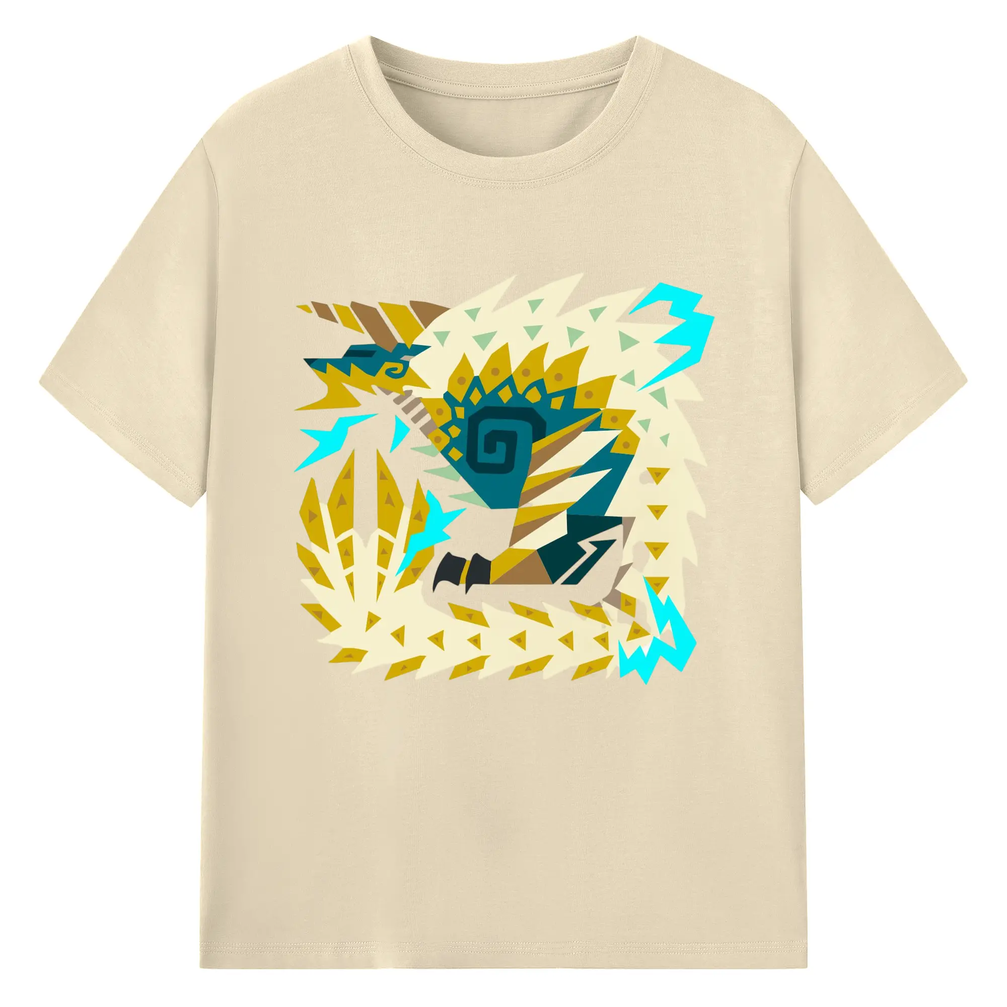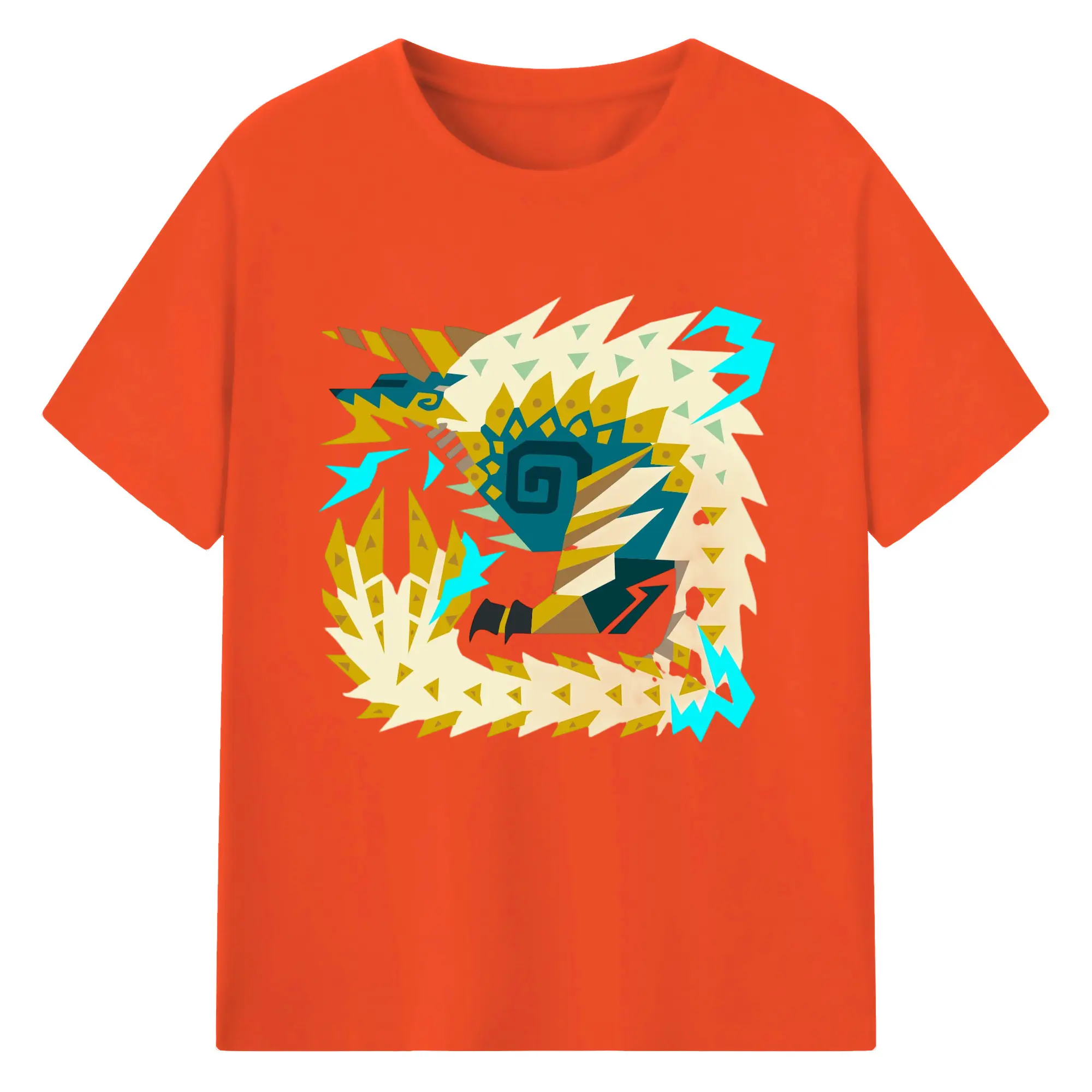 モンハン ジンオウガ - 綿100% ヴィンテージ風 半袖Tシャツ ・ フロントプリント ・ 柔らか肌触り ・ 通気性 快適 ・ スポーツ カジュアル 外出用