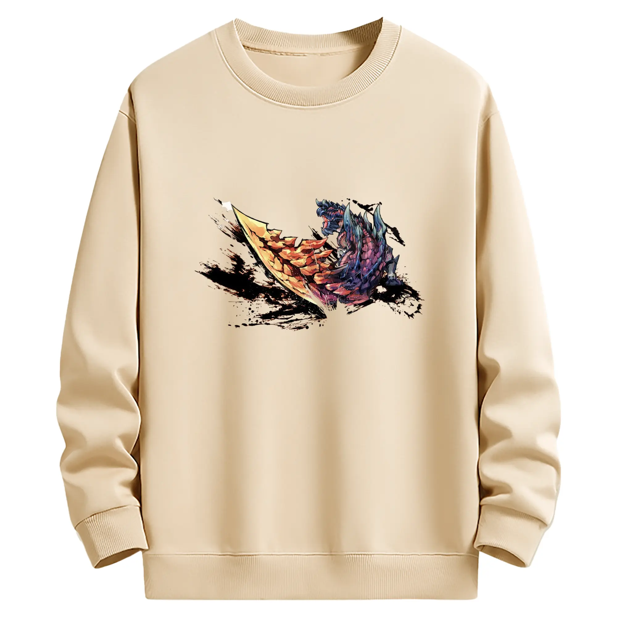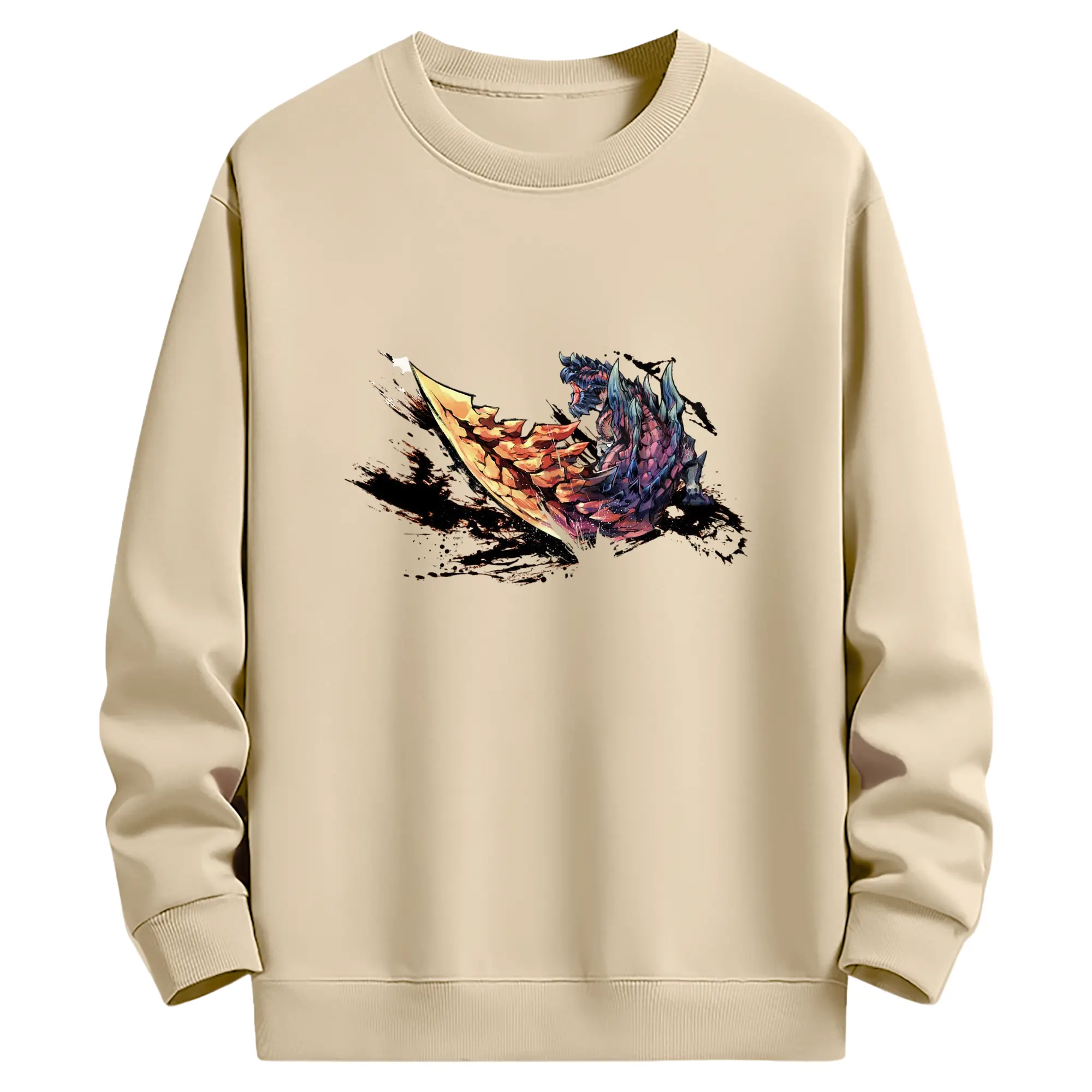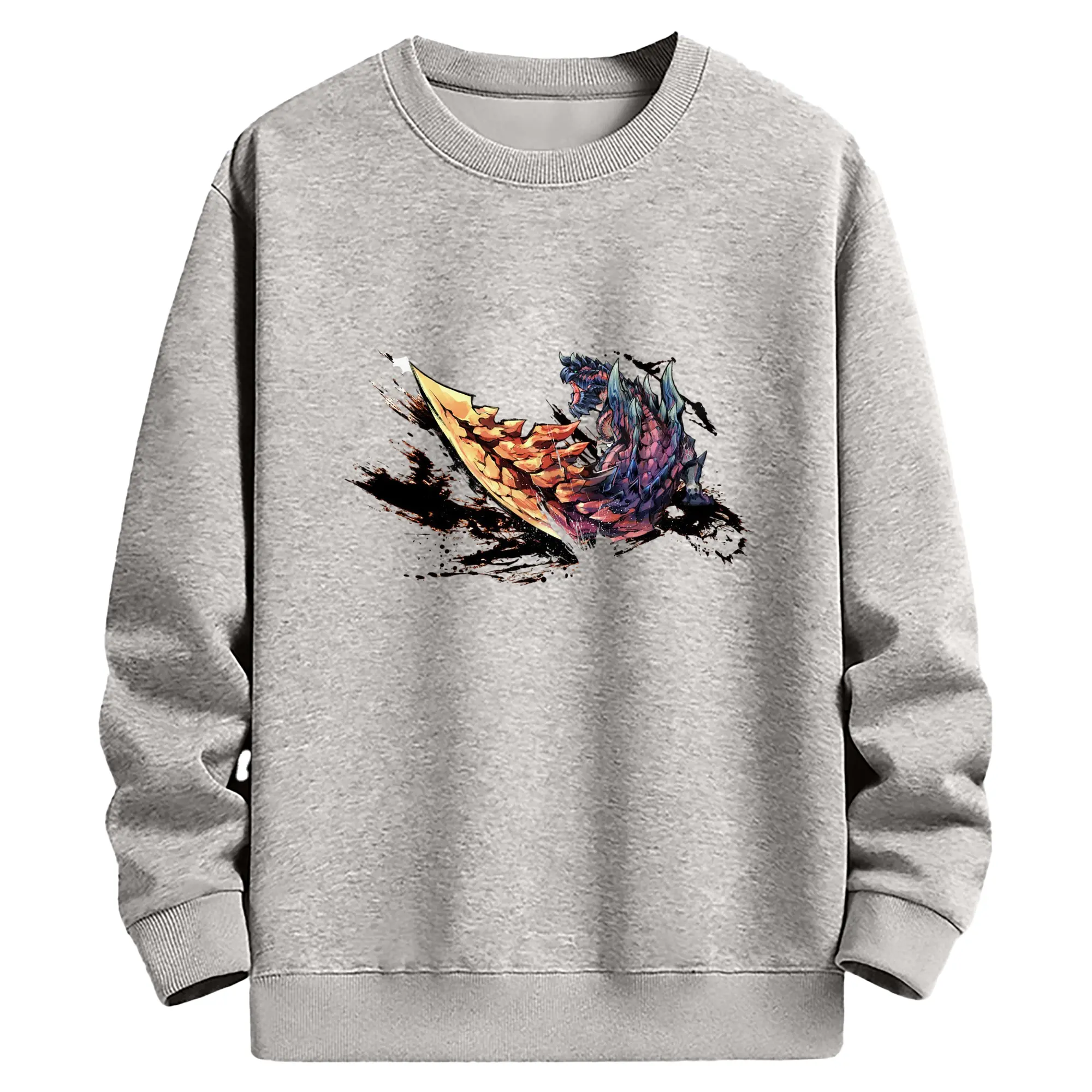ゴジラの食事タイム - 高品質 クルーネック スウェット ・ コットン59% ポリエステル41% ・ ユニセックス 長袖 トレーナー ・ カジュアル デイリー スポーツ 散歩用