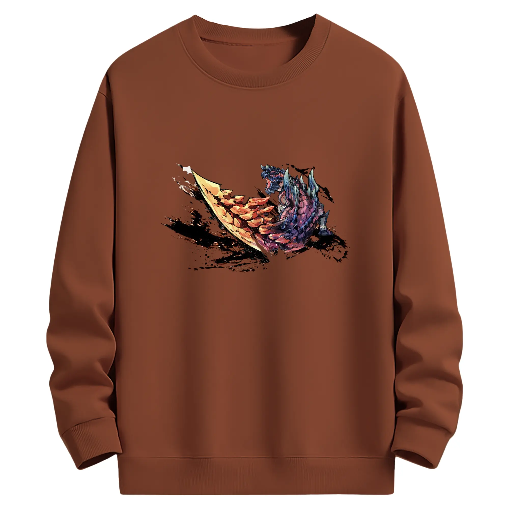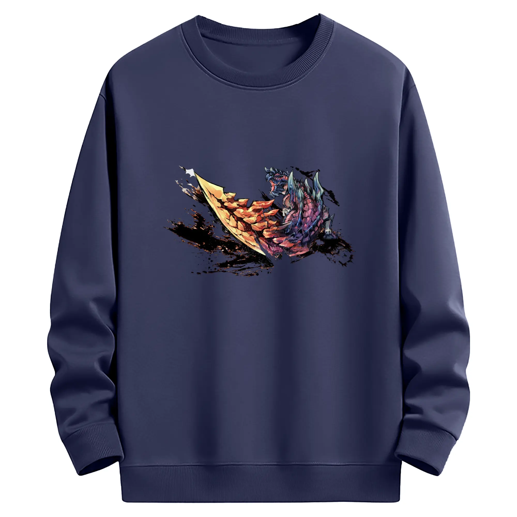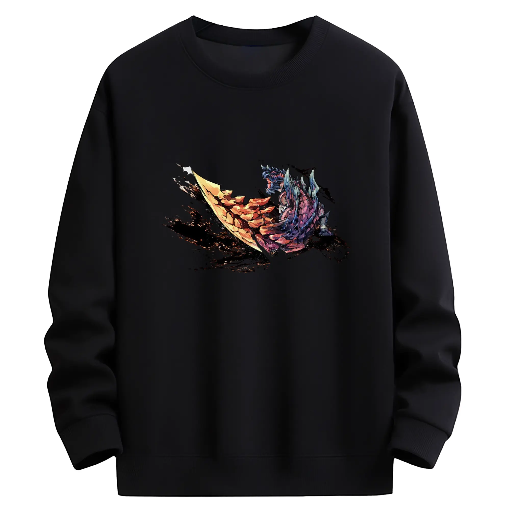 ゴジラの食事タイム - 高品質 クルーネック スウェット ・ コットン59% ポリエステル41% ・ ユニセックス 長袖 トレーナー ・ カジュアル デイリー スポーツ 散歩用