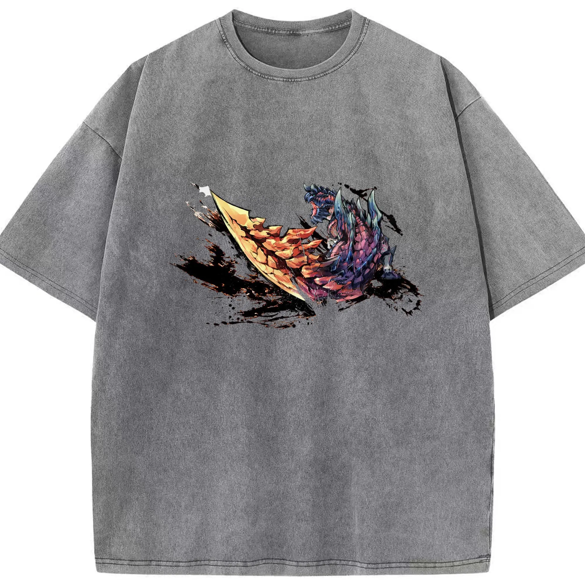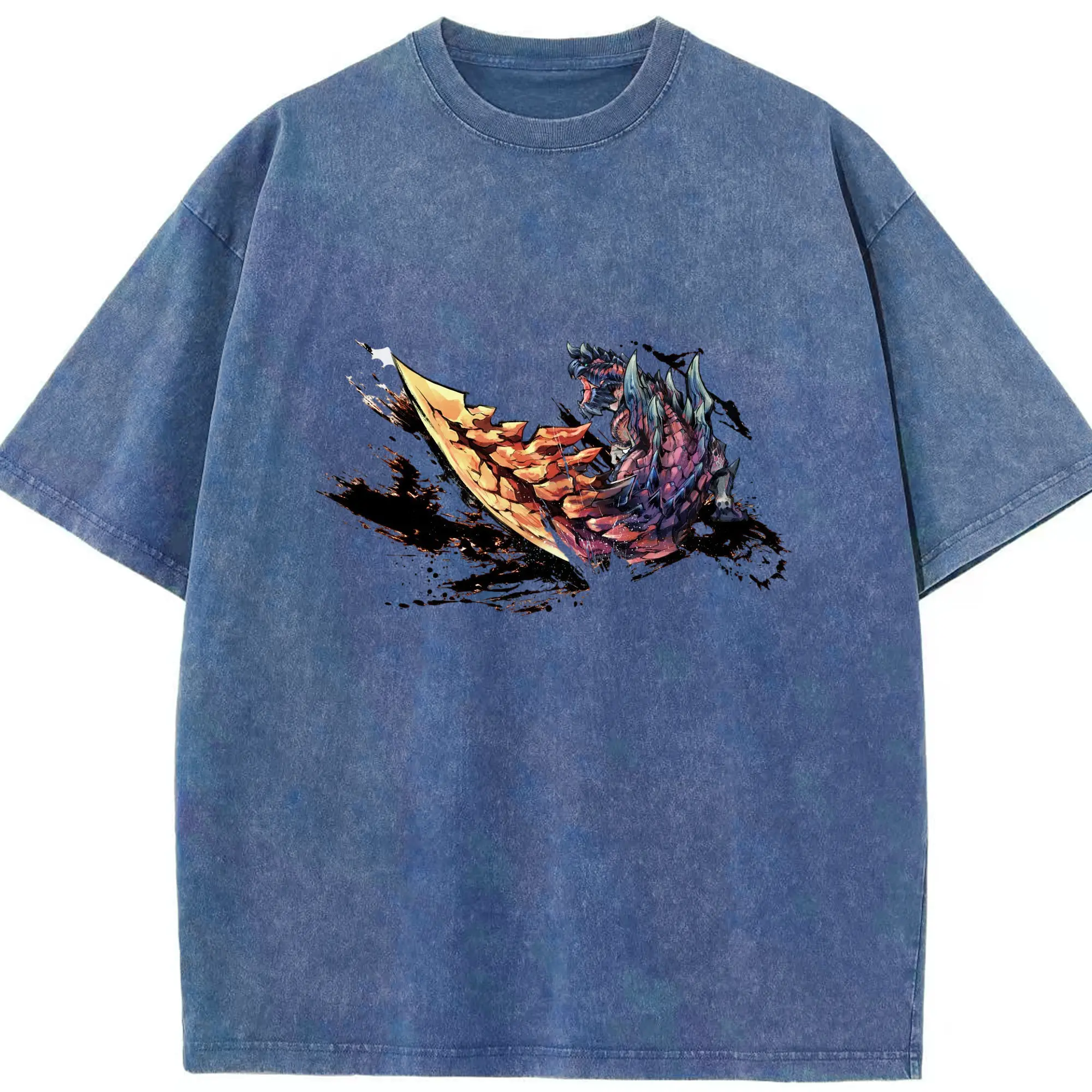 モンハン ディノバルド - 綿100% 半袖Tシャツ ・ フロントプリント ・ 快適 通気性 ・ 日常使い 散歩 スポーツ用