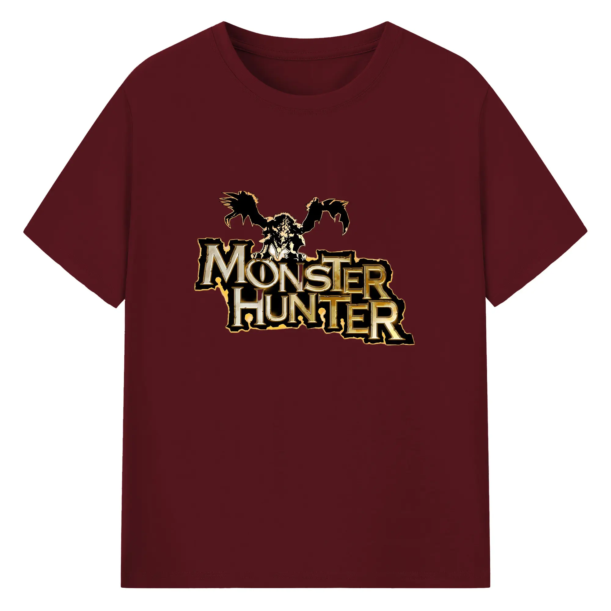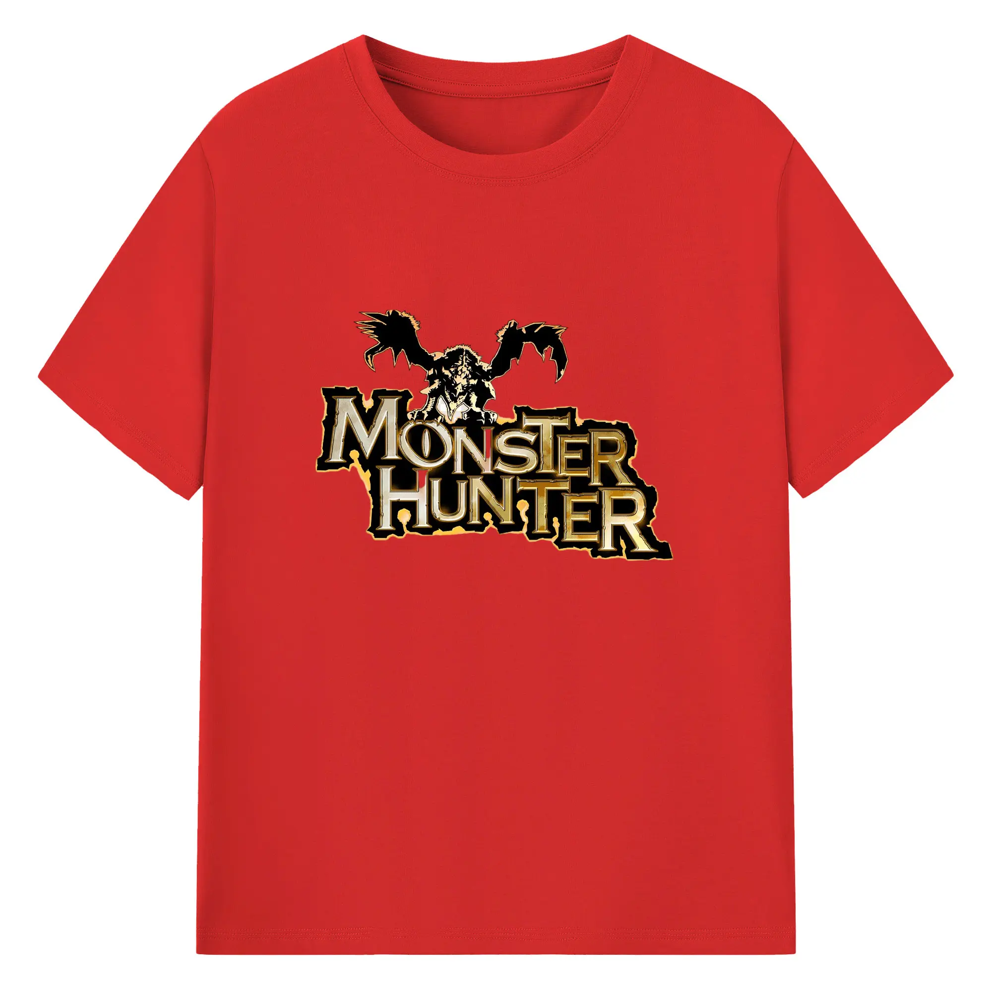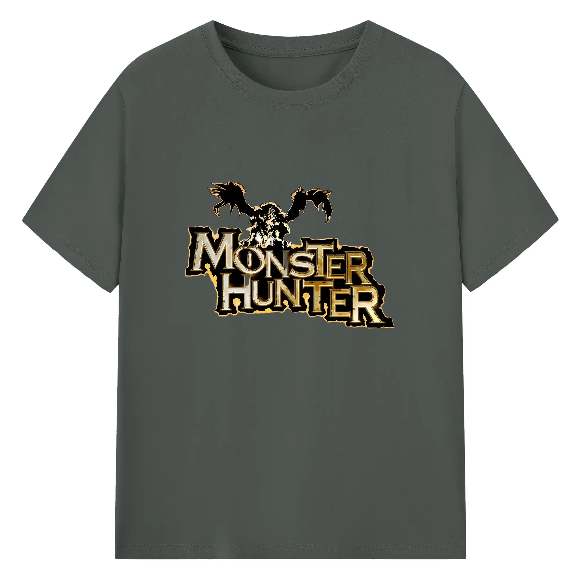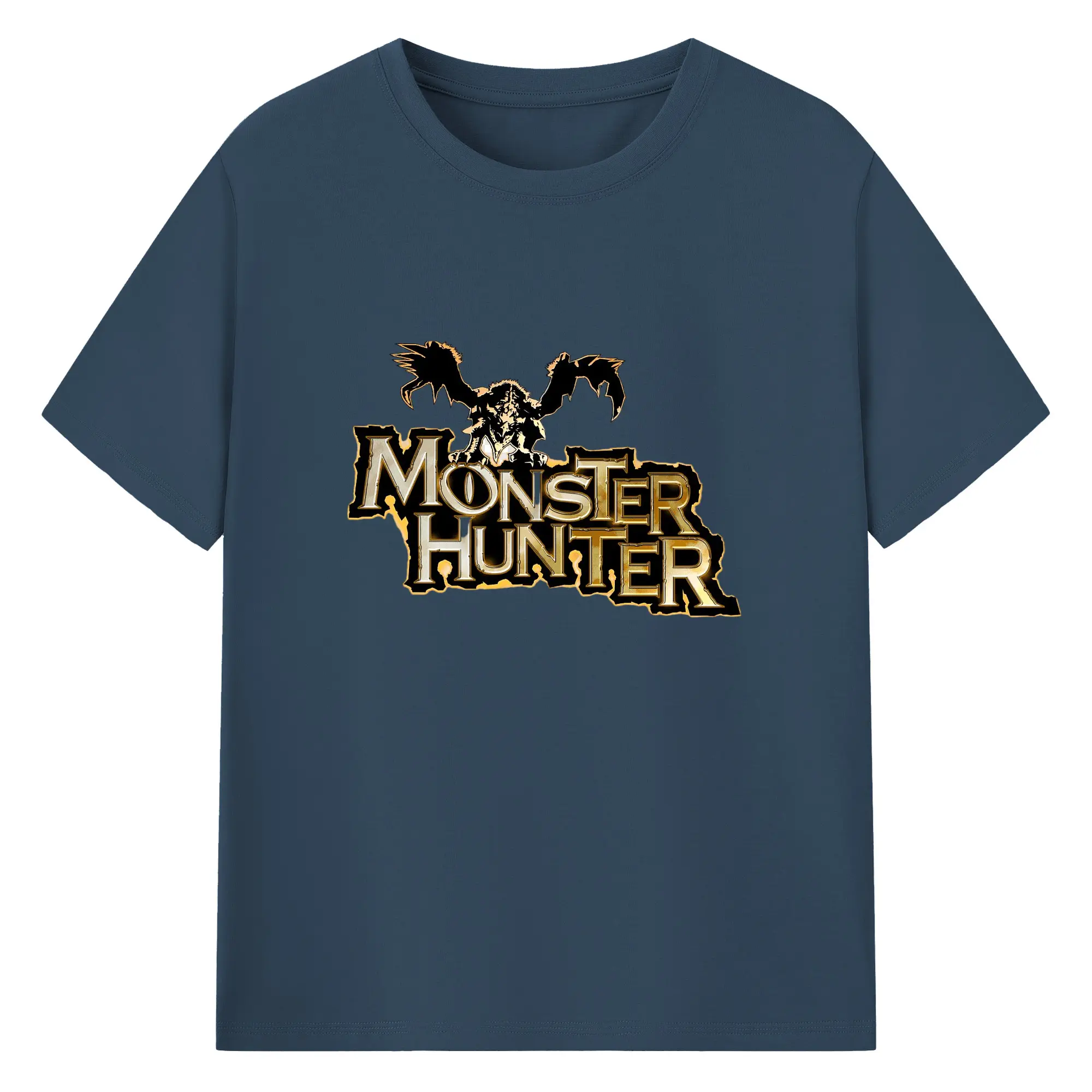 モンハン モンハン シンプルロゴ - 綿100% ヴィンテージ風 半袖Tシャツ ・ フロントプリント ・ 柔らか肌触り ・ 通気性 快適 ・ スポーツ カジュアル 外出用