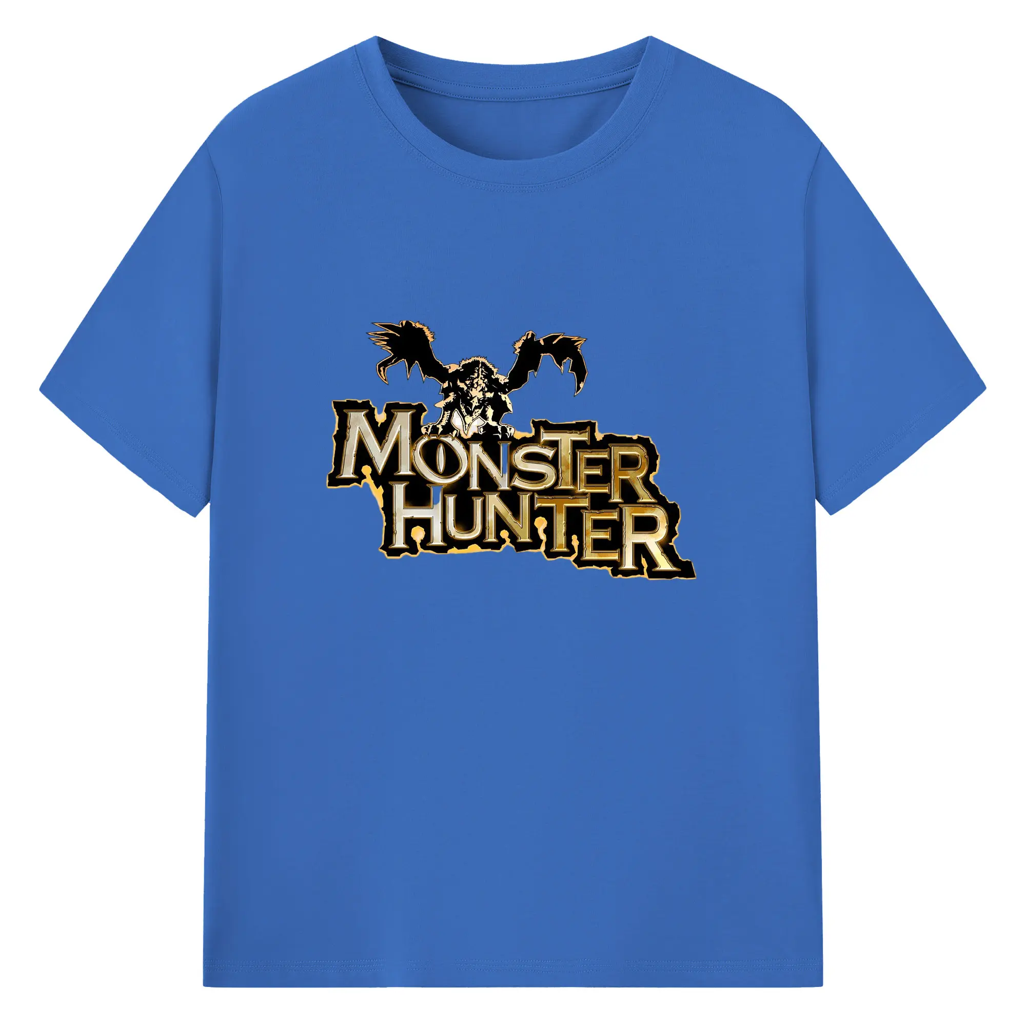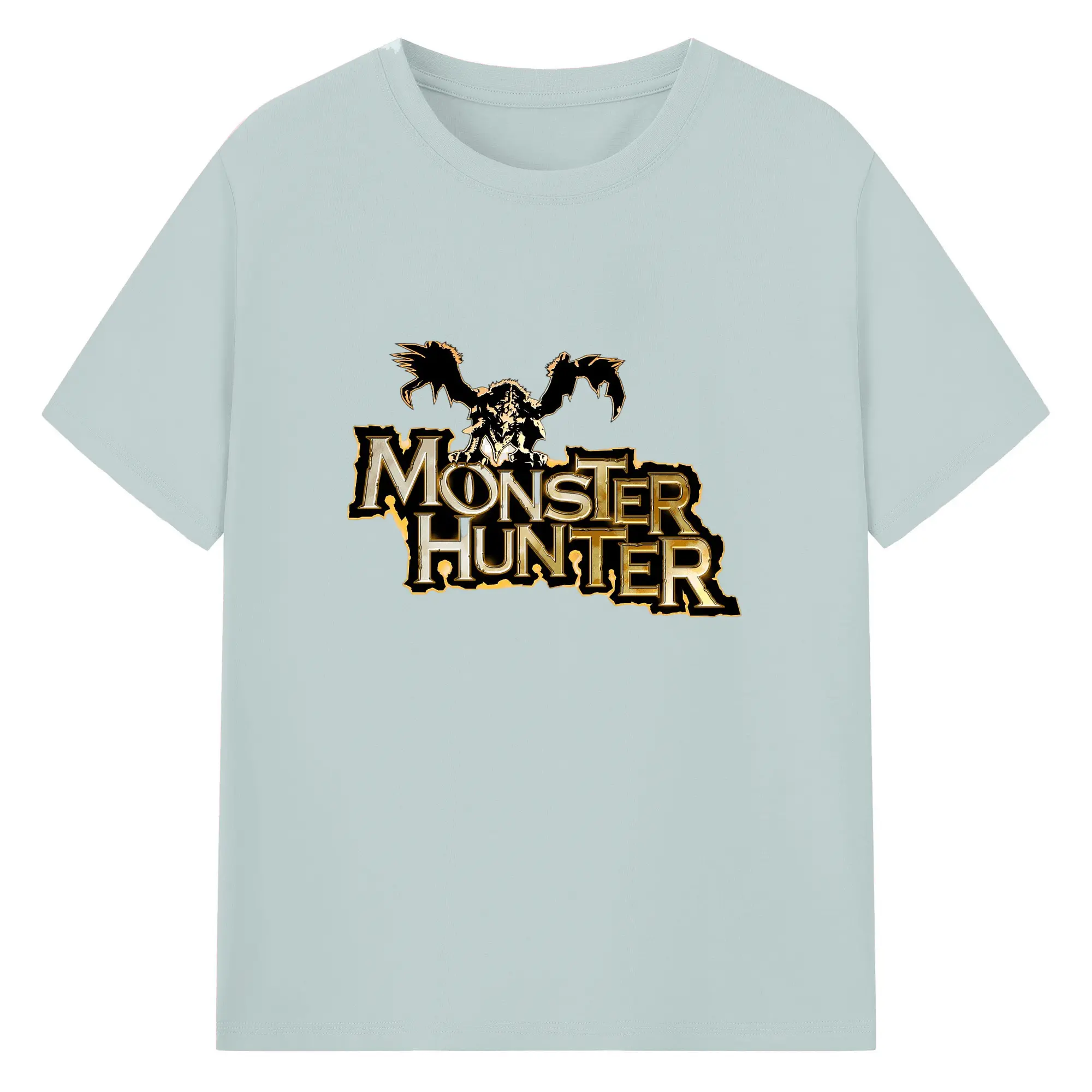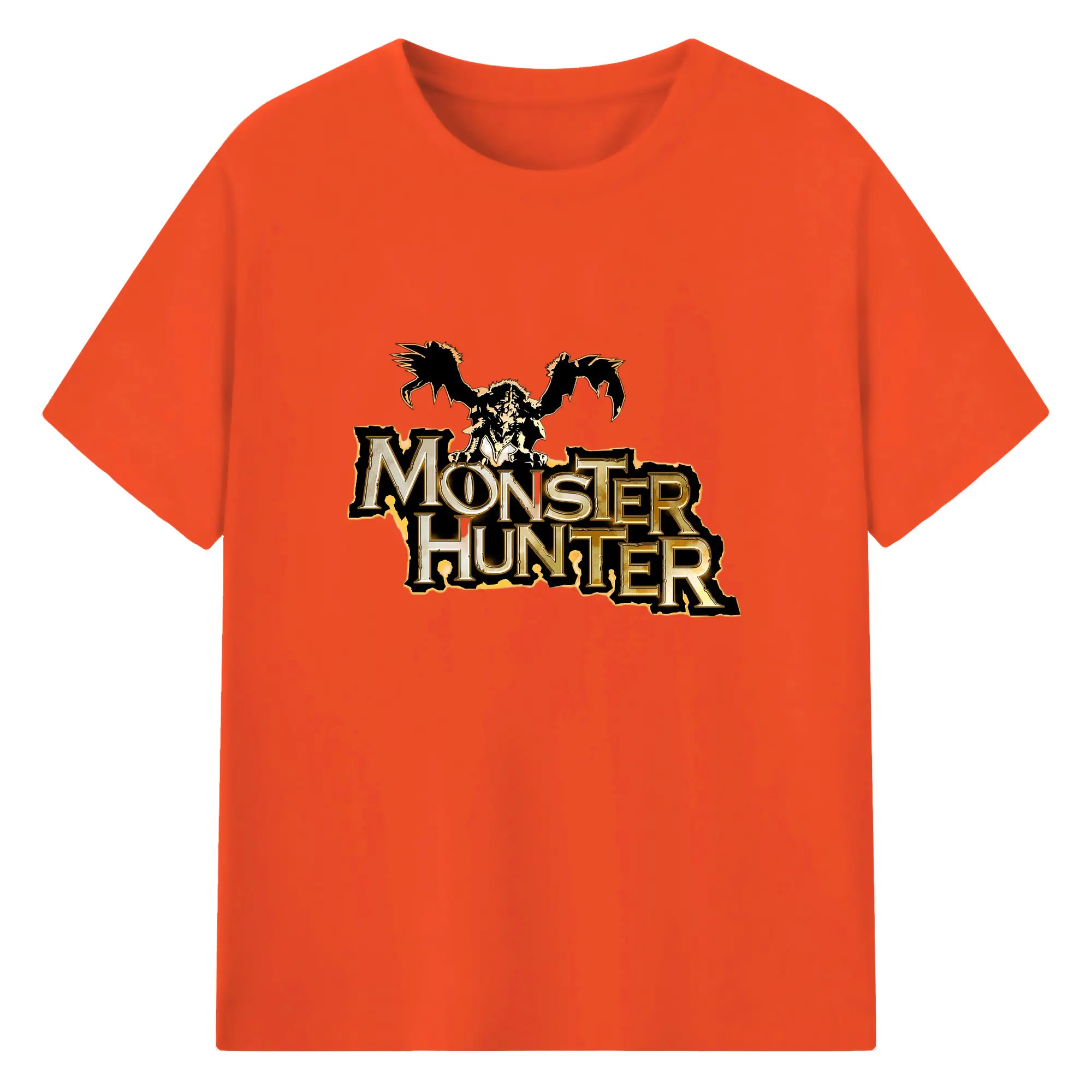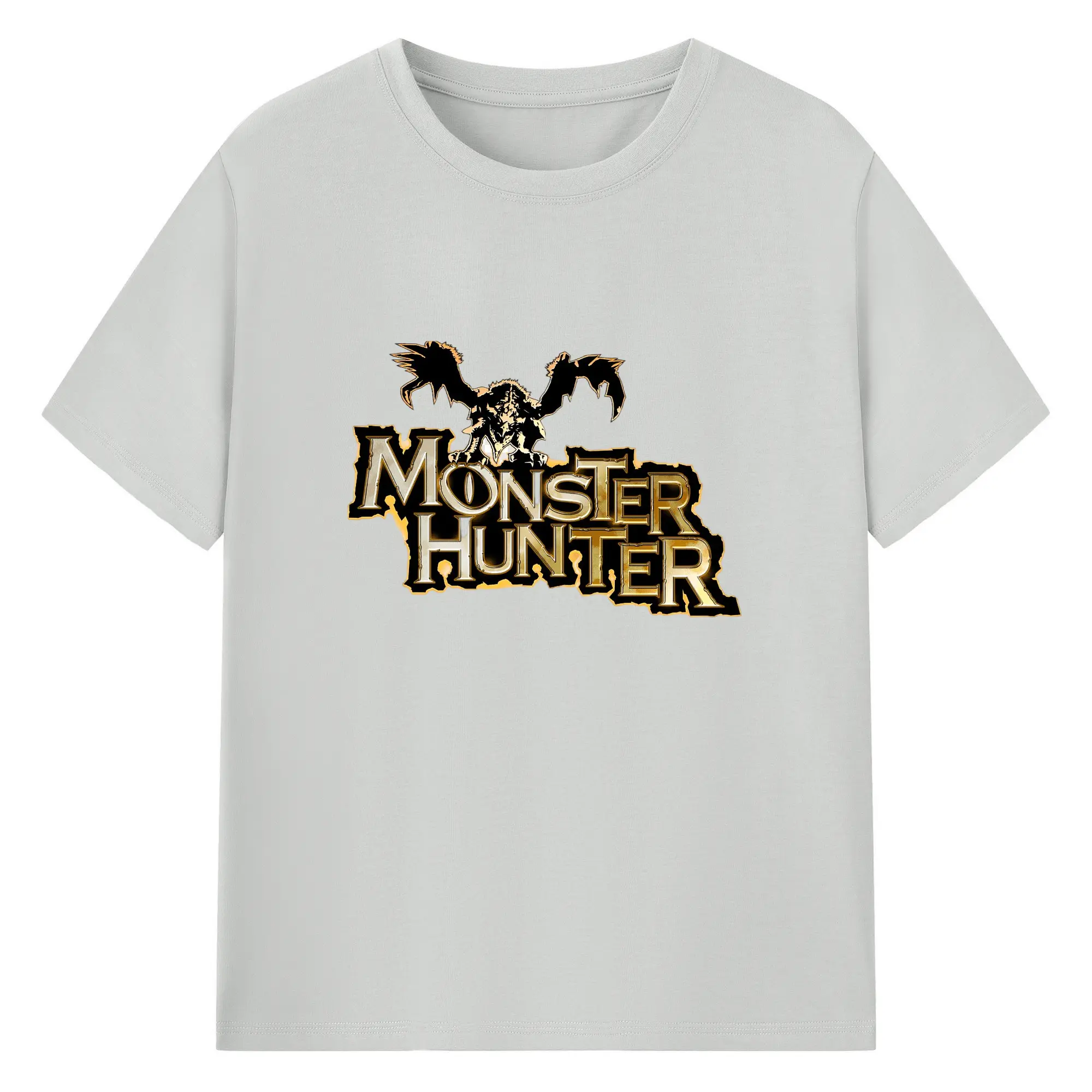 モンハン モンハン シンプルロゴ - 綿100% ヴィンテージ風 半袖Tシャツ ・ フロントプリント ・ 柔らか肌触り ・ 通気性 快適 ・ スポーツ カジュアル 外出用