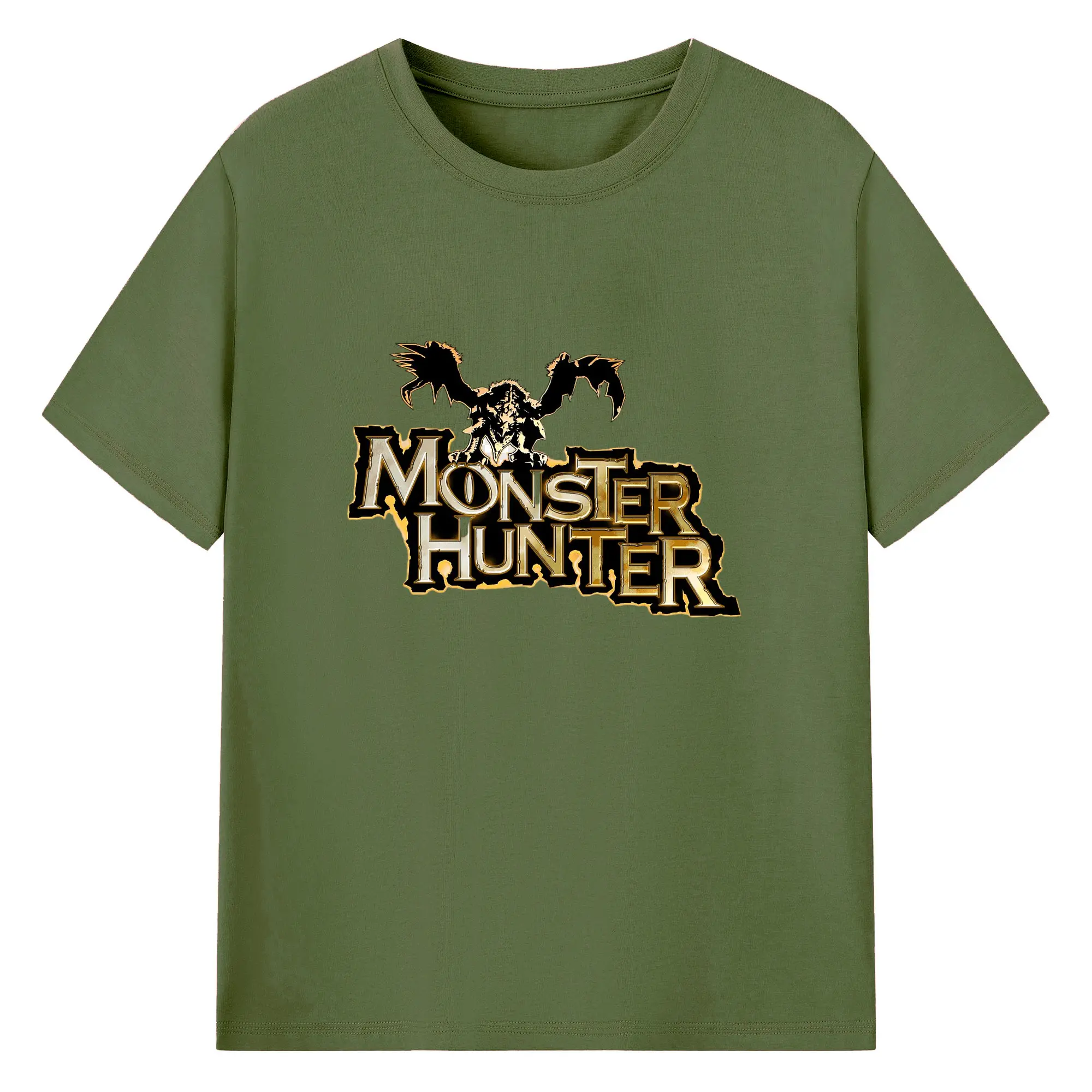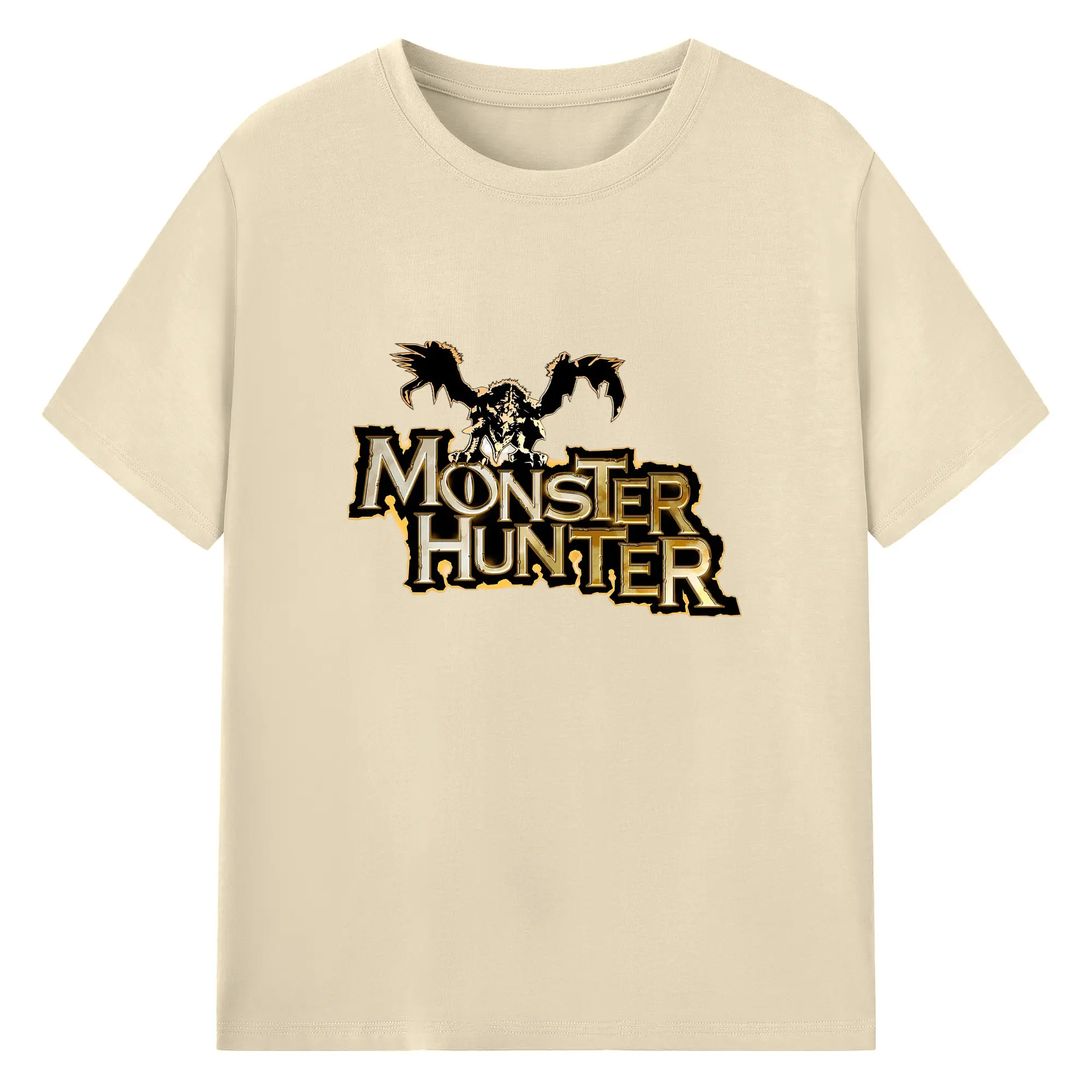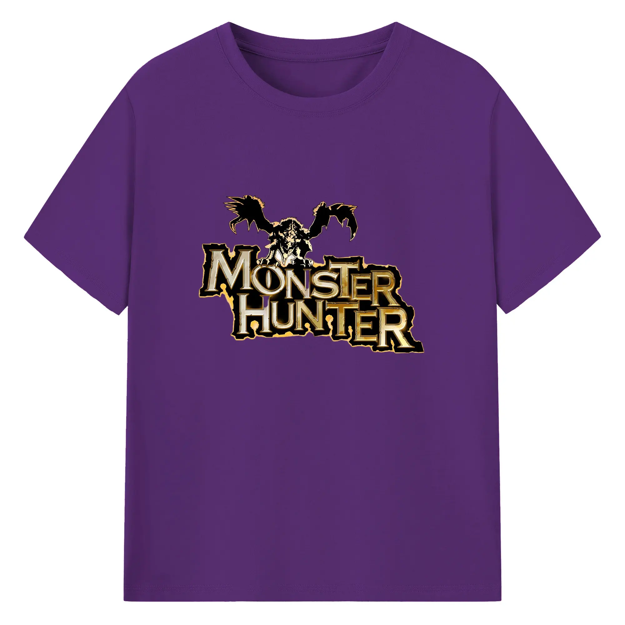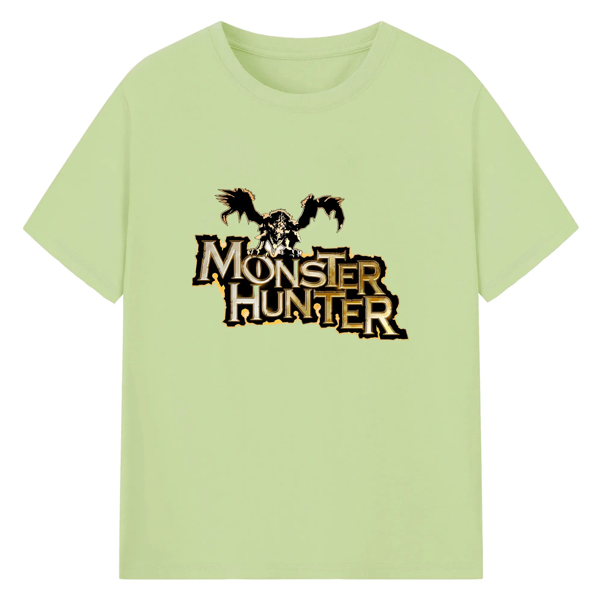 モンハン モンハン シンプルロゴ - 綿100% ヴィンテージ風 半袖Tシャツ ・ フロントプリント ・ 柔らか肌触り ・ 通気性 快適 ・ スポーツ カジュアル 外出用
