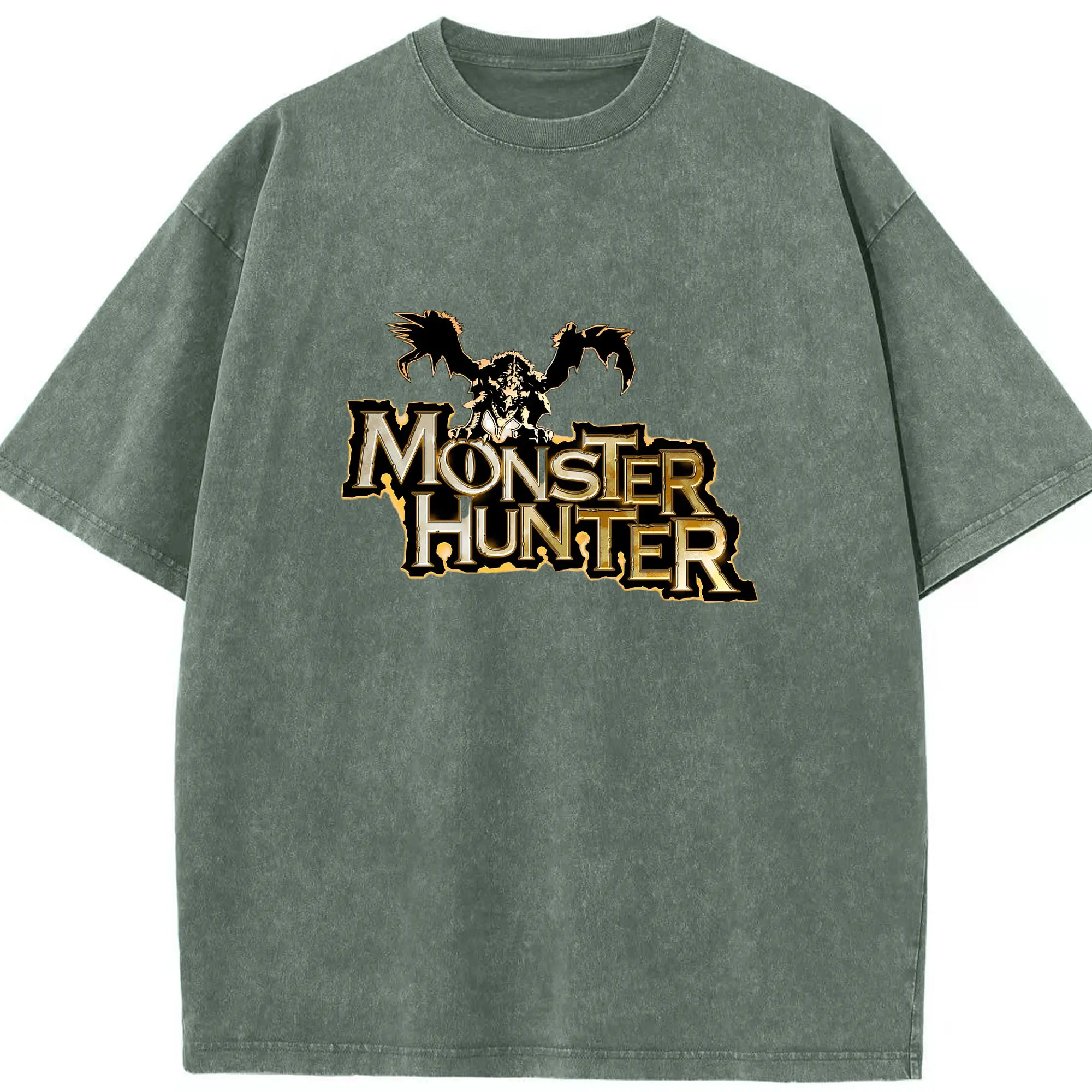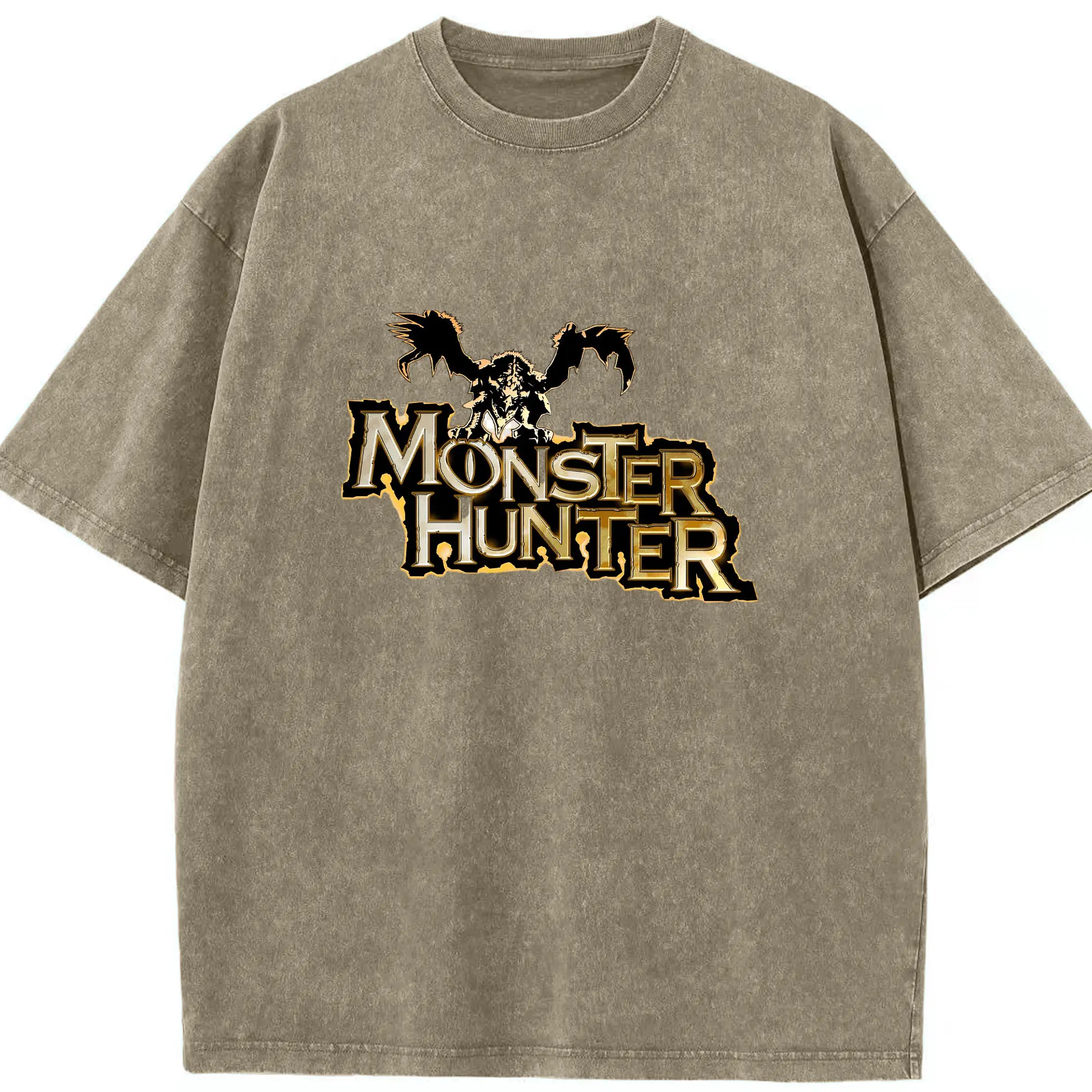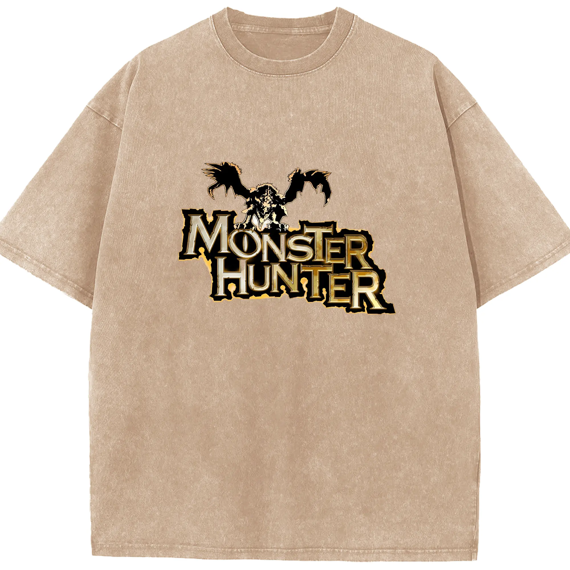 モンハン リオレウス 飛竜種 - 綿100% ヴィンテージ風 半袖Tシャツ ・ フロントプリント ・ 柔らか肌触り ・ 通気性 快適 ・ スポーツ カジュアル 外出用