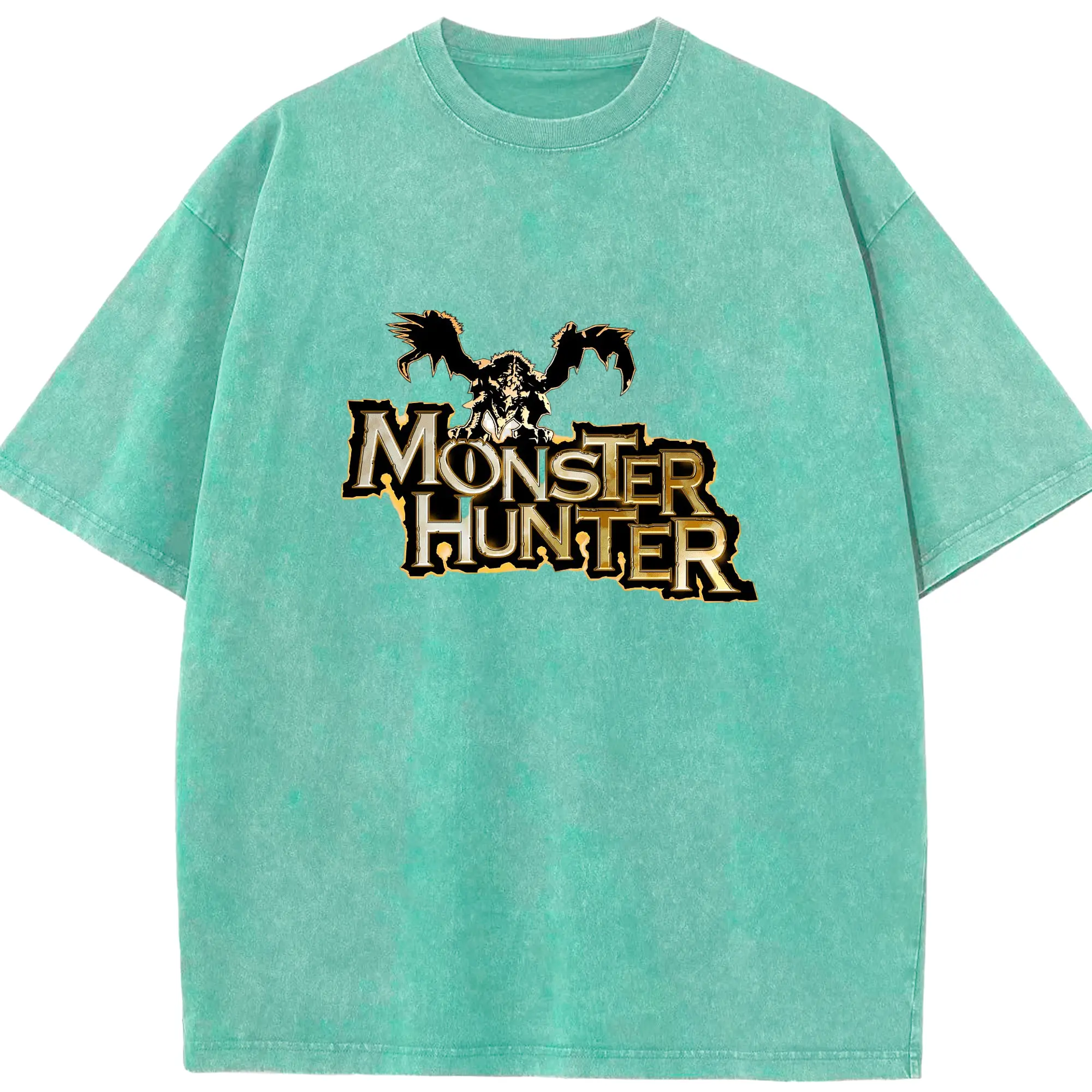 モンハン モンハン シンプルロゴ - 綿100% 半袖Tシャツ ・ フロントプリント ・ 快適 通気性 ・ 日常使い 散歩 スポーツ用
