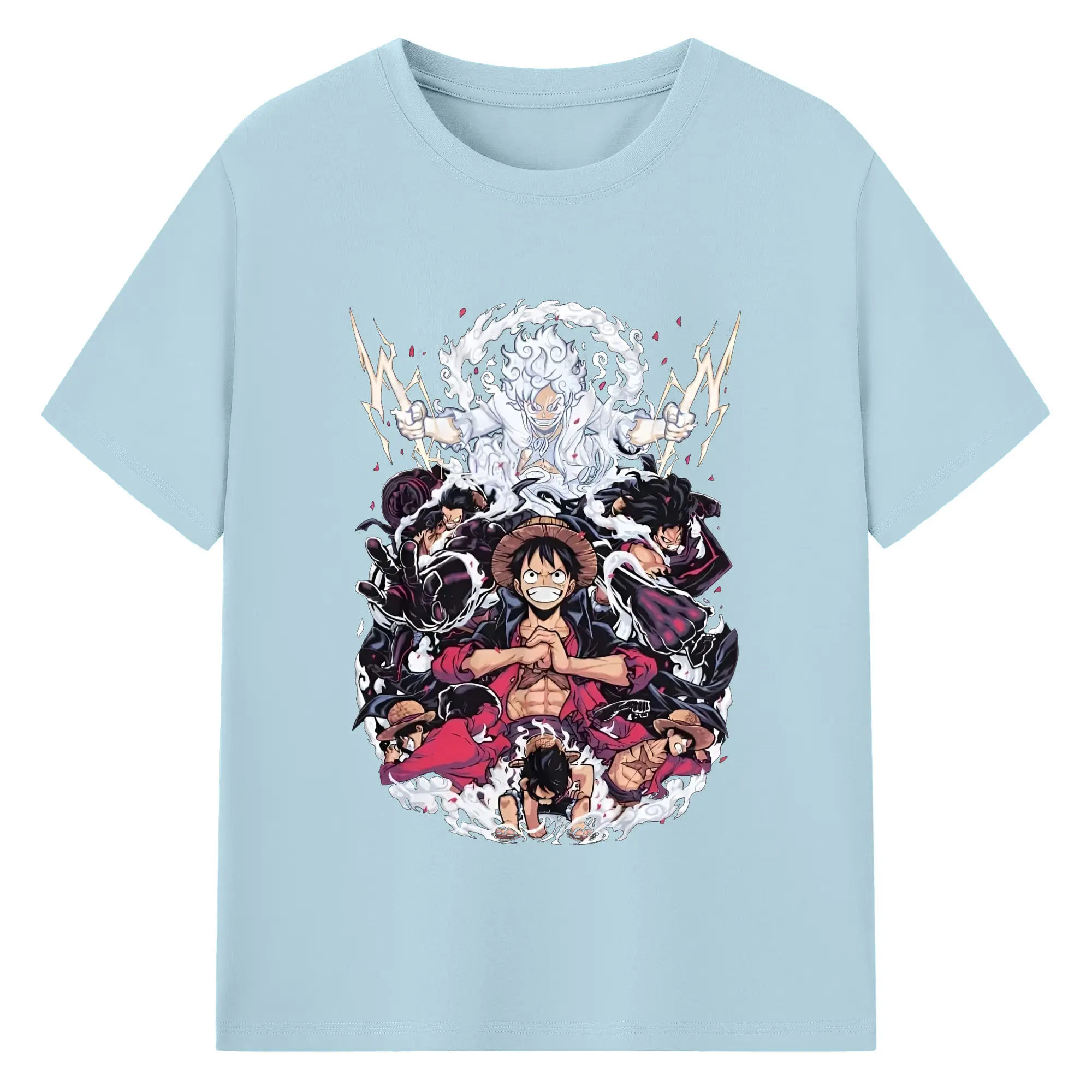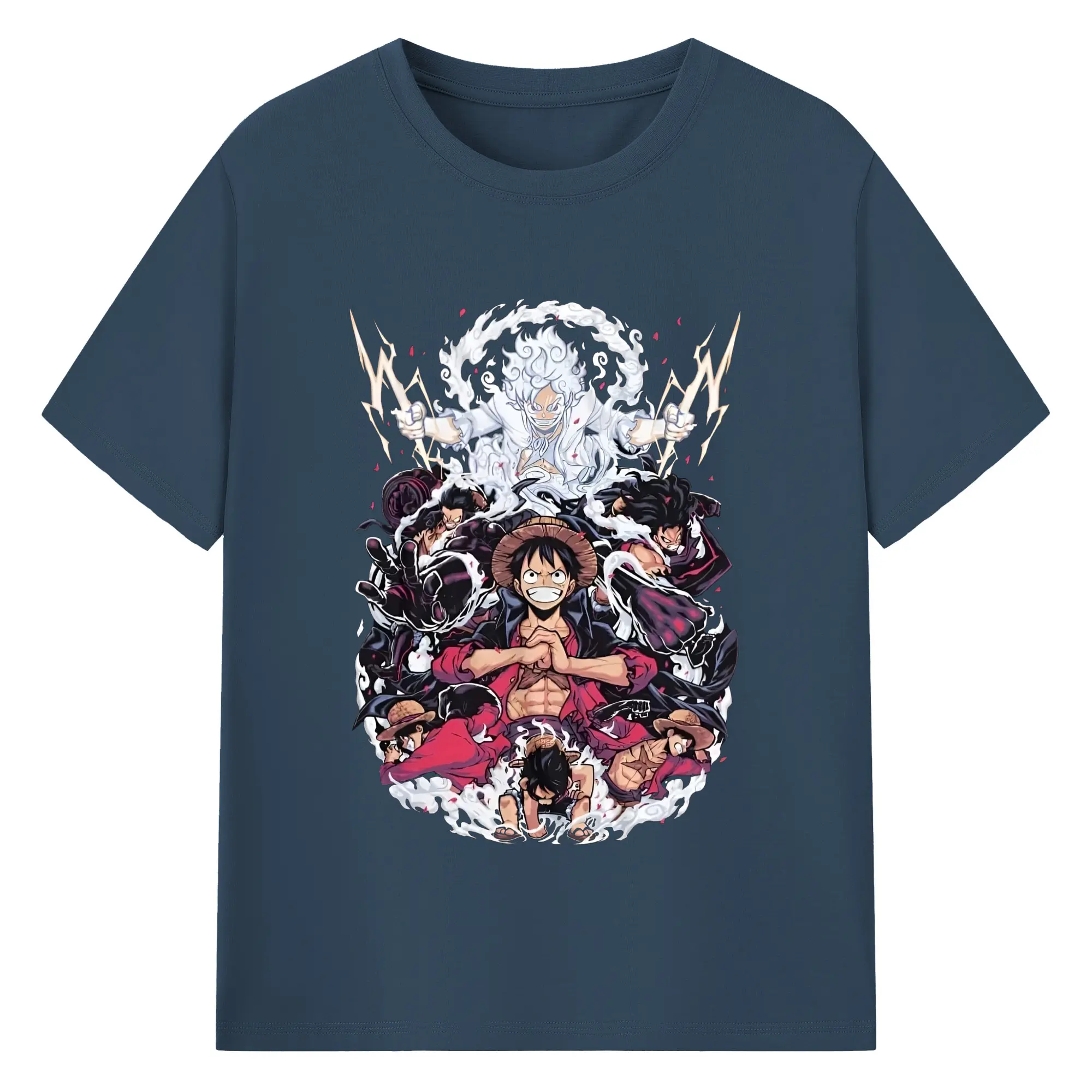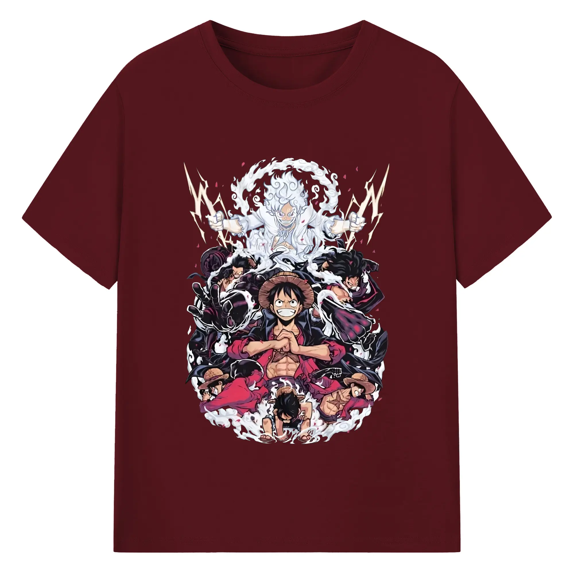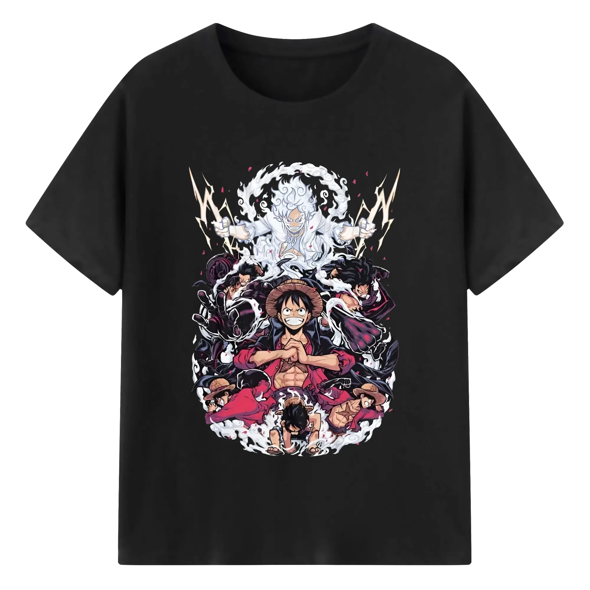 ワンピースモンキー・D・ルフィ - 綿100% 半袖Tシャツ ・ フロントプリント ・ 快適 通気性 ・ 日常使い 散歩 スポーツ用