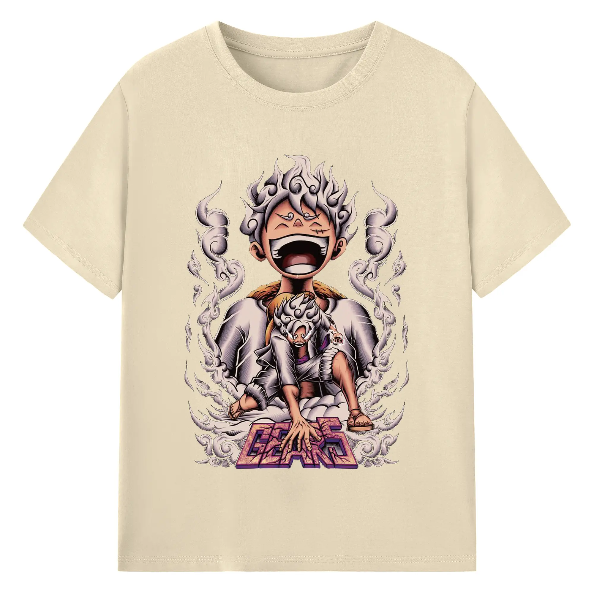 ワンピースモンキー・D・ルフィ - 綿100% ヴィンテージ風 半袖Tシャツ ・ フロントプリント ・ 柔らか肌触り ・ 通気性 快適 ・ スポーツ カジュアル 外出用
