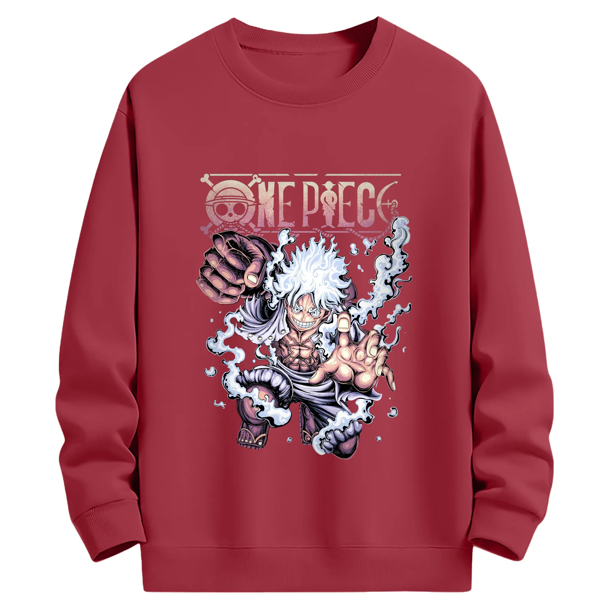 ワンピースモンキー・D・ルフィ - 高品質 クルーネック スウェット ・ コットン59% ポリエステル41% ・ ユニセックス 長袖 トレーナー ・ カジュアル デイリー スポーツ 散歩用