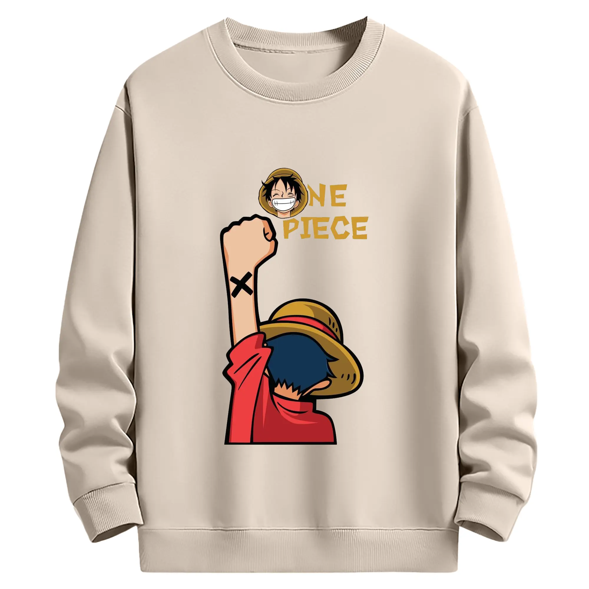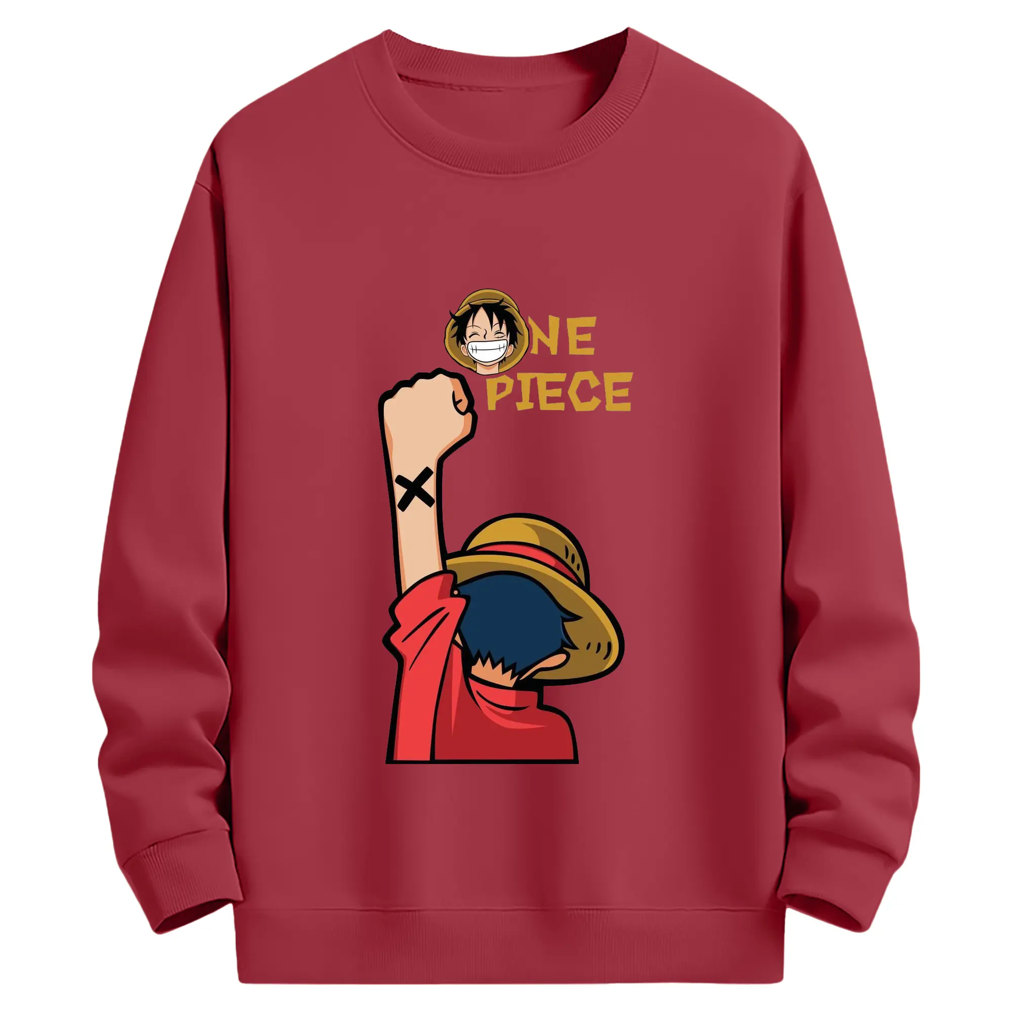 ワンピースモンキー・D・ルフィ - 高品質 クルーネック スウェット ・ コットン59% ポリエステル41% ・ ユニセックス 長袖 トレーナー ・ カジュアル デイリー スポーツ 散歩用