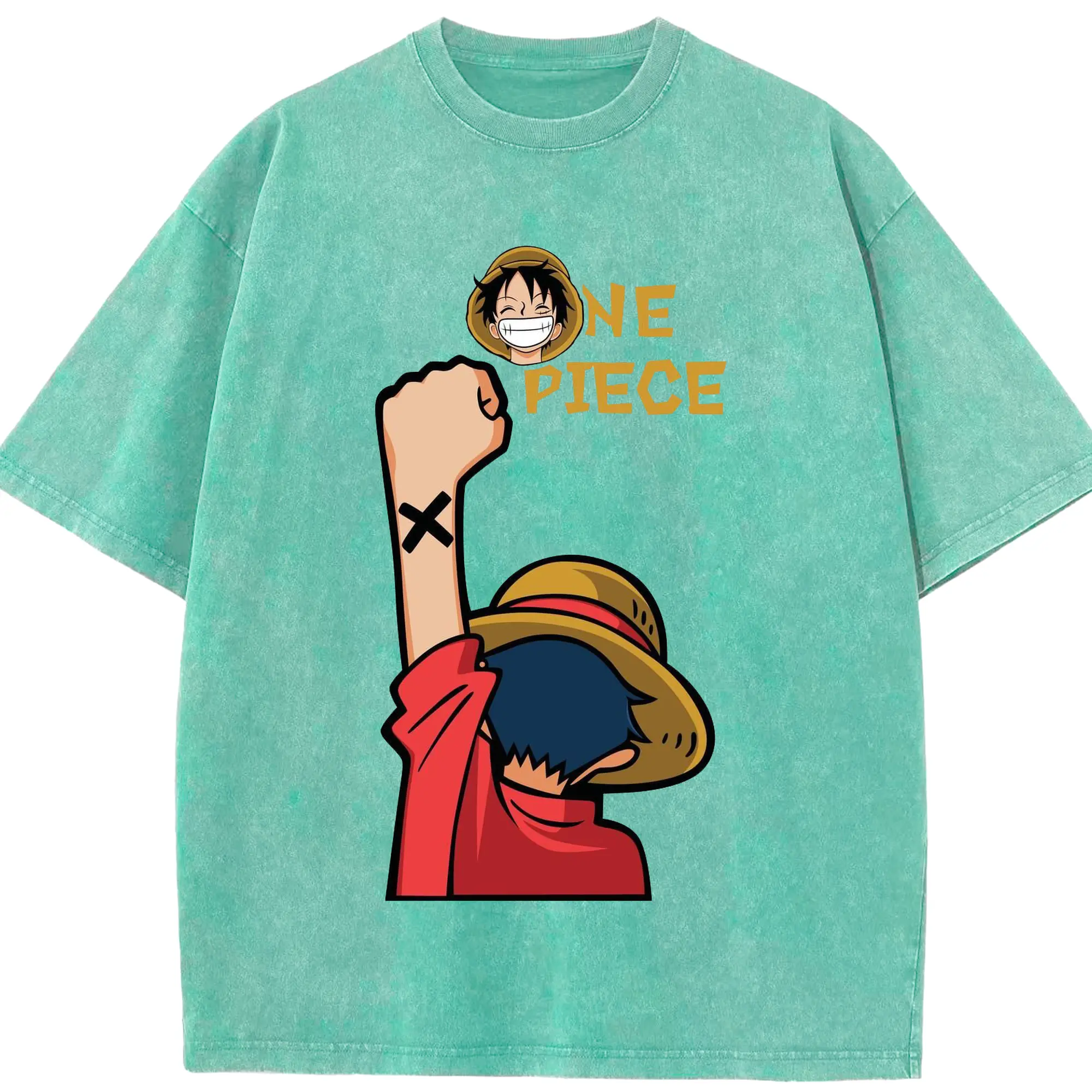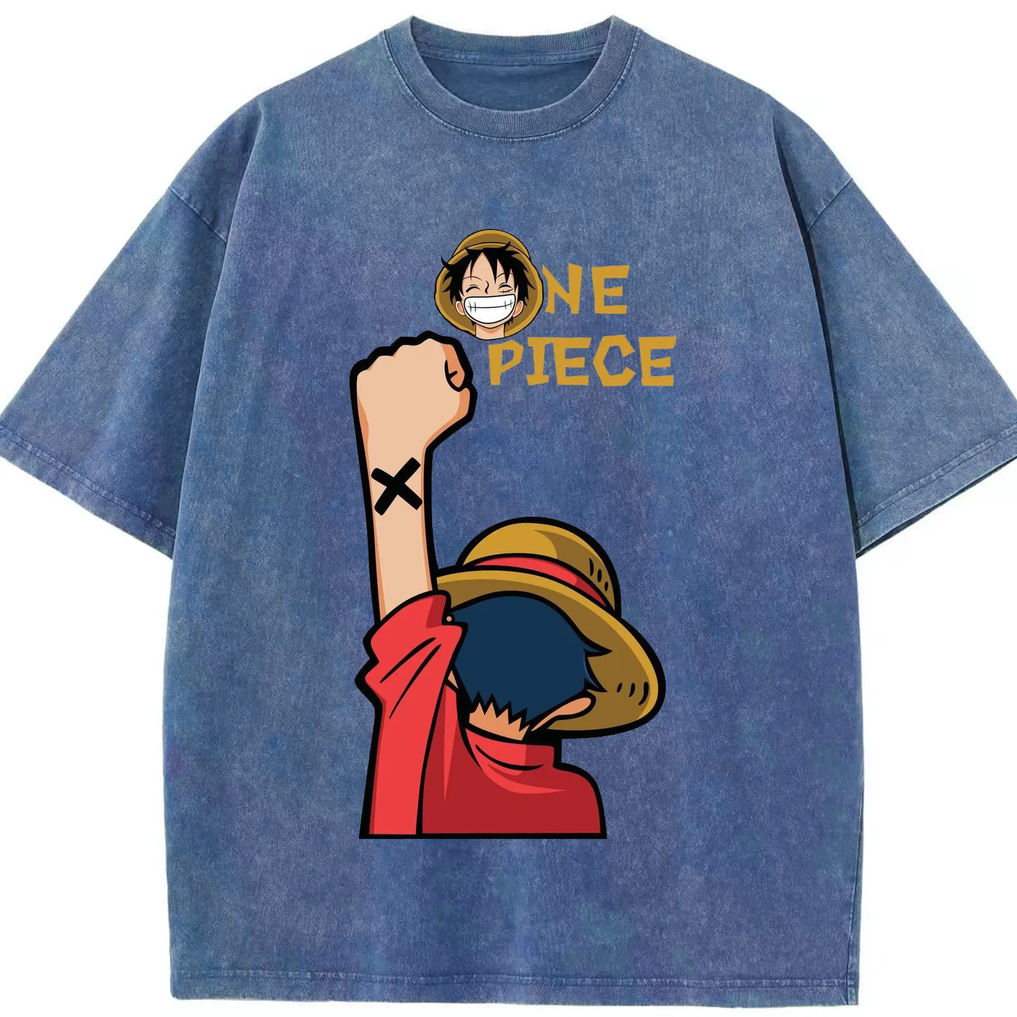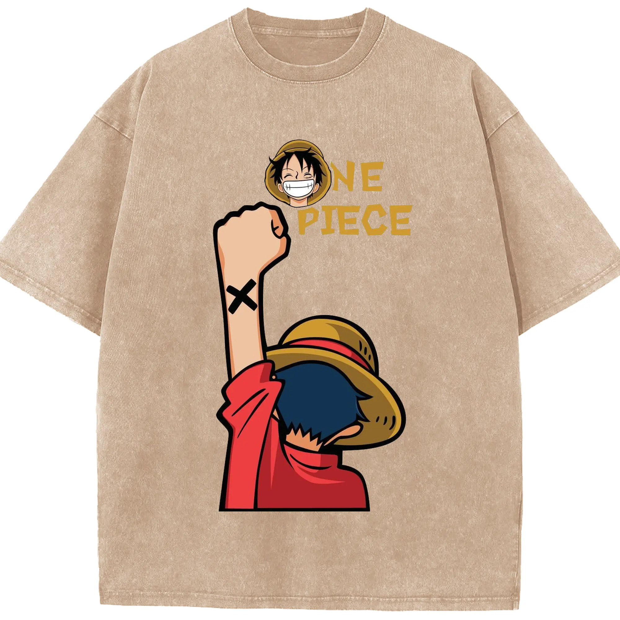ワンピース モンキー・D・ルフィ - 綿100% ヴィンテージ風 半袖Tシャツ ・ フロントプリント ・ 柔らか肌触り ・ 通気性 快適 ・ スポーツ カジュアル 外出用