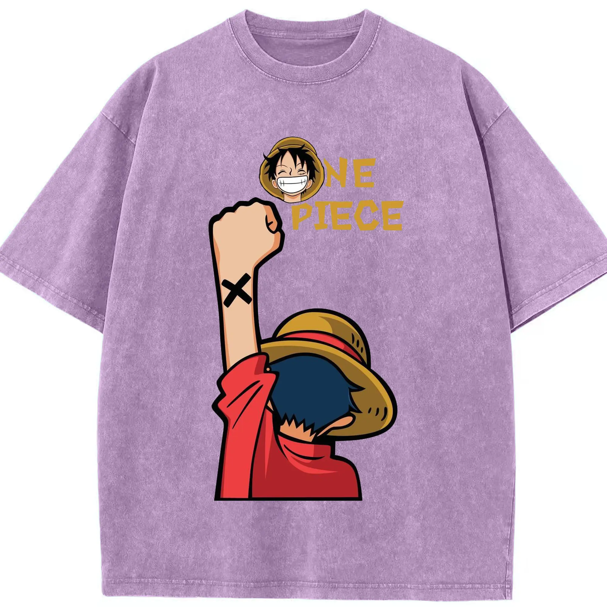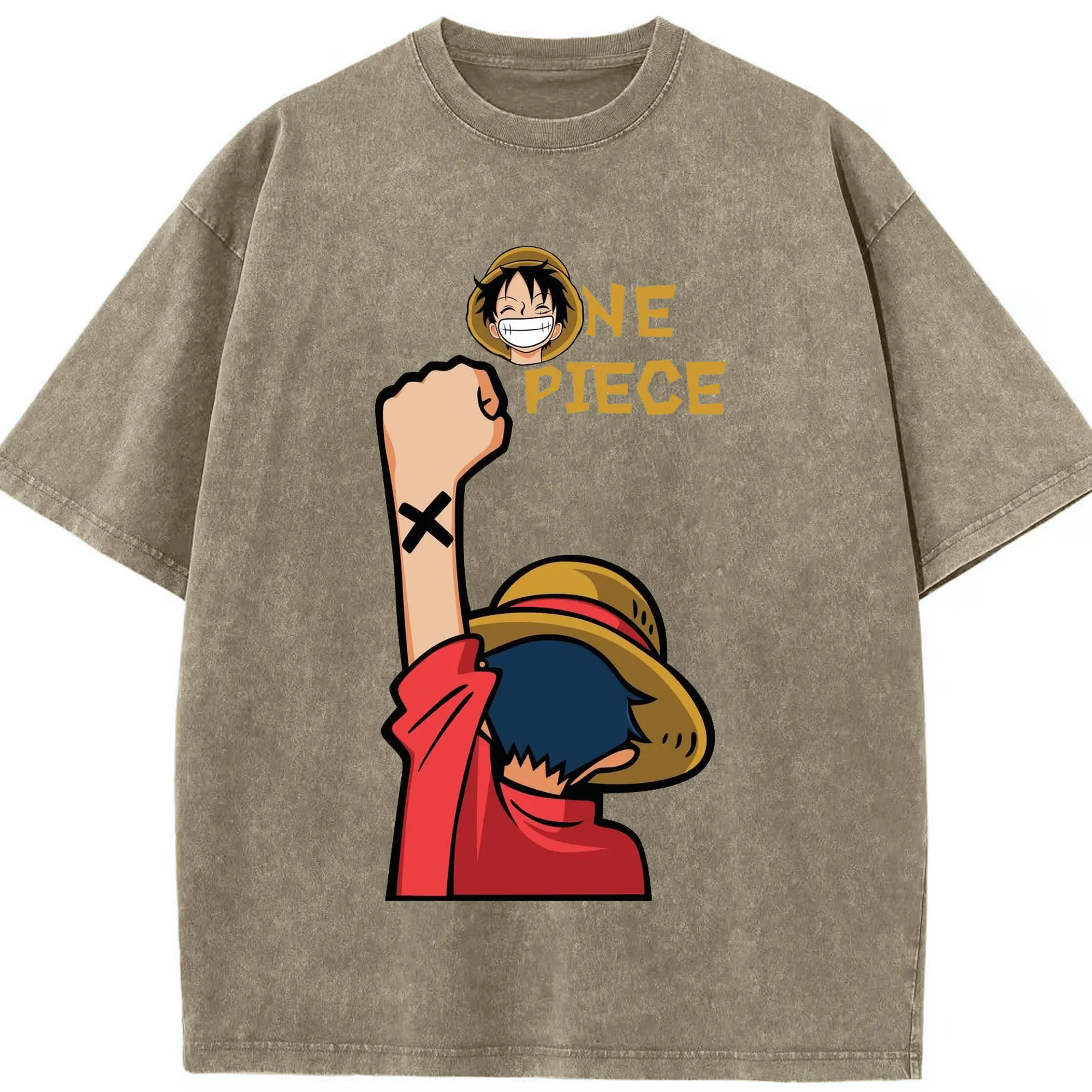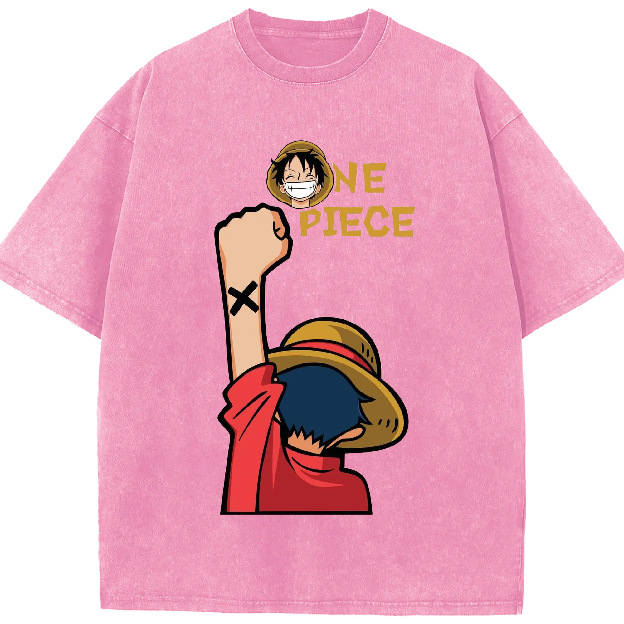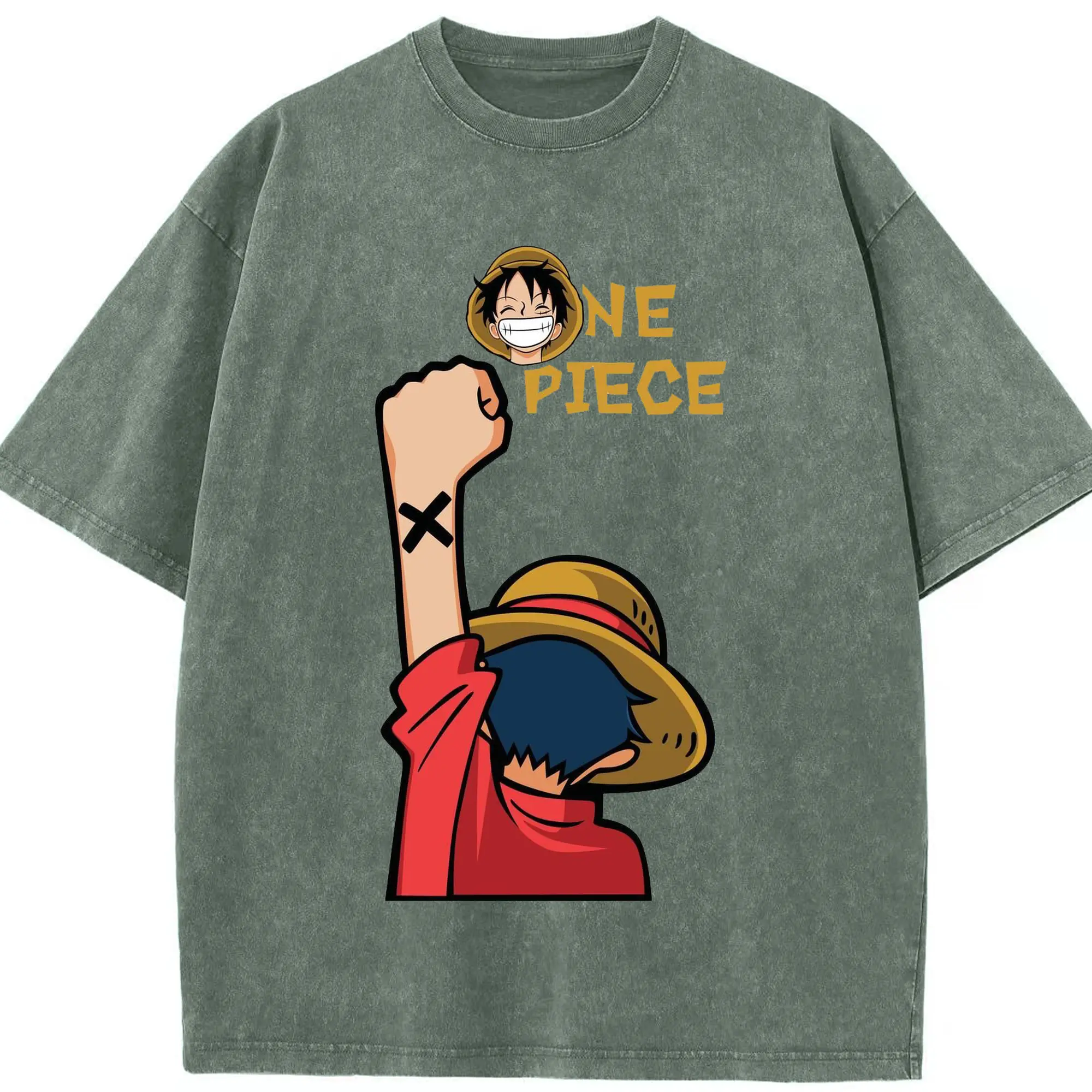 ワンピース モンキー・D・ルフィ - 綿100% ヴィンテージ風 半袖Tシャツ ・ フロントプリント ・ 柔らか肌触り ・ 通気性 快適 ・ スポーツ カジュアル 外出用