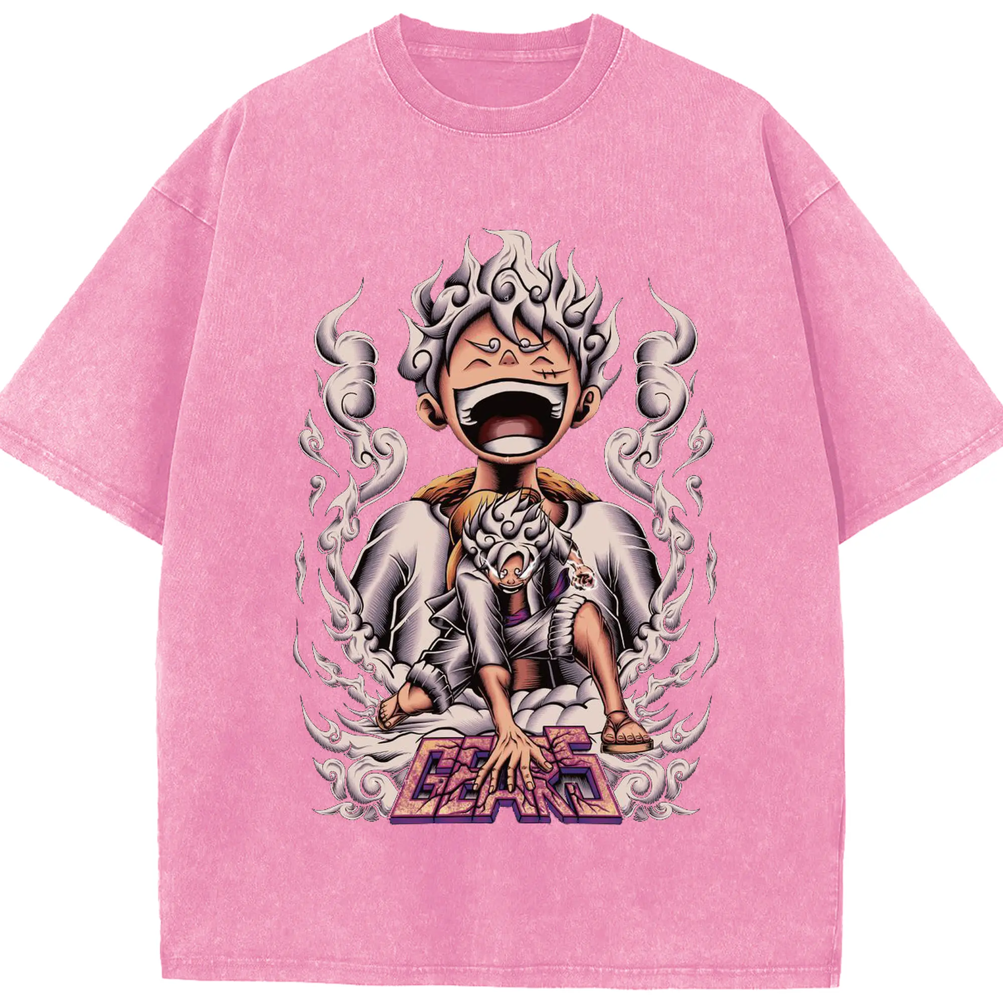 ワンピースモンキー・D・ルフィ - 綿100% ヴィンテージ風 半袖Tシャツ ・ フロントプリント ・ 柔らか肌触り ・ 通気性 快適 ・ スポーツ カジュアル 外出用