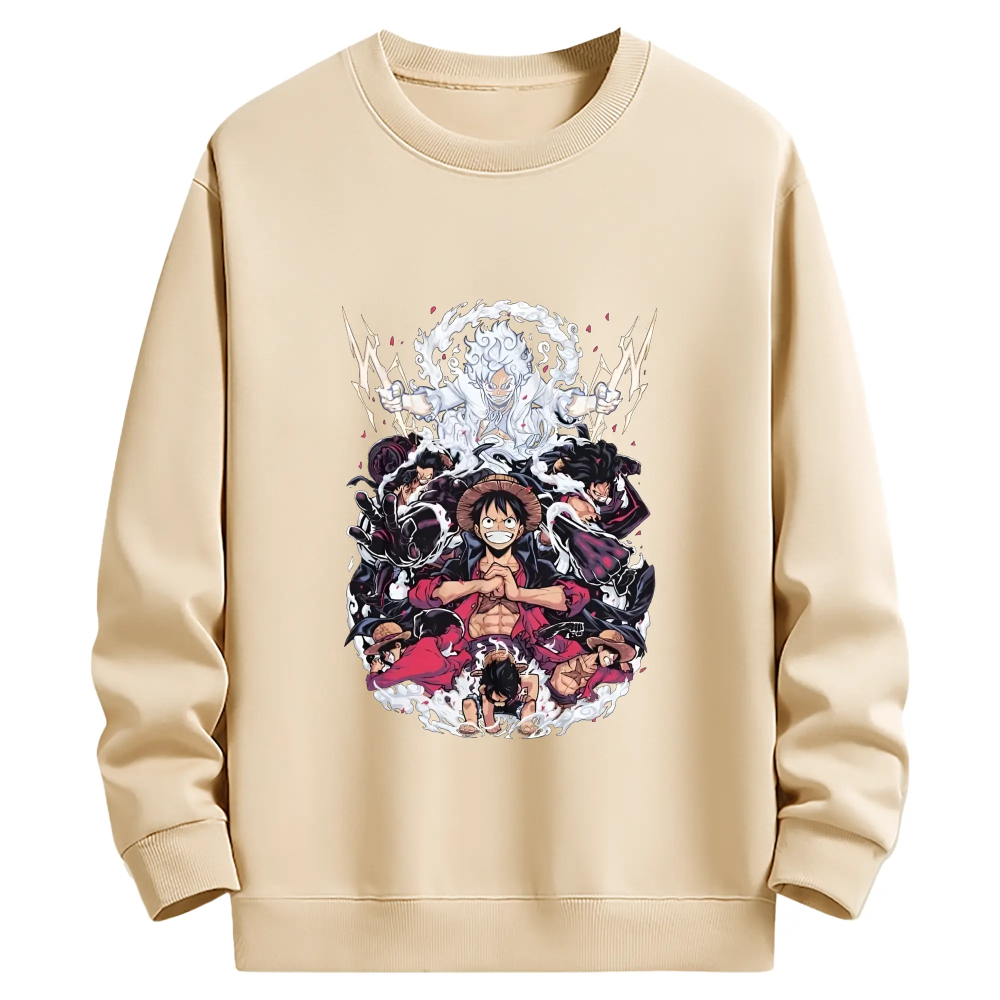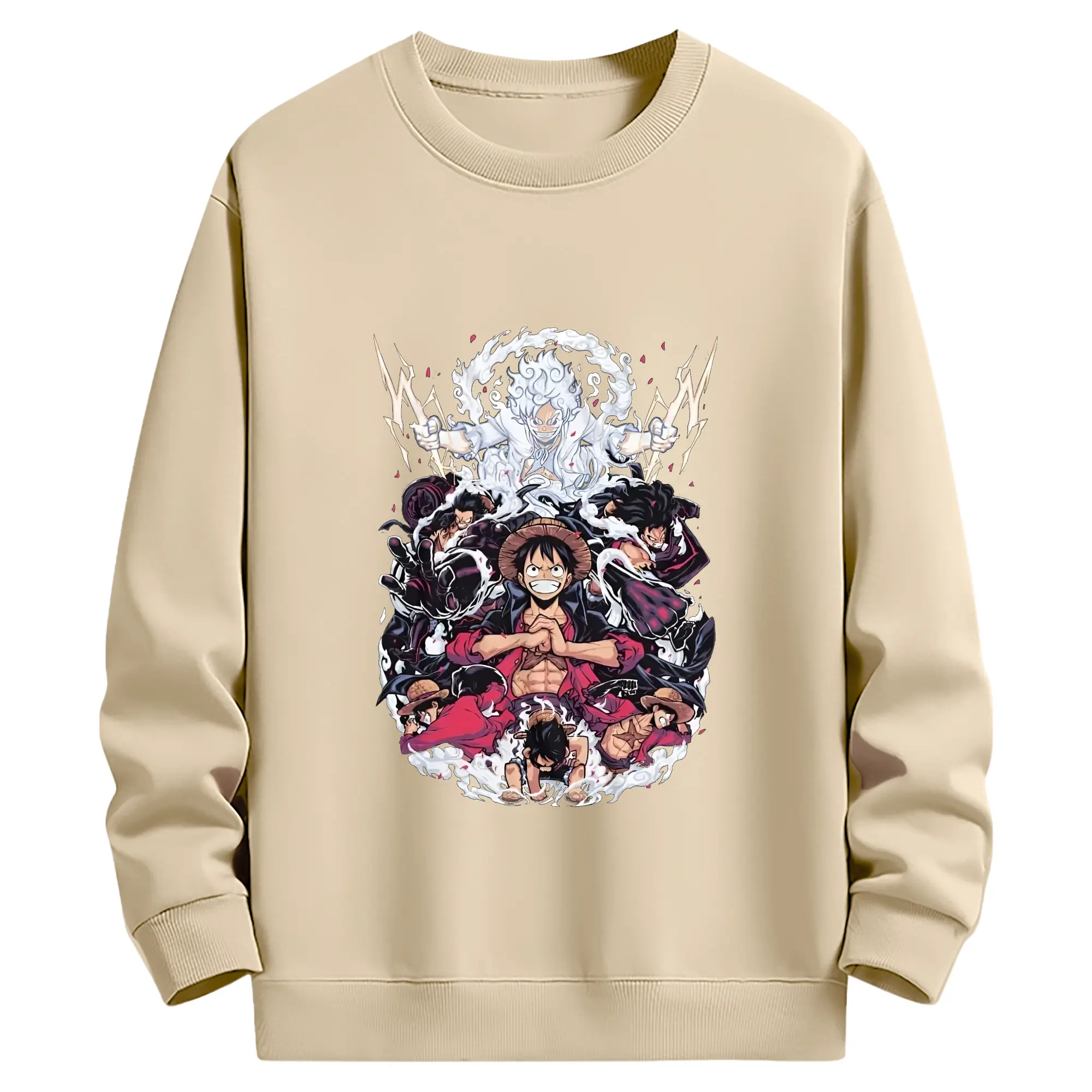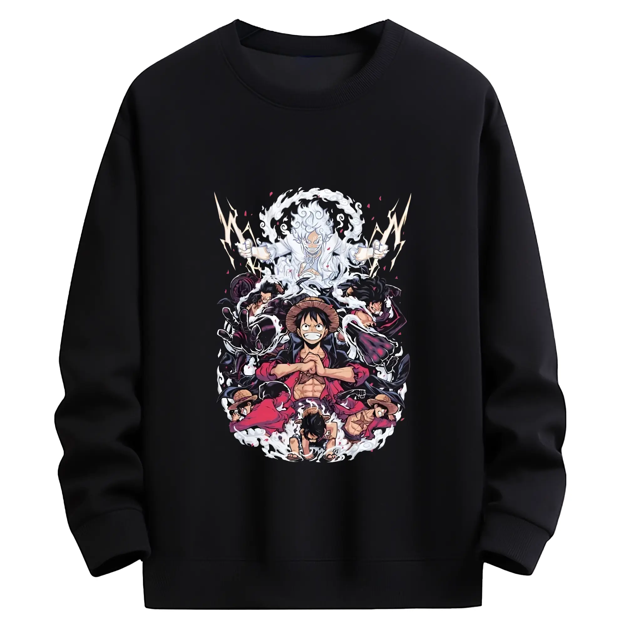 ワンピースモンキー・D・ルフィ - 高品質 クルーネック スウェット ・ コットン59% ポリエステル41% ・ ユニセックス 長袖 トレーナー ・ カジュアル デイリー スポーツ 散歩用