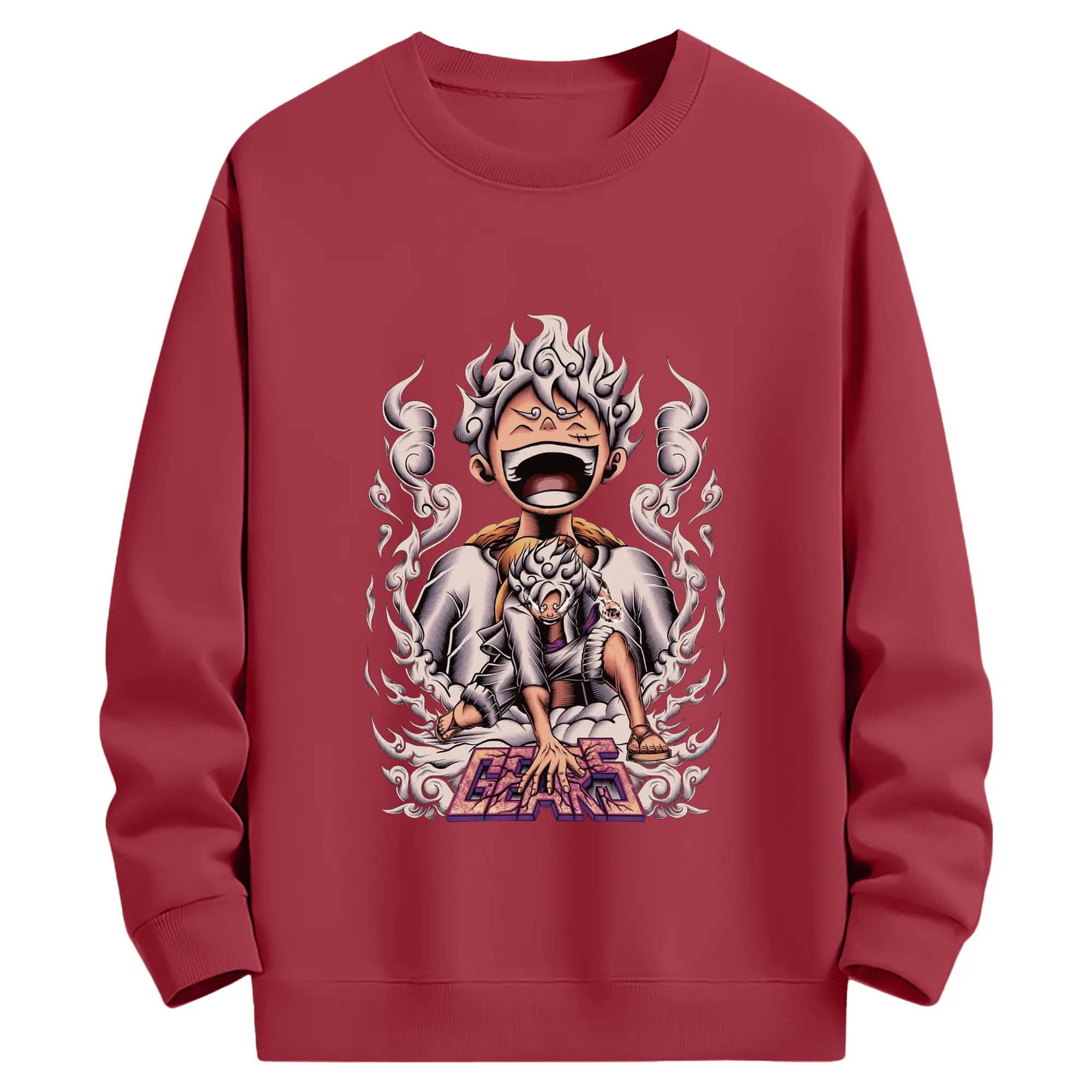 ワンピースモンキー・D・ルフィ - 高品質 クルーネック スウェット ・ コットン59% ポリエステル41% ・ ユニセックス 長袖 トレーナー ・ カジュアル デイリー スポーツ 散歩用