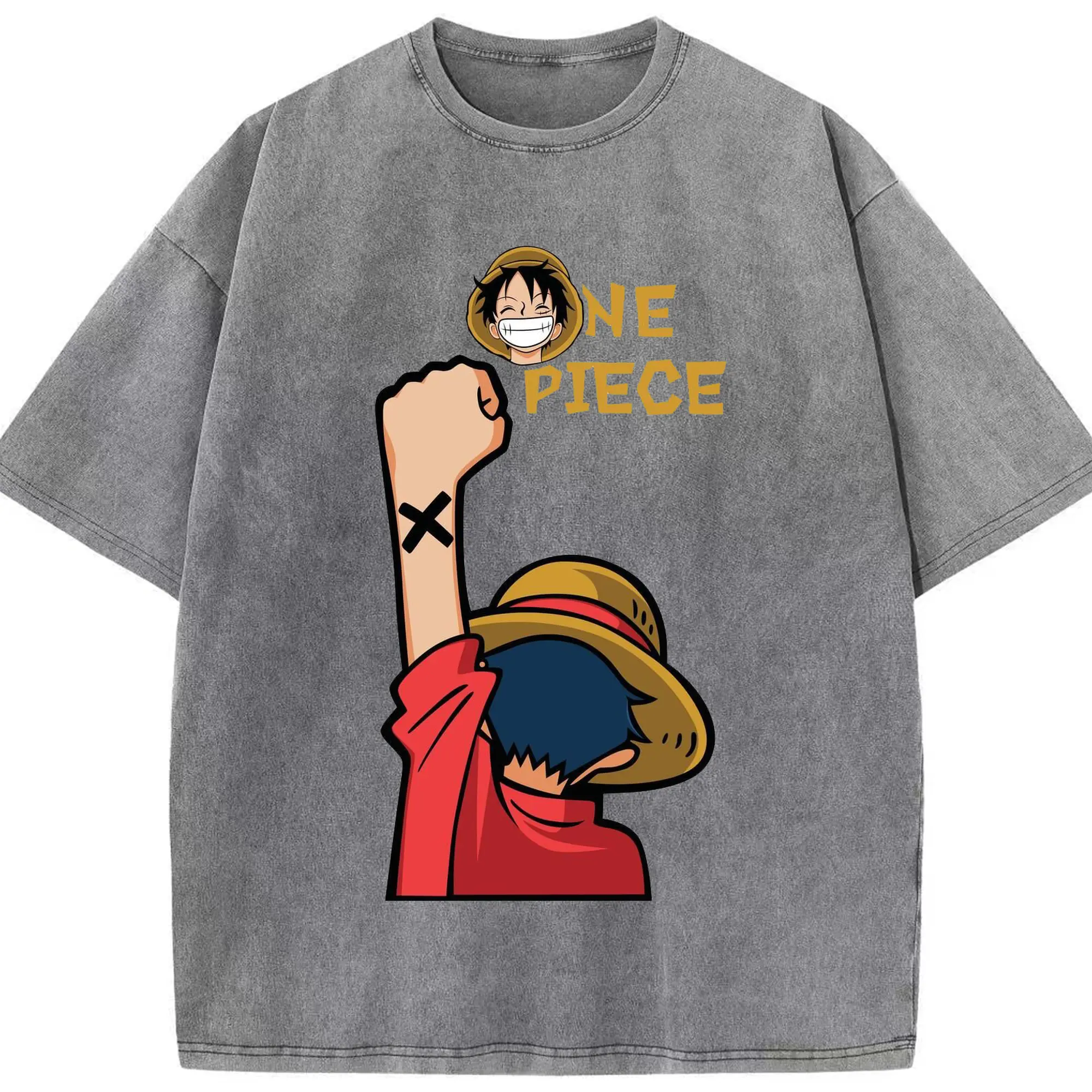 ワンピースモンキー・D・ルフィ - 綿100% ヴィンテージ風 半袖Tシャツ ・ フロントプリント ・ 柔らか肌触り ・ 通気性 快適 ・ スポーツ カジュアル 外出用