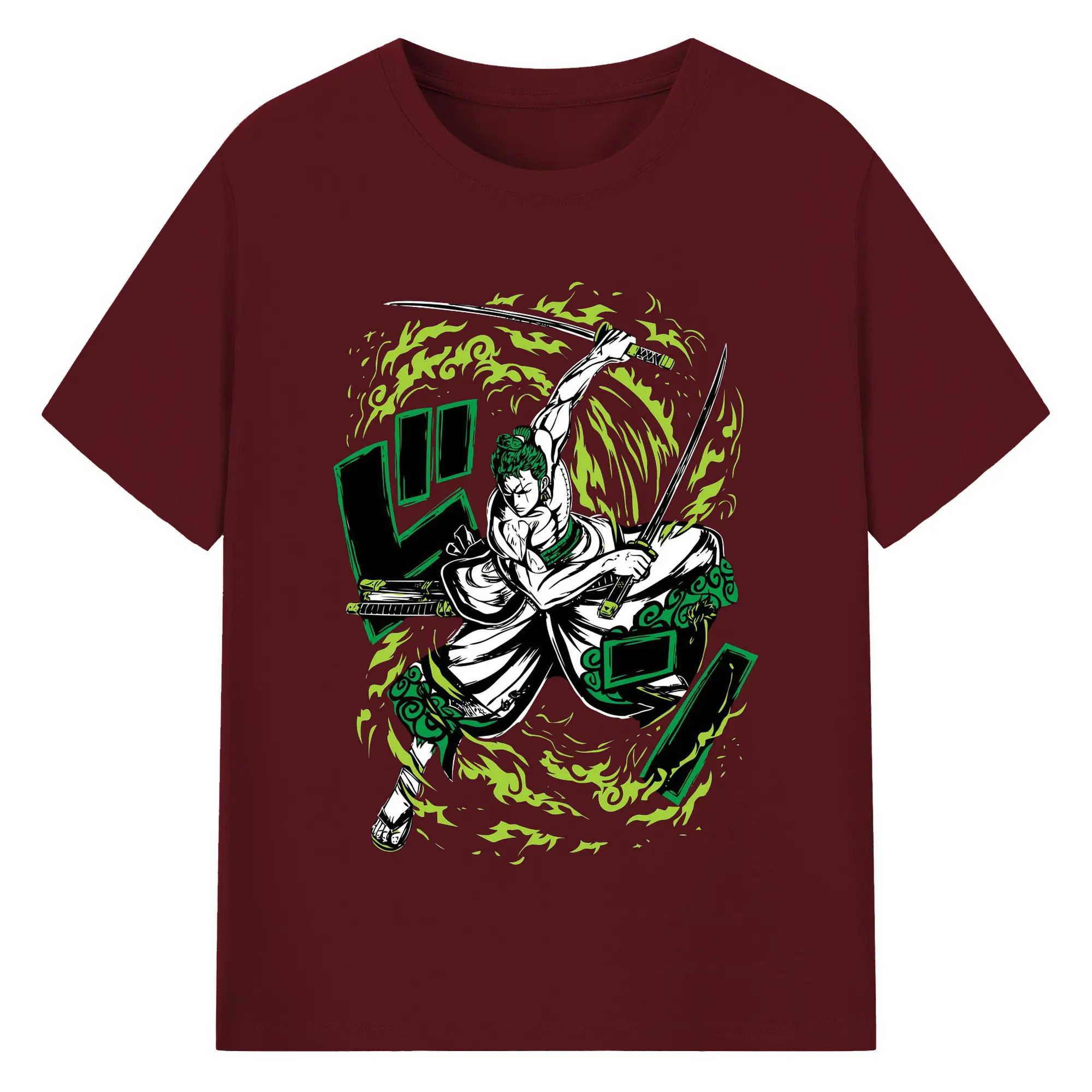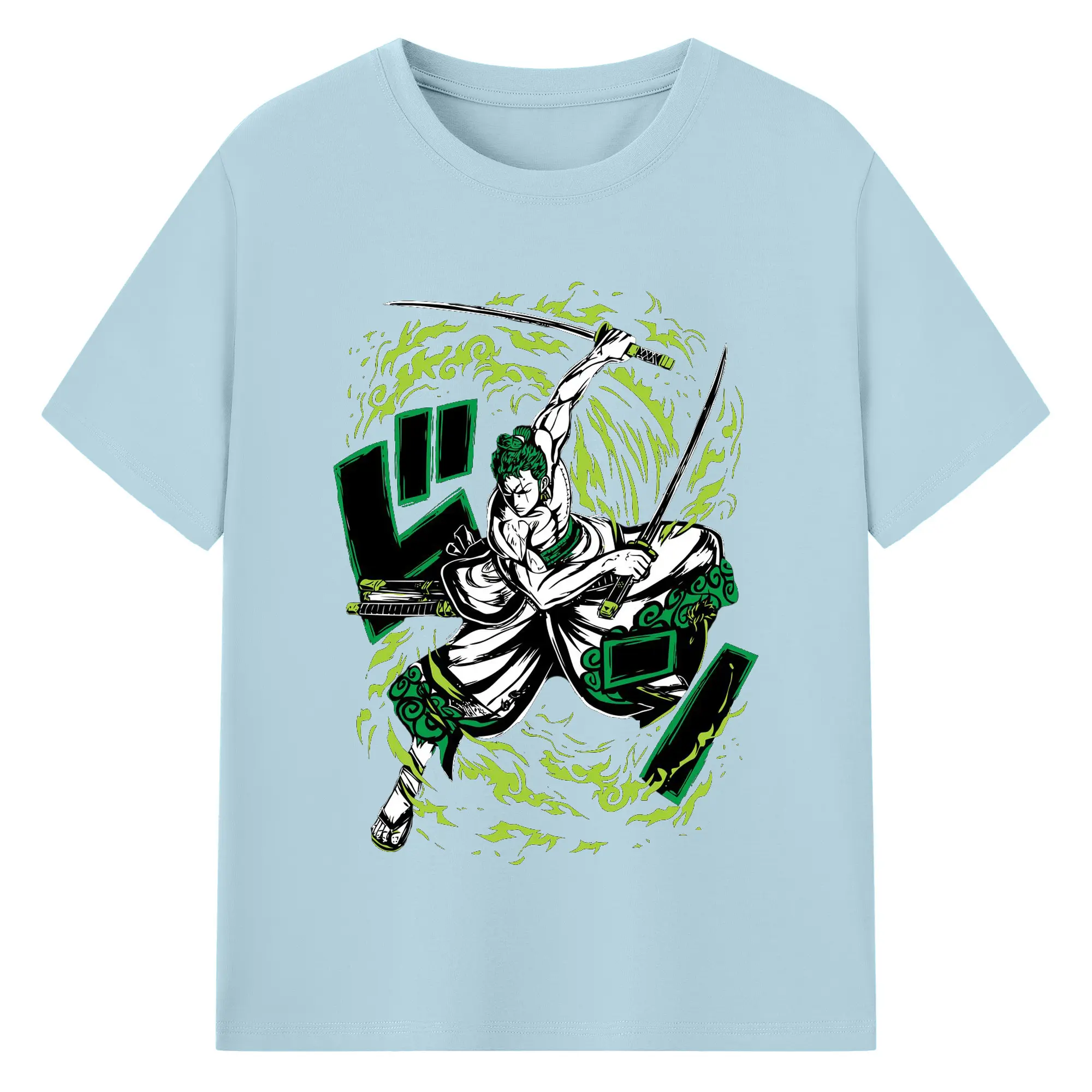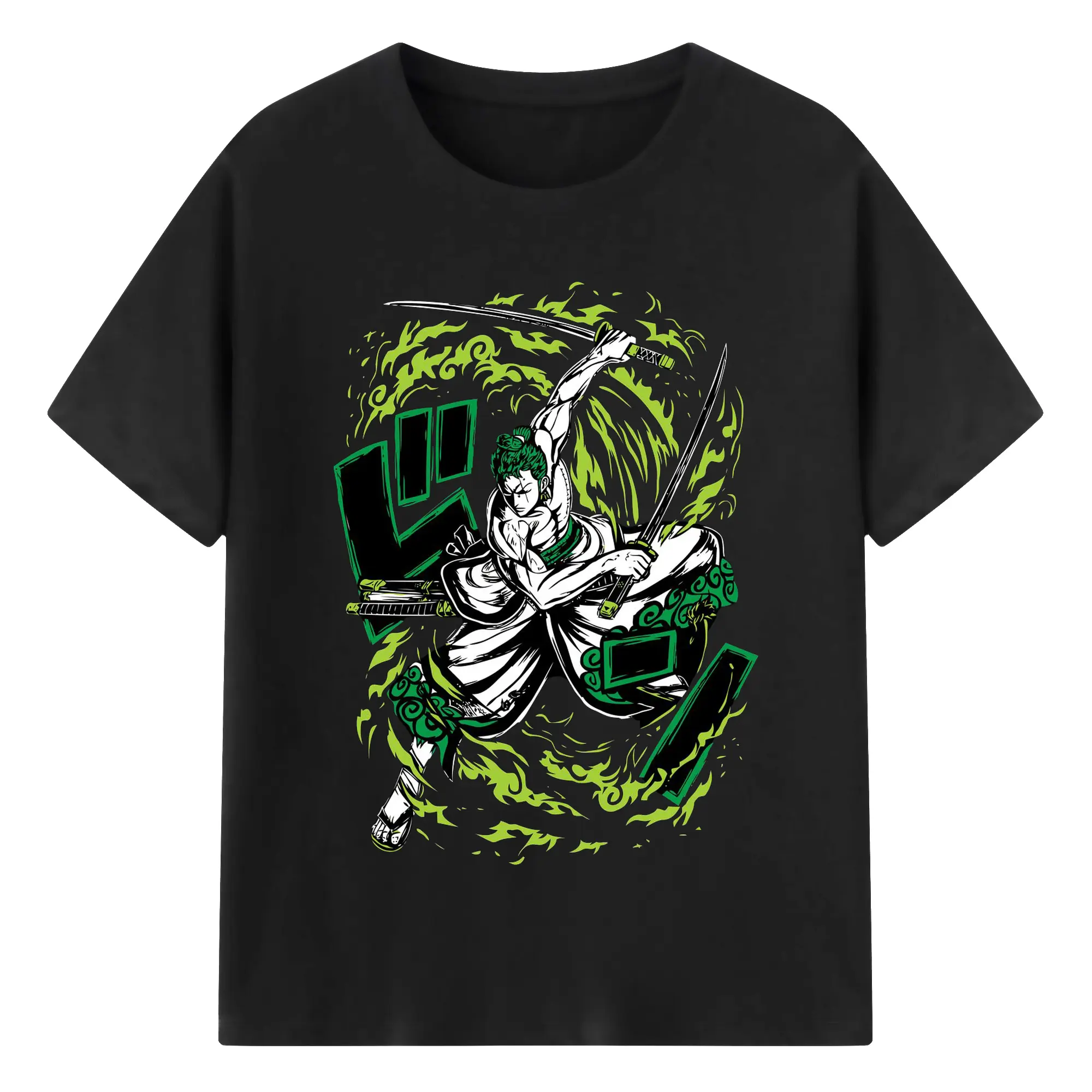 ワンピースロロノア・ゾロ - 綿100% 半袖Tシャツ ・ フロントプリント ・ 快適 通気性 ・ 日常使い 散歩 スポーツ用
