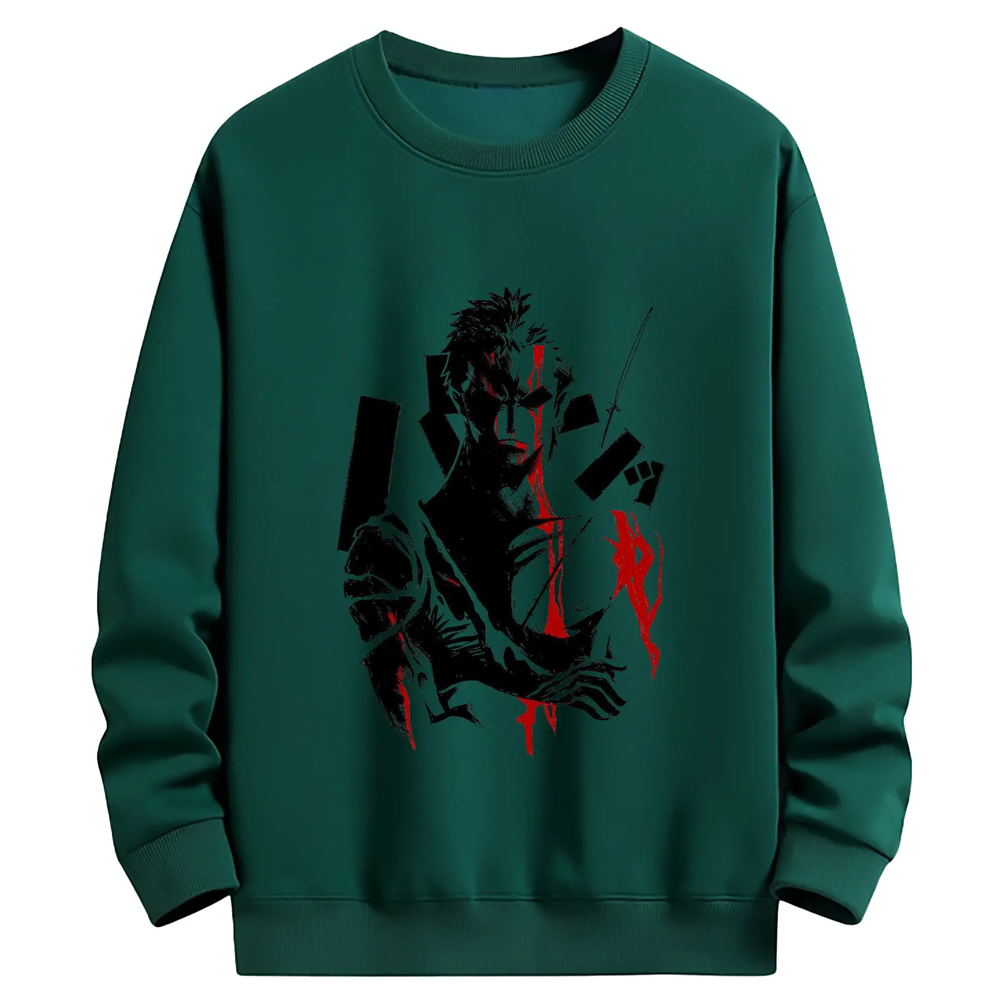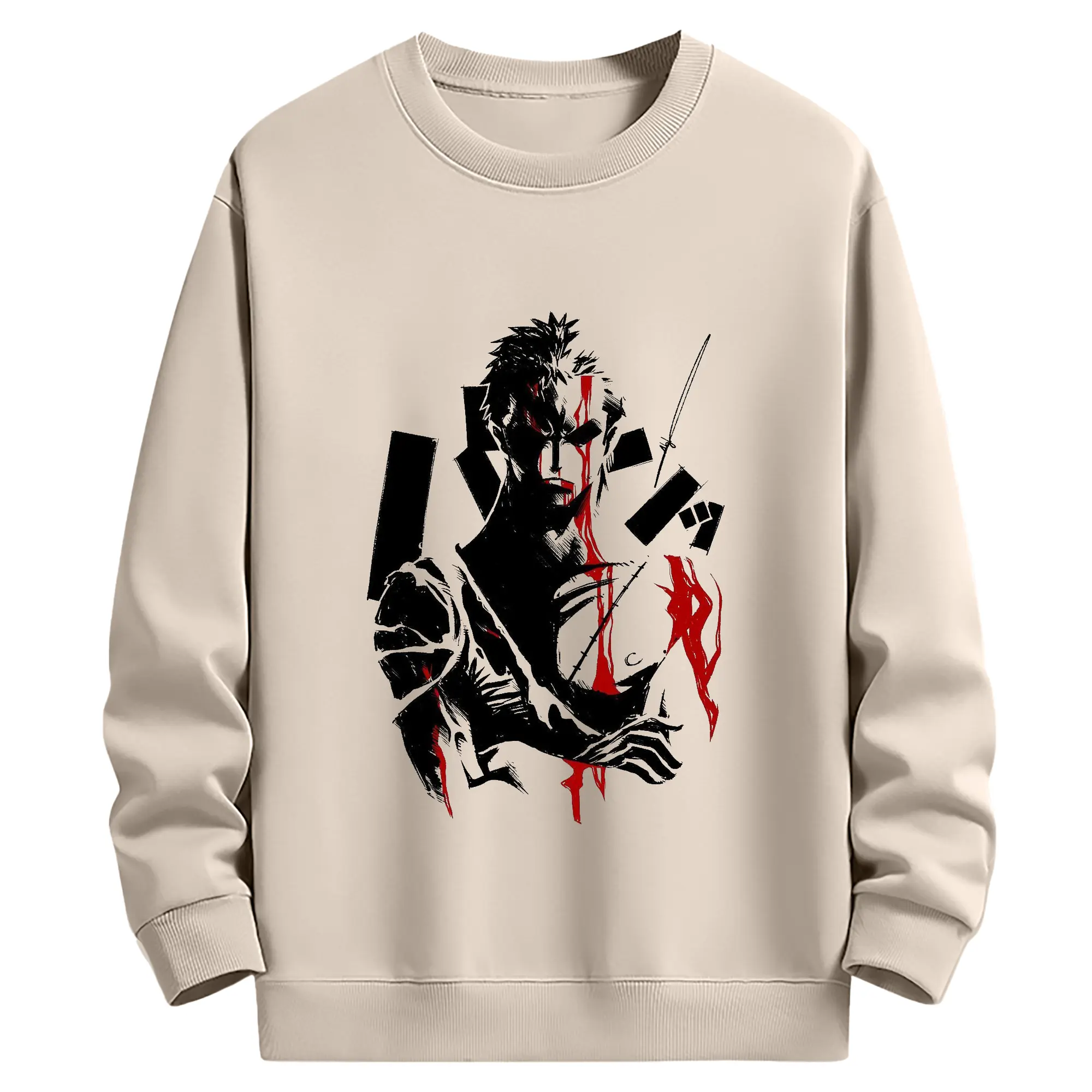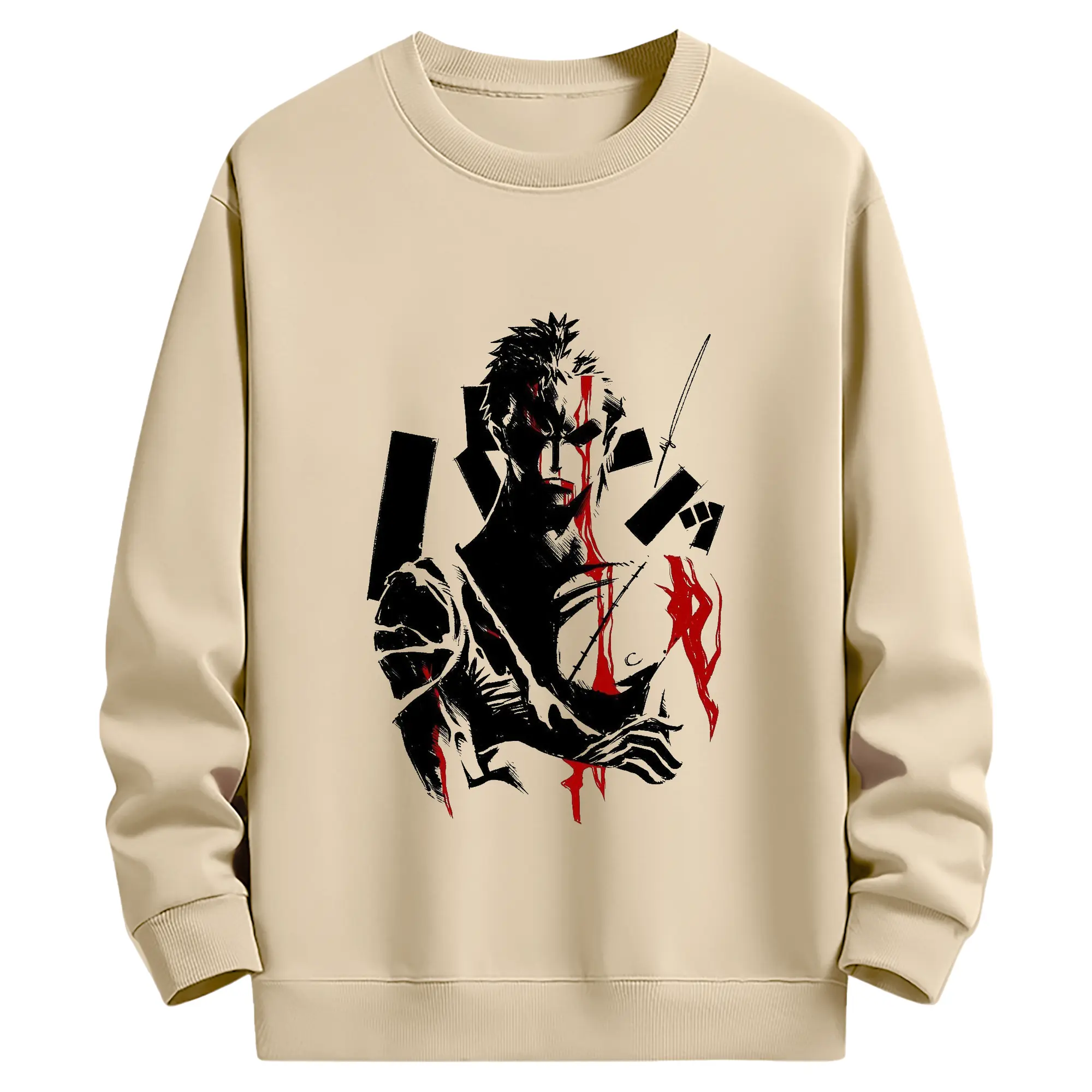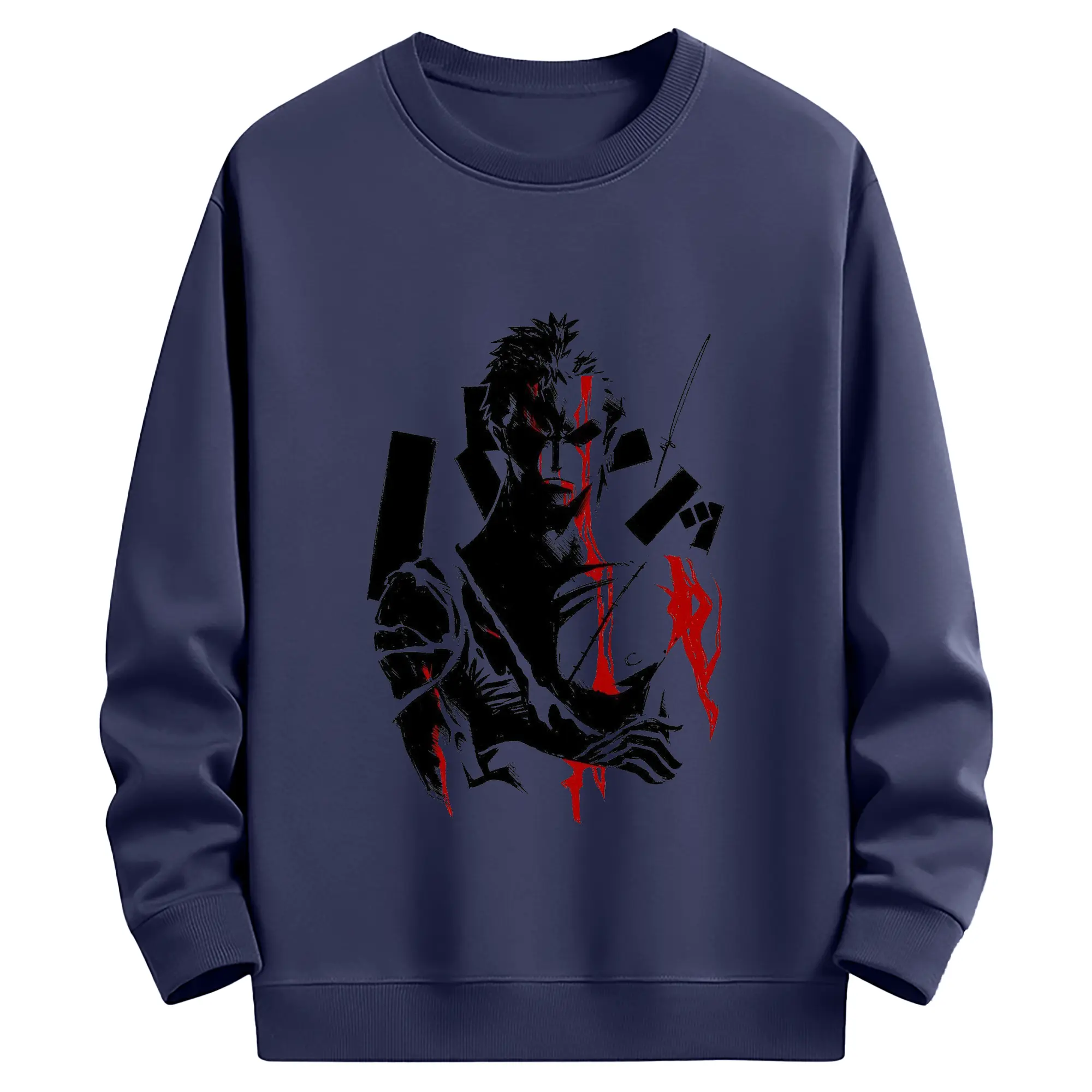 ワンピースロロノア・ゾロ - 高品質 クルーネック スウェット ・ コットン59% ポリエステル41% ・ ユニセックス 長袖 トレーナー ・ カジュアル デイリー スポーツ 散歩用