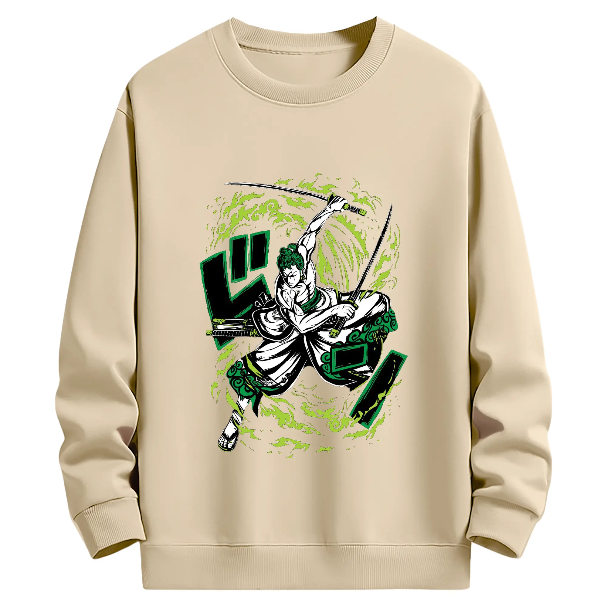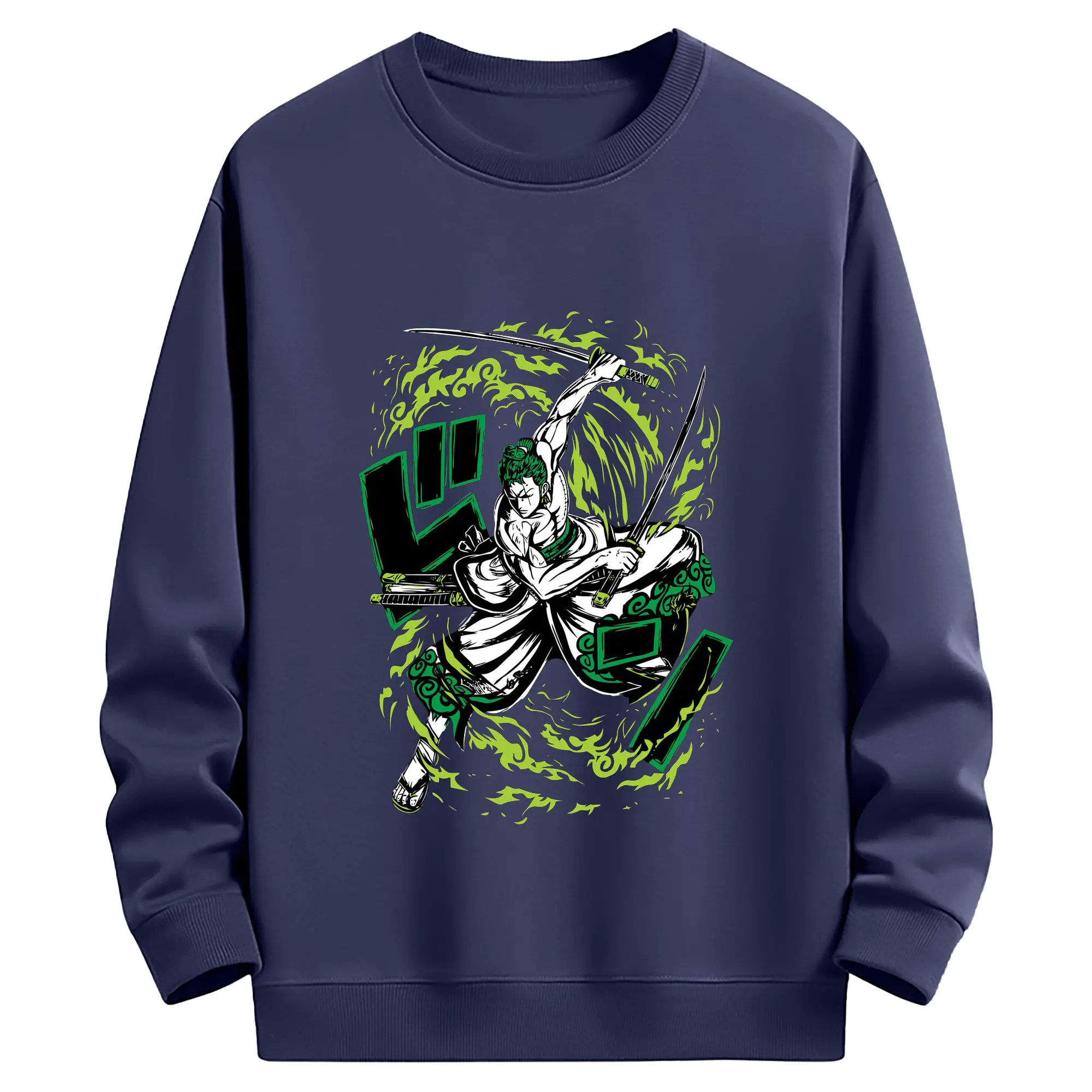 ワンピースロロノア・ゾロ - 高品質 クルーネック スウェット ・ コットン59% ポリエステル41% ・ ユニセックス 長袖 トレーナー ・ カジュアル デイリー スポーツ 散歩用