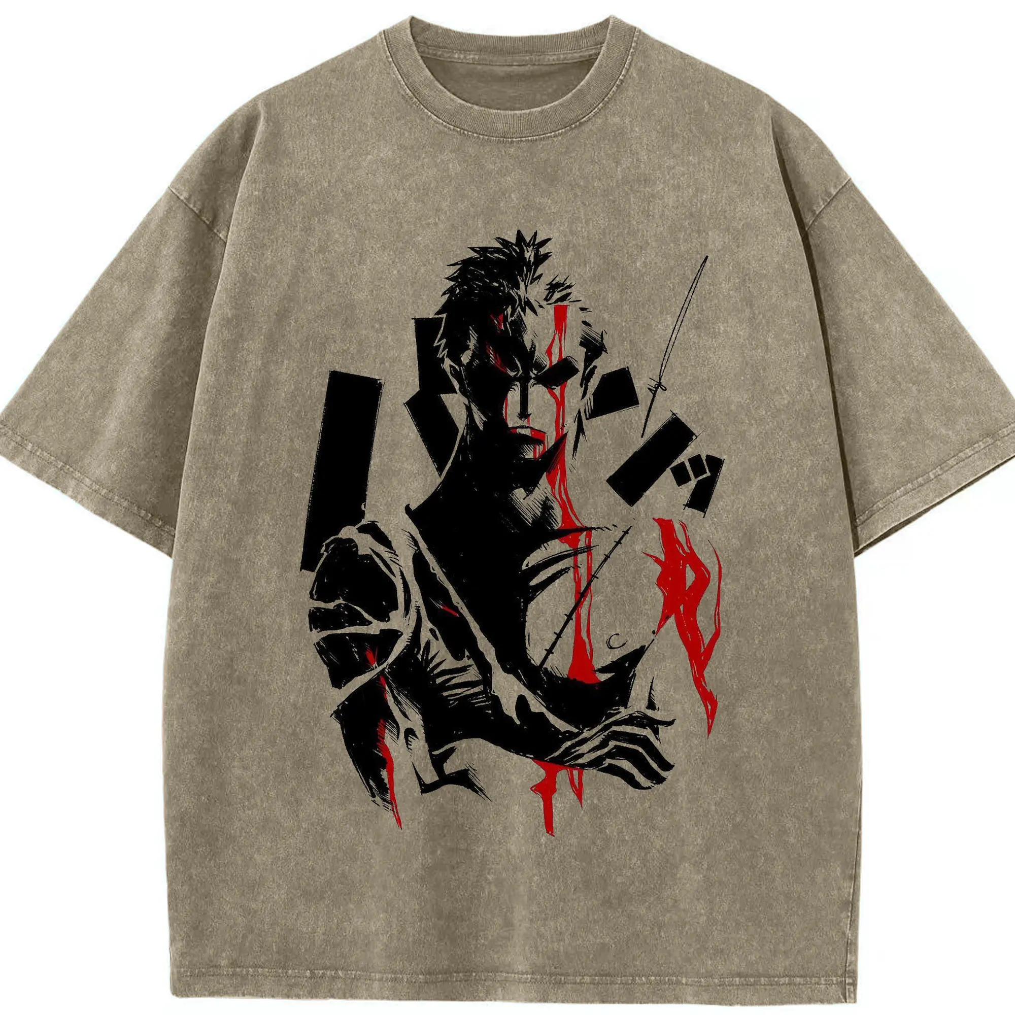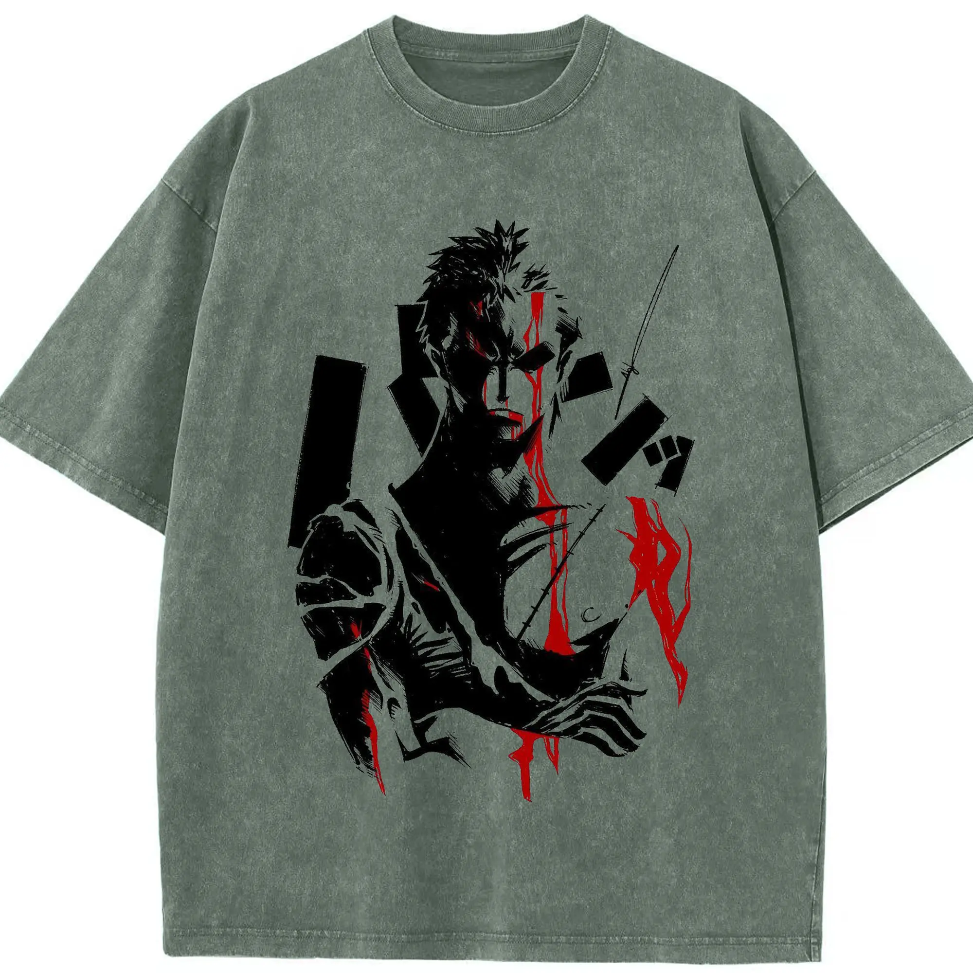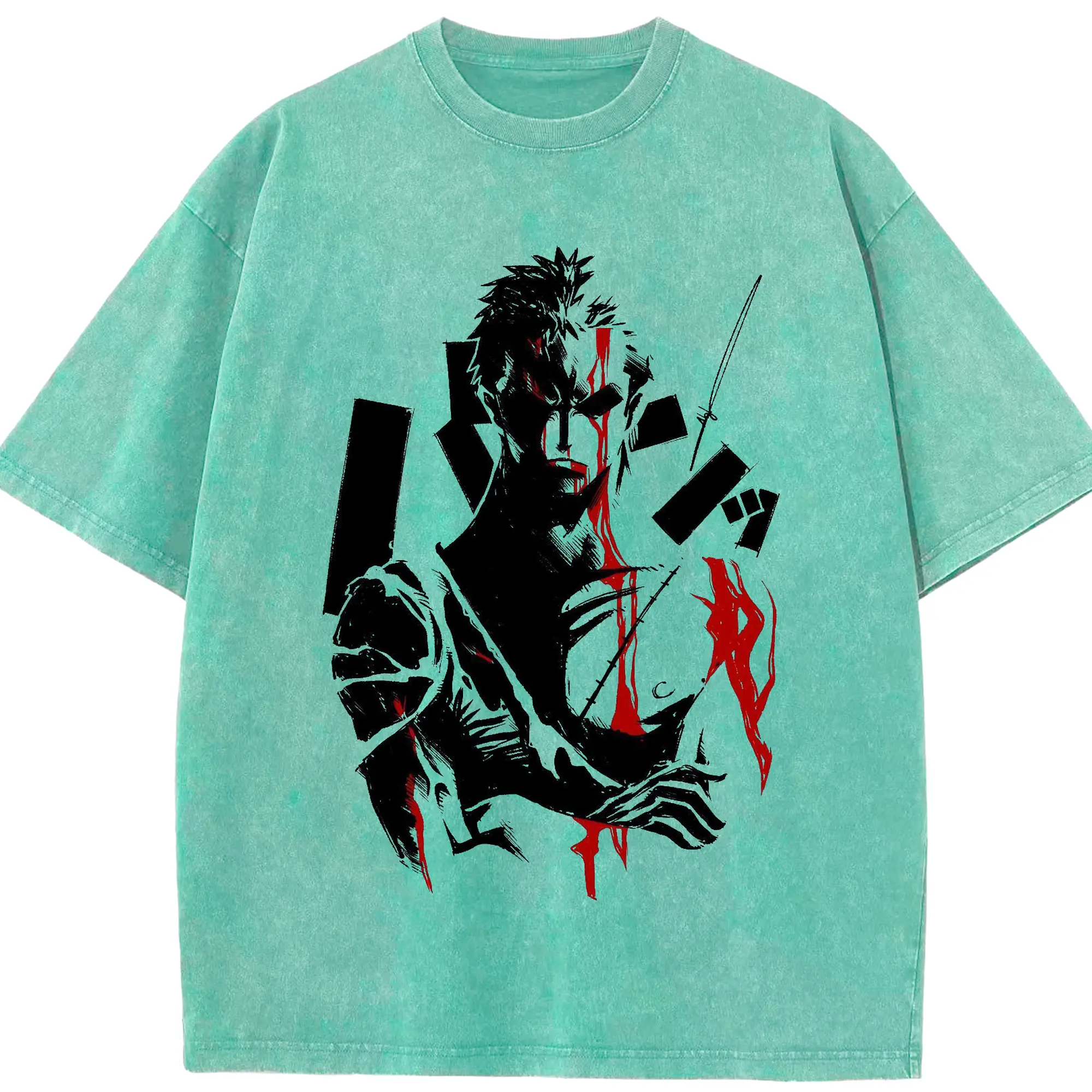 ワンピースロロノア・ゾロ - 綿100% ヴィンテージ風 半袖Tシャツ ・ フロントプリント ・ 柔らか肌触り ・ 通気性 快適 ・ スポーツ カジュアル 外出用