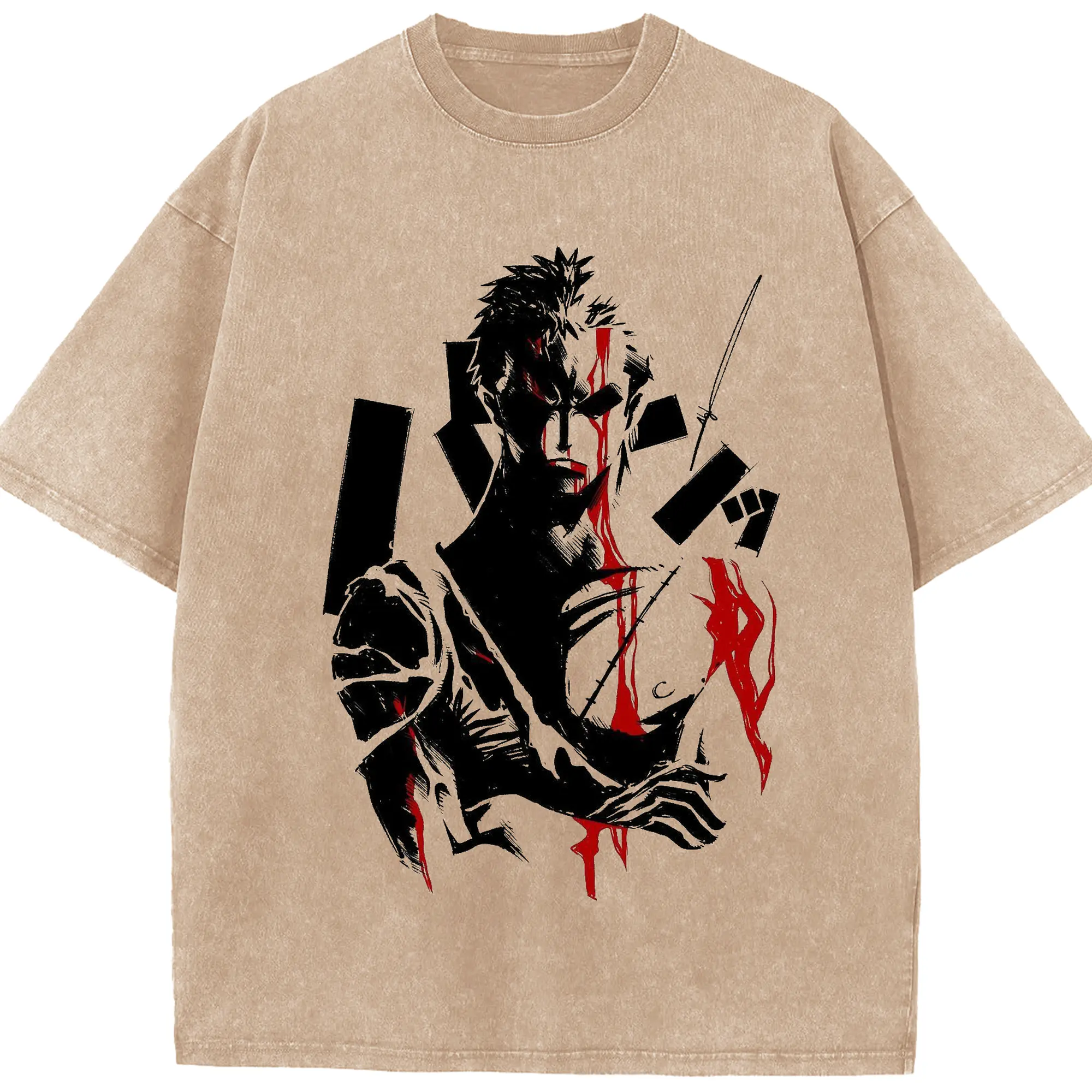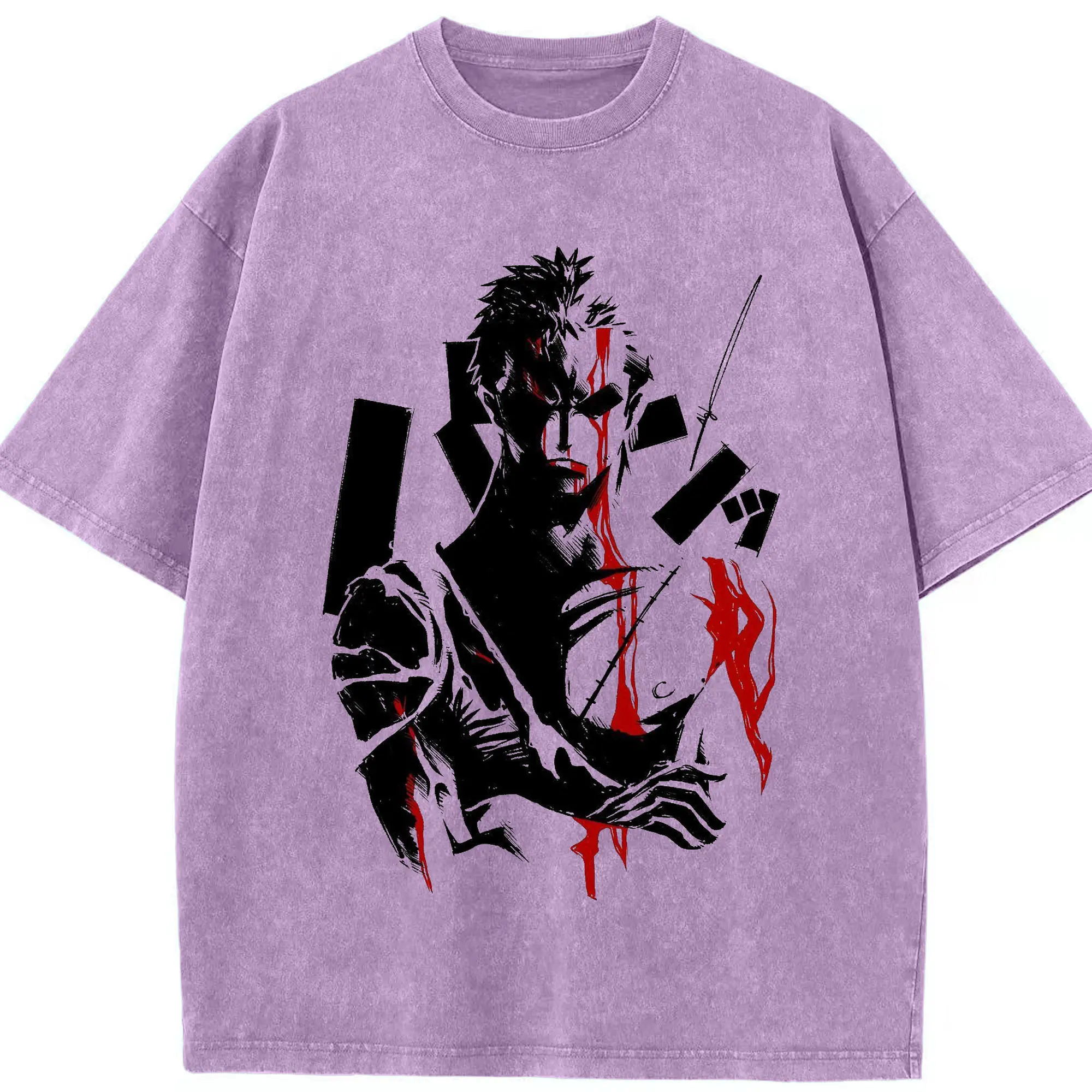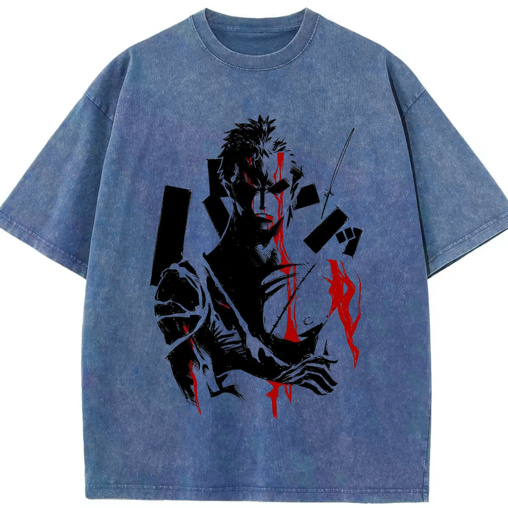 ブリーチ デフォルトデフォルト 更木剣八 - 綿100% ヴィンテージ風 半袖Tシャツ ・ フロントプリント ・ 柔らか肌触り ・ 通気性 快適 ・ スポーツ カジュアル 外出用