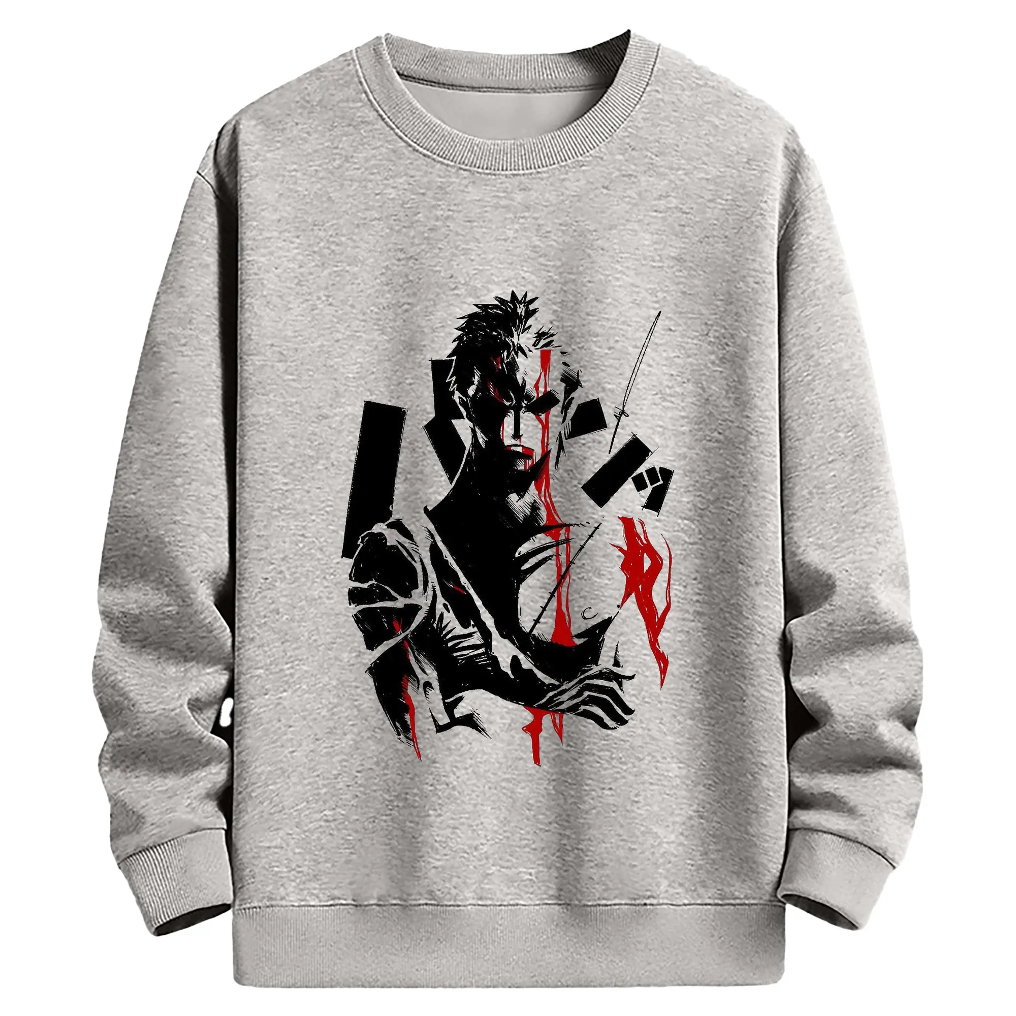 ワンピースロロノア・ゾロ - 高品質 クルーネック スウェット ・ コットン59% ポリエステル41% ・ ユニセックス 長袖 トレーナー ・ カジュアル デイリー スポーツ 散歩用