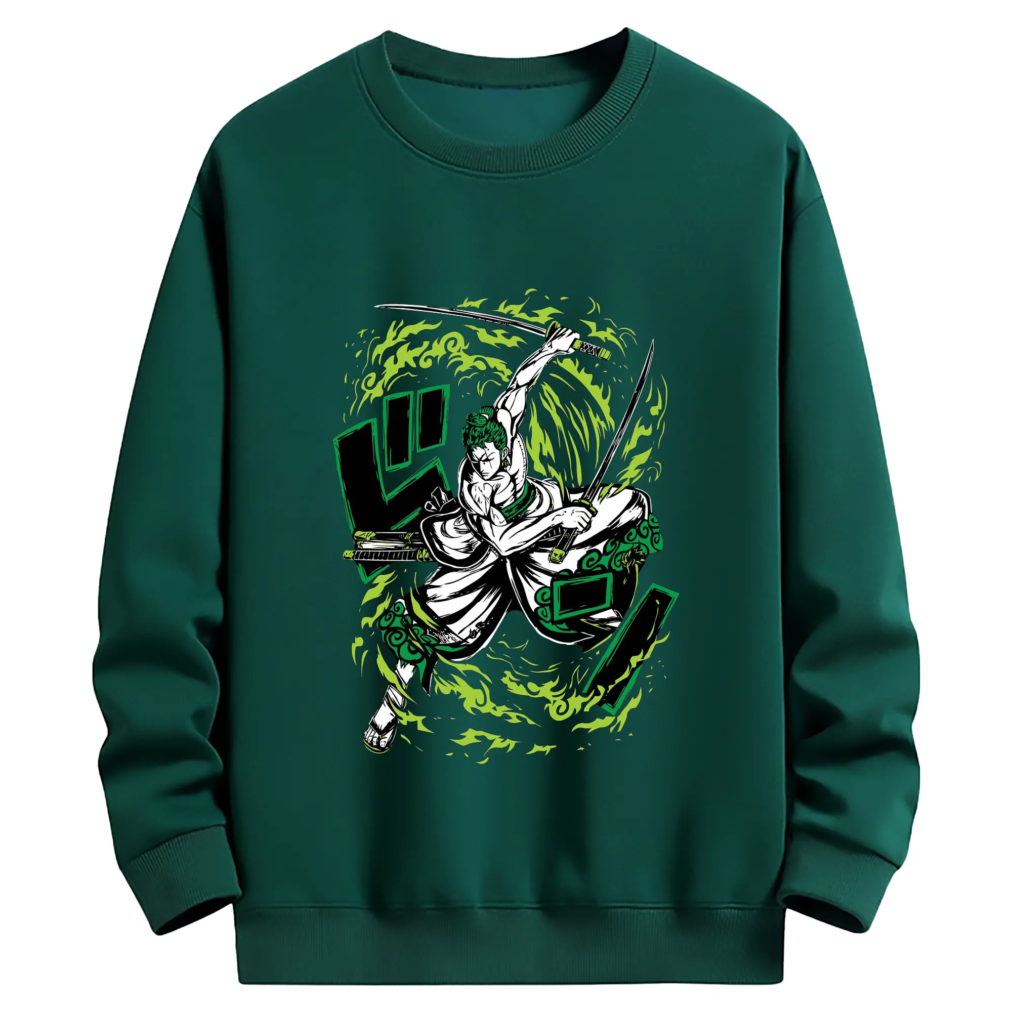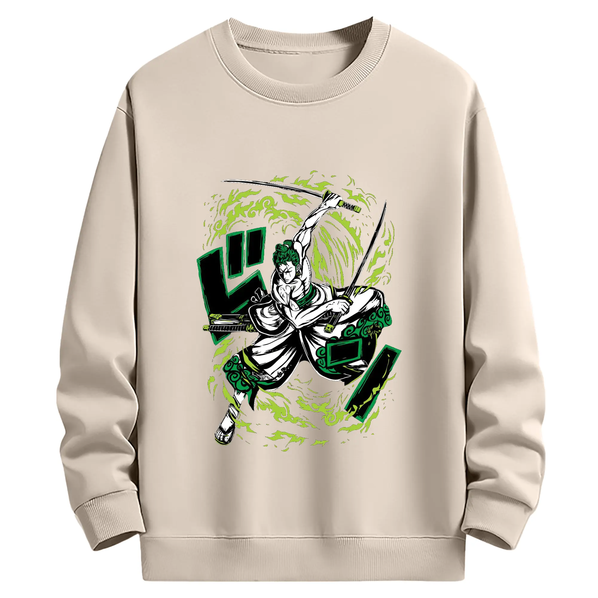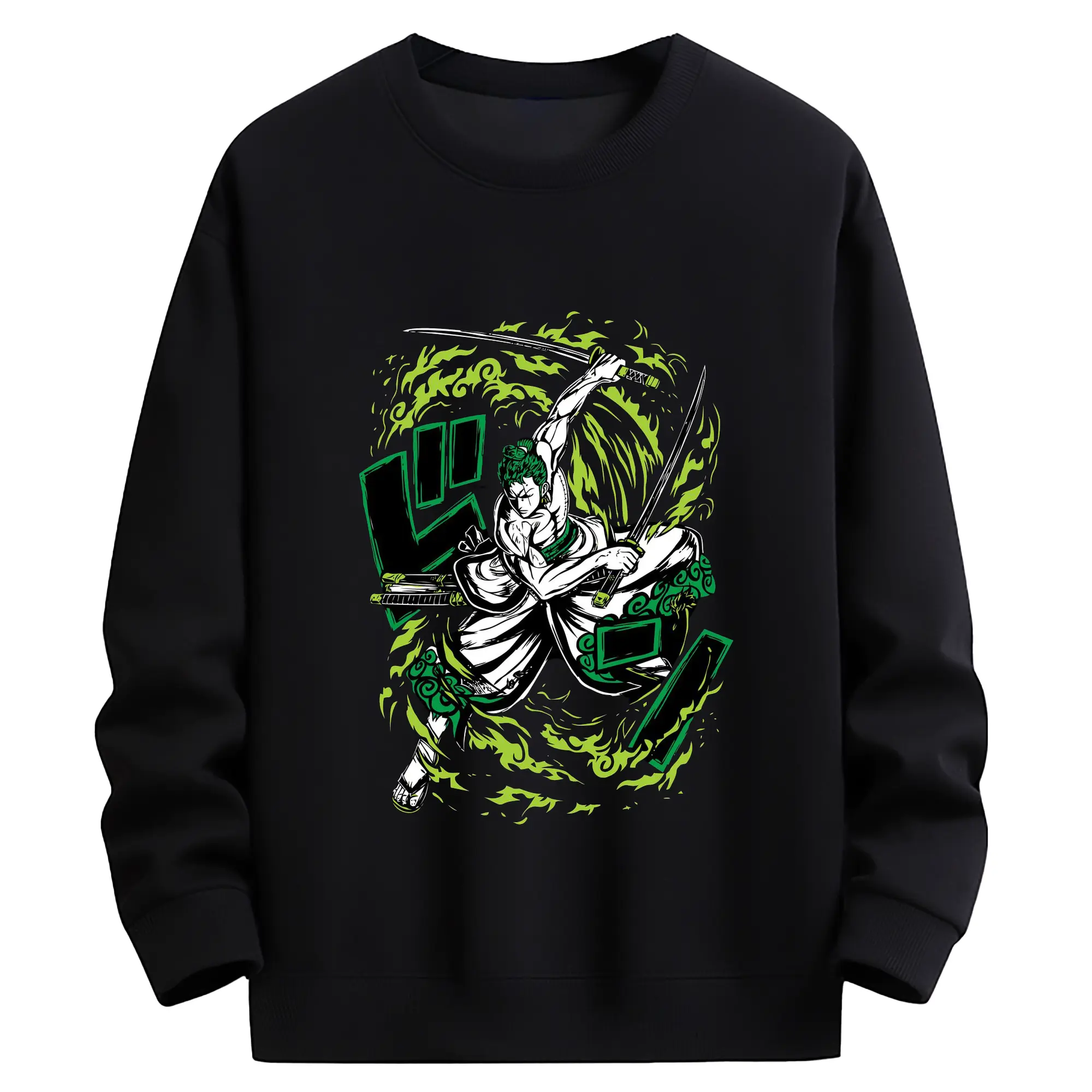 ワンピースロロノア・ゾロ - 高品質 クルーネック スウェット ・ コットン59% ポリエステル41% ・ ユニセックス 長袖 トレーナー ・ カジュアル デイリー スポーツ 散歩用