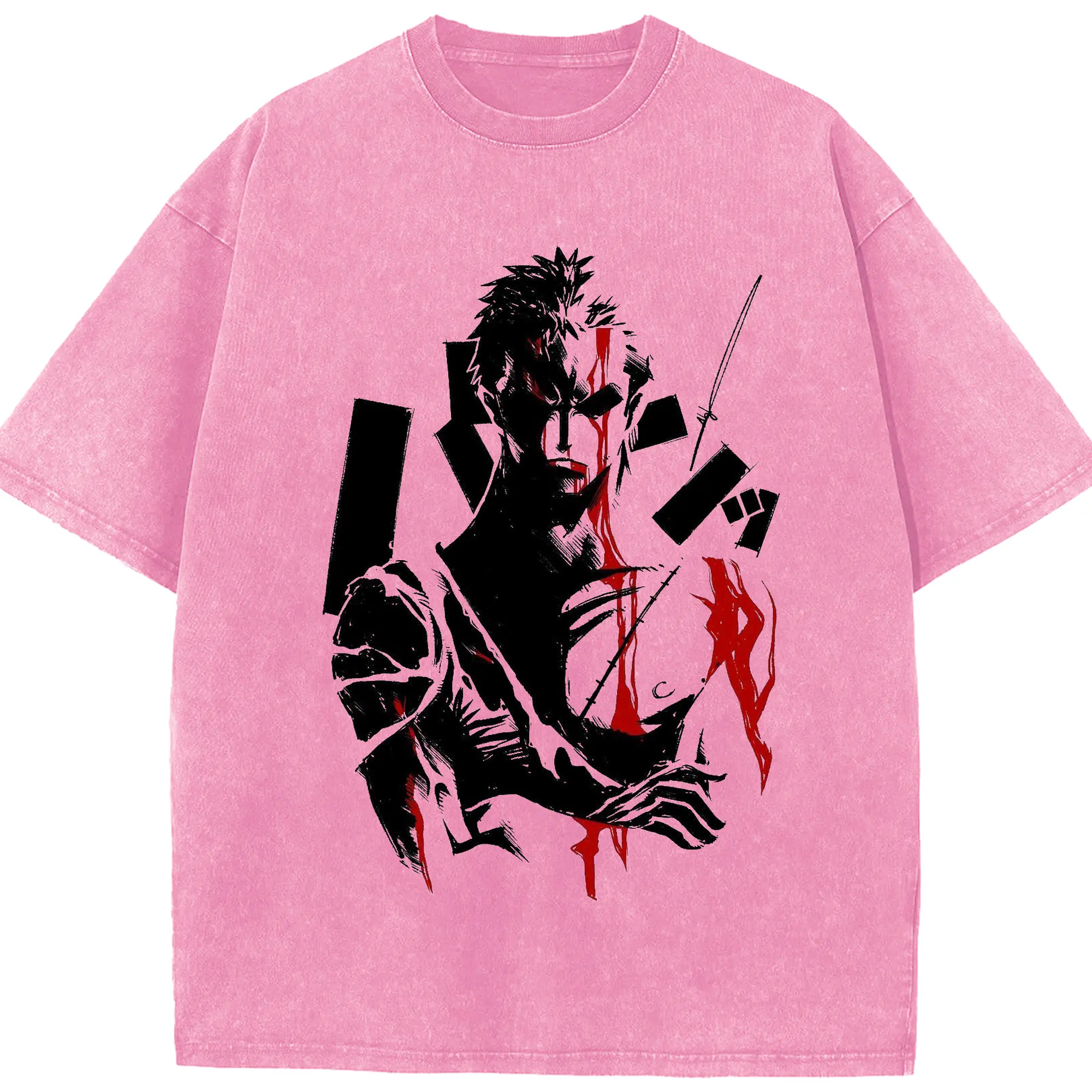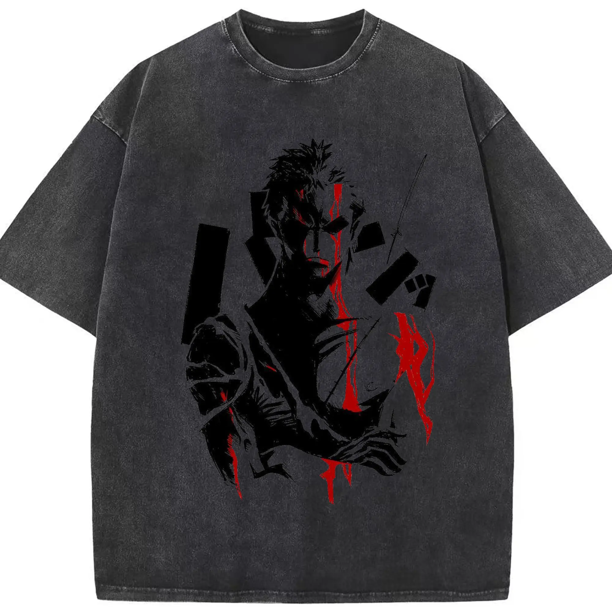 ワンピースロロノア・ゾロ - 綿100% ヴィンテージ風 半袖Tシャツ ・ フロントプリント ・ 柔らか肌触り ・ 通気性 快適 ・ スポーツ カジュアル 外出用