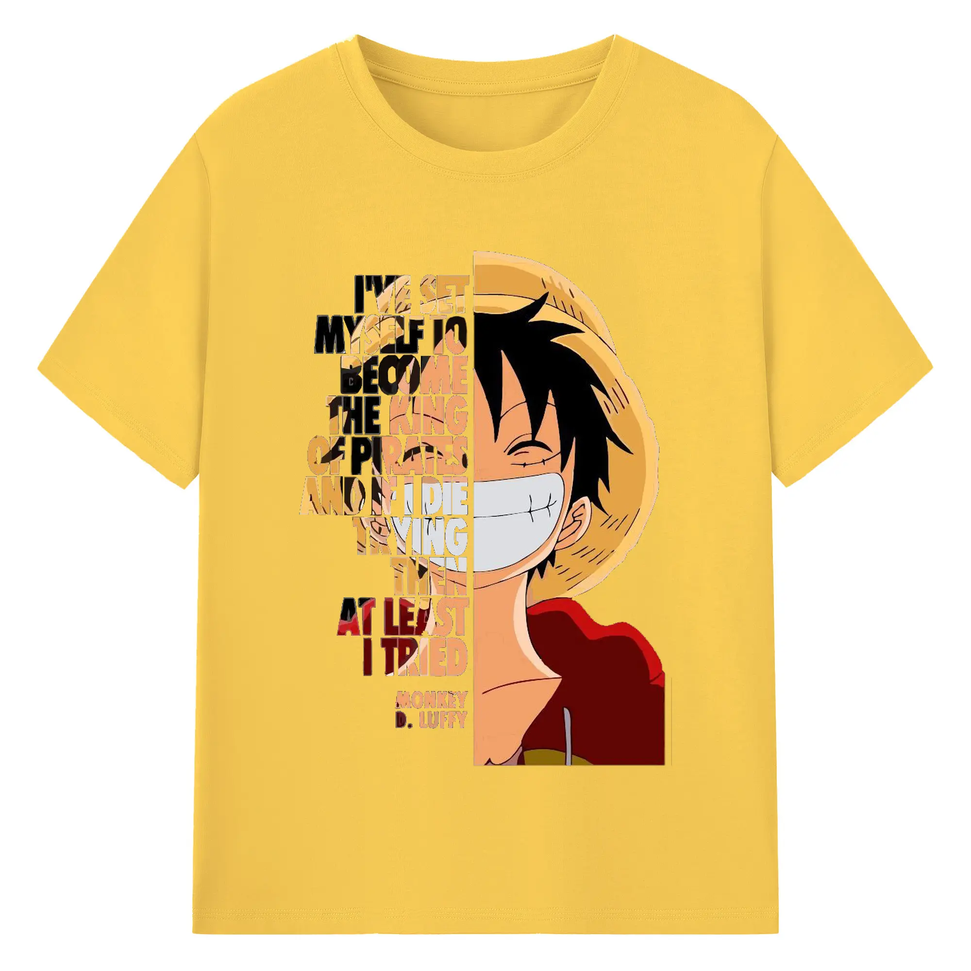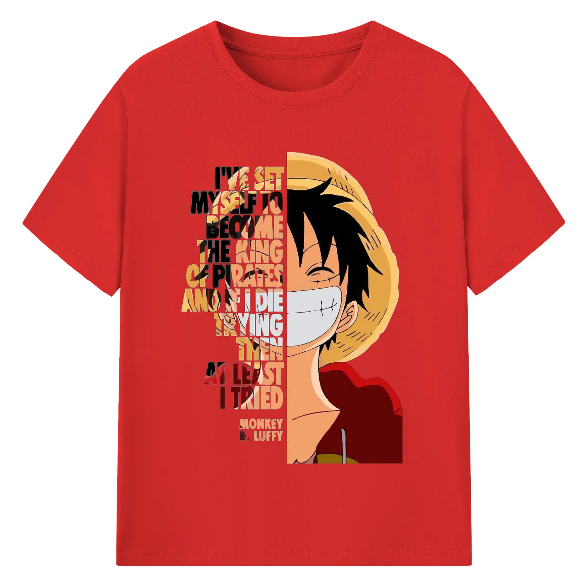 ワンピース モンキー・D・ルフィ - 綿100% 半袖Tシャツ ・ フロントプリント ・ 快適 通気性 ・ 日常使い 散歩 スポーツ用