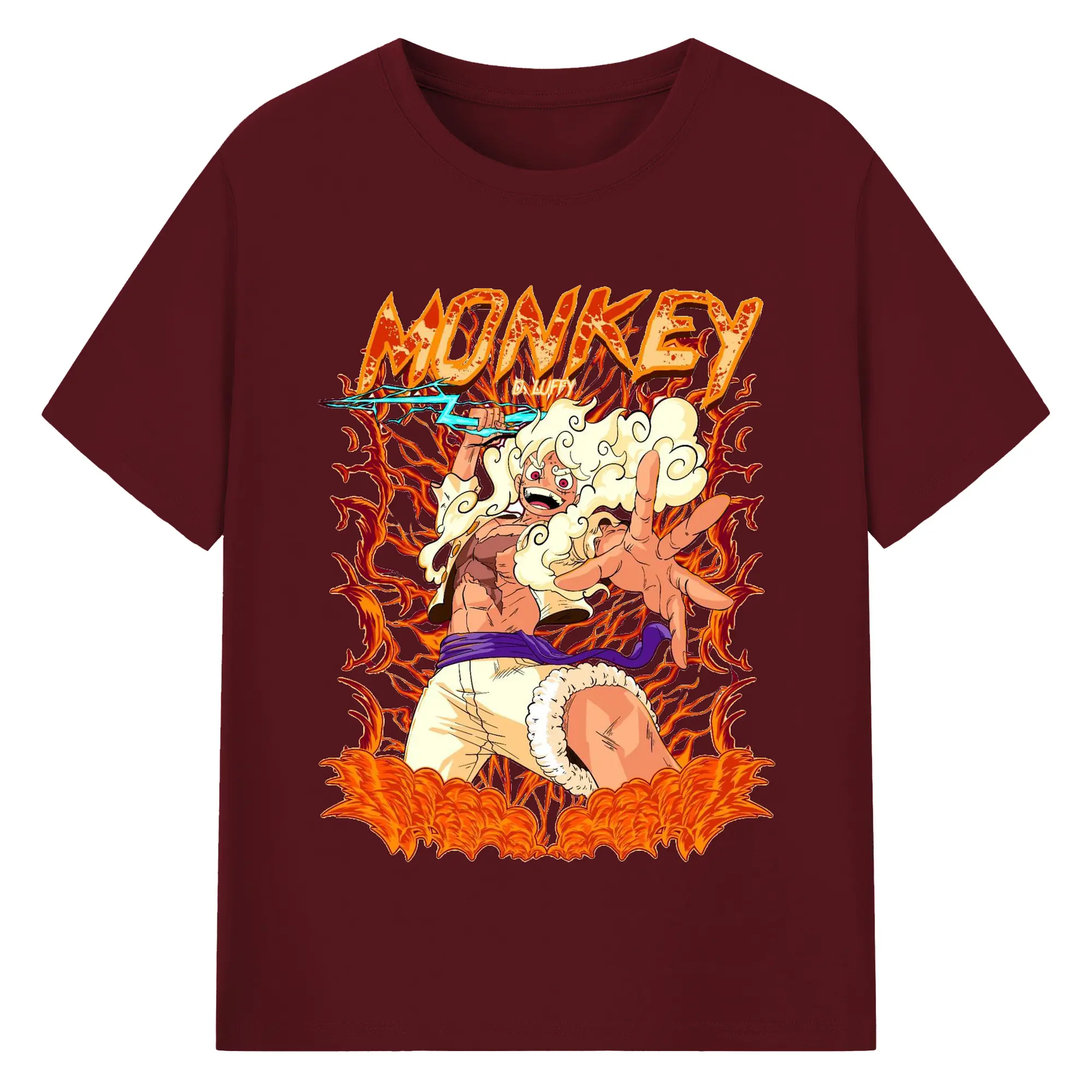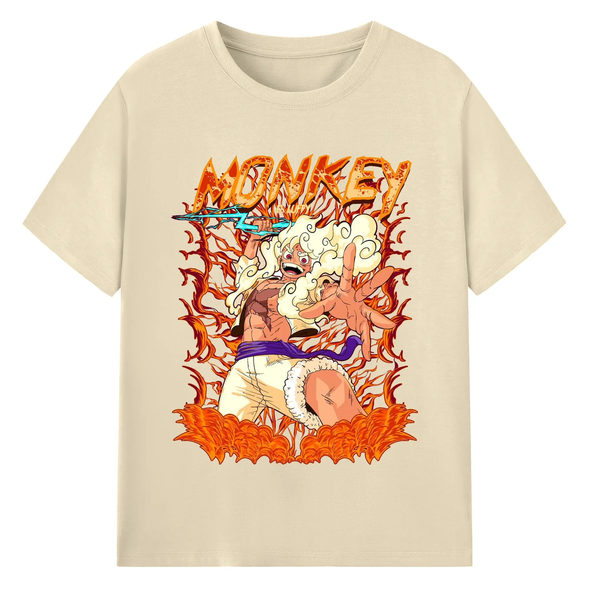 ワンピース モンキー・D・ルフィ - 綿100% 半袖Tシャツ ・ フロントプリント ・ 快適 通気性 ・ 日常使い 散歩 スポーツ用