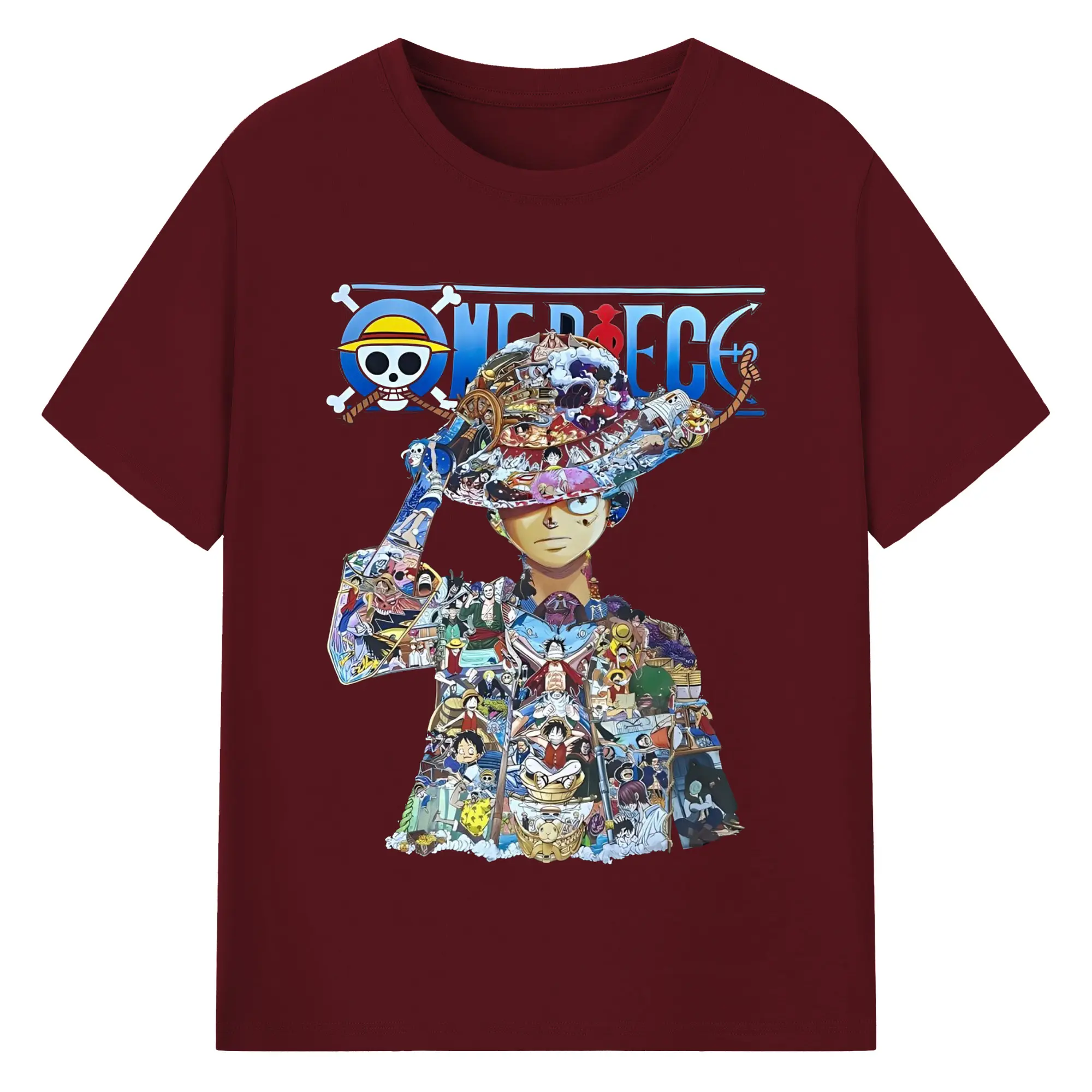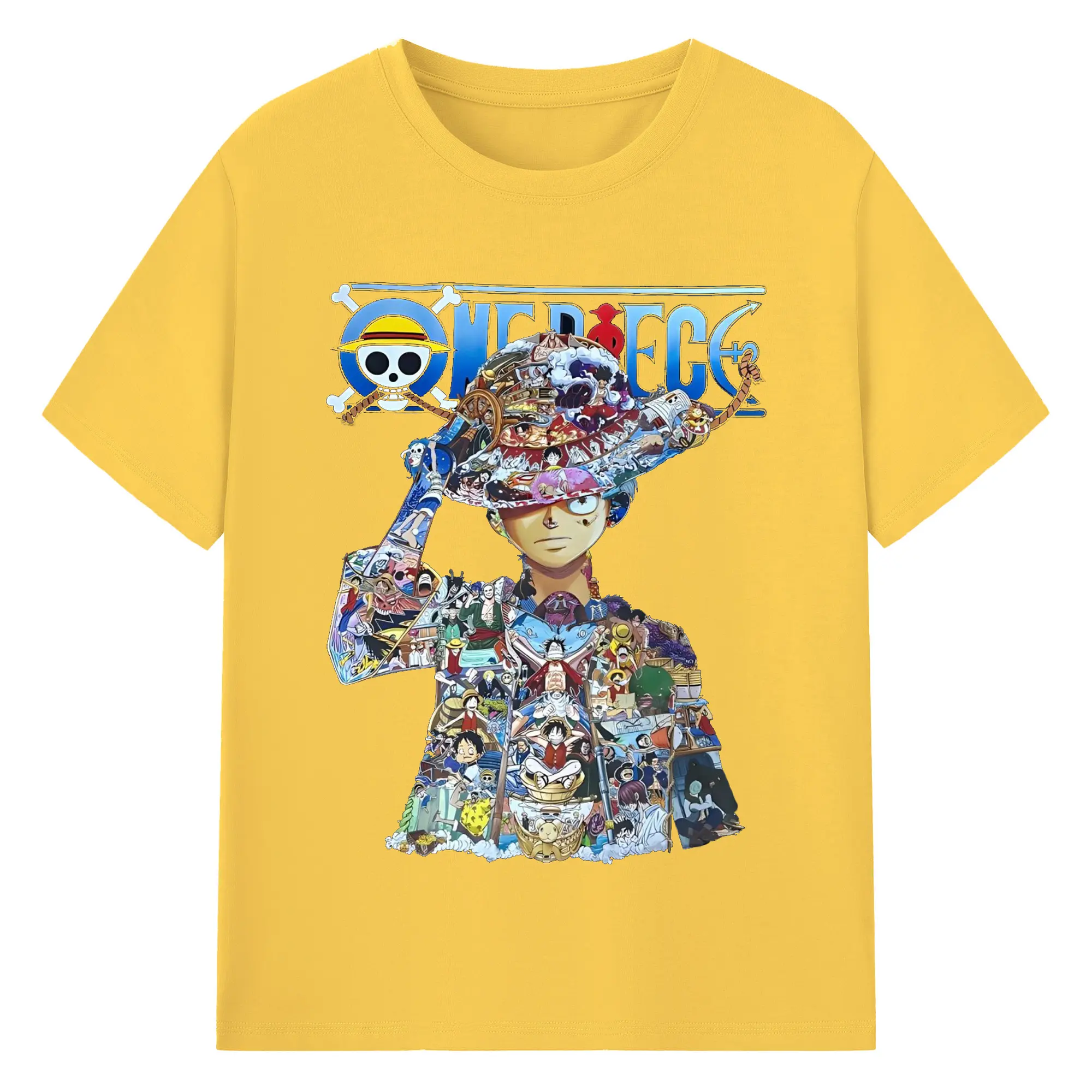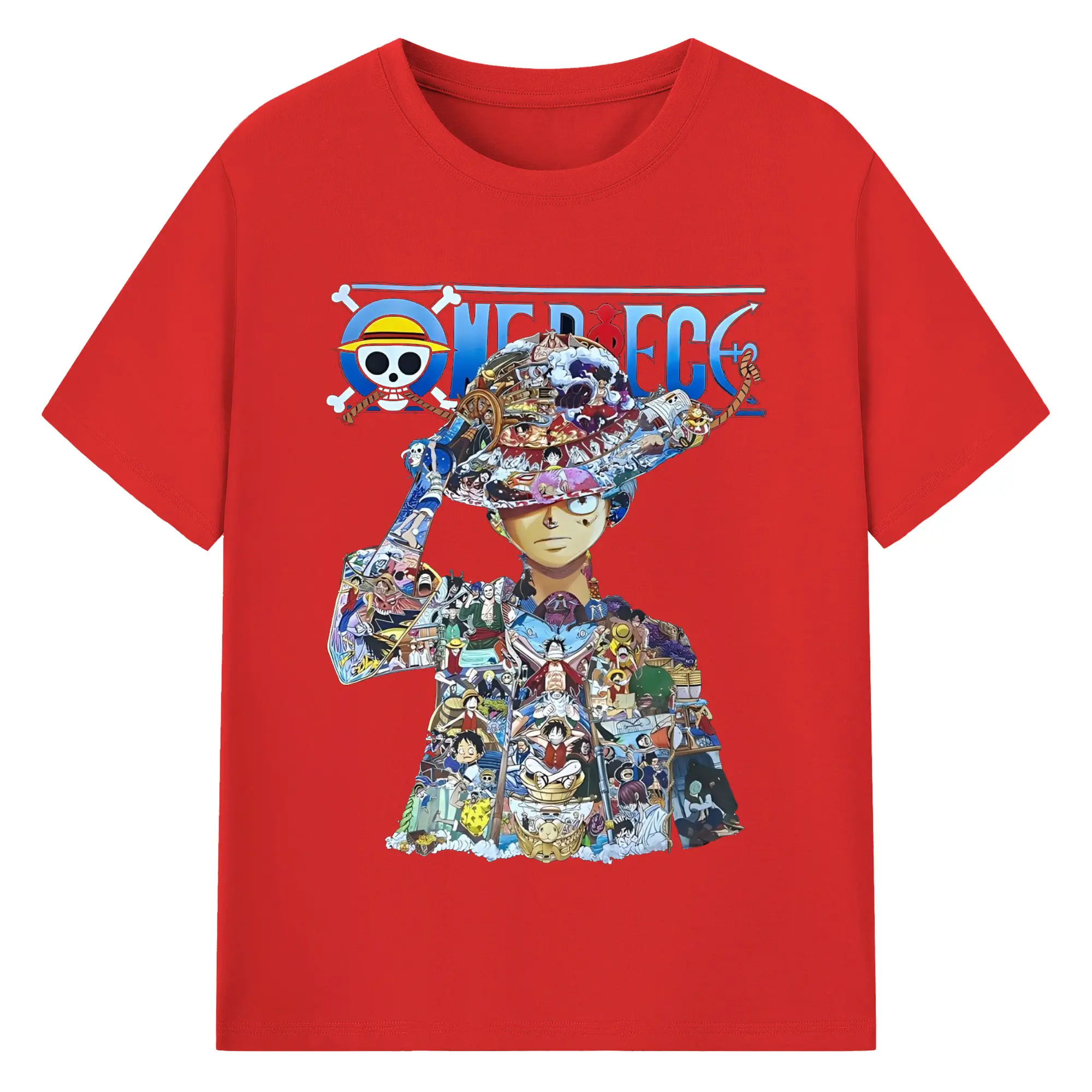 ワンピース モンキー・D・ルフィ - 綿100% 半袖Tシャツ ・ フロントプリント ・ 快適 通気性 ・ 日常使い 散歩 スポーツ用