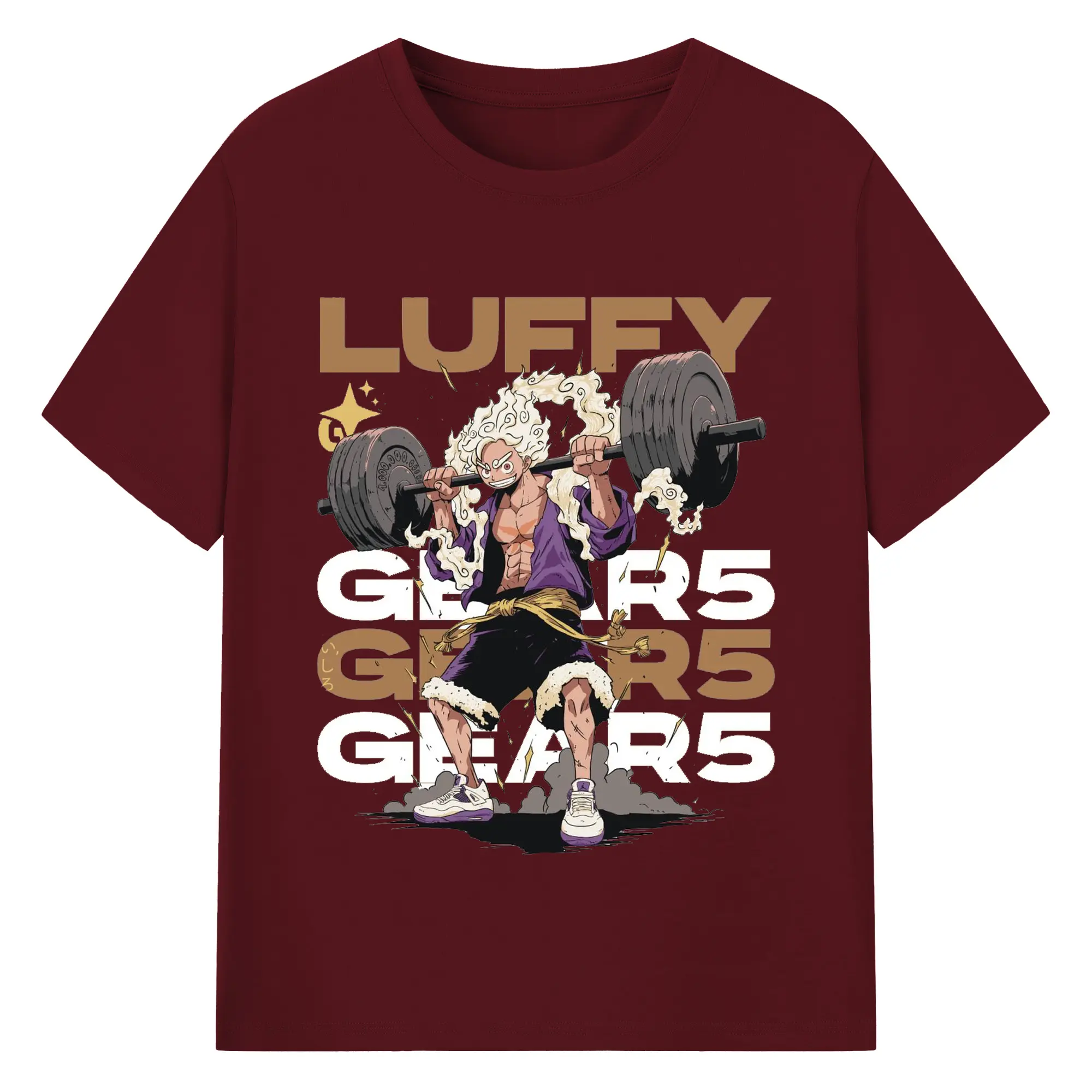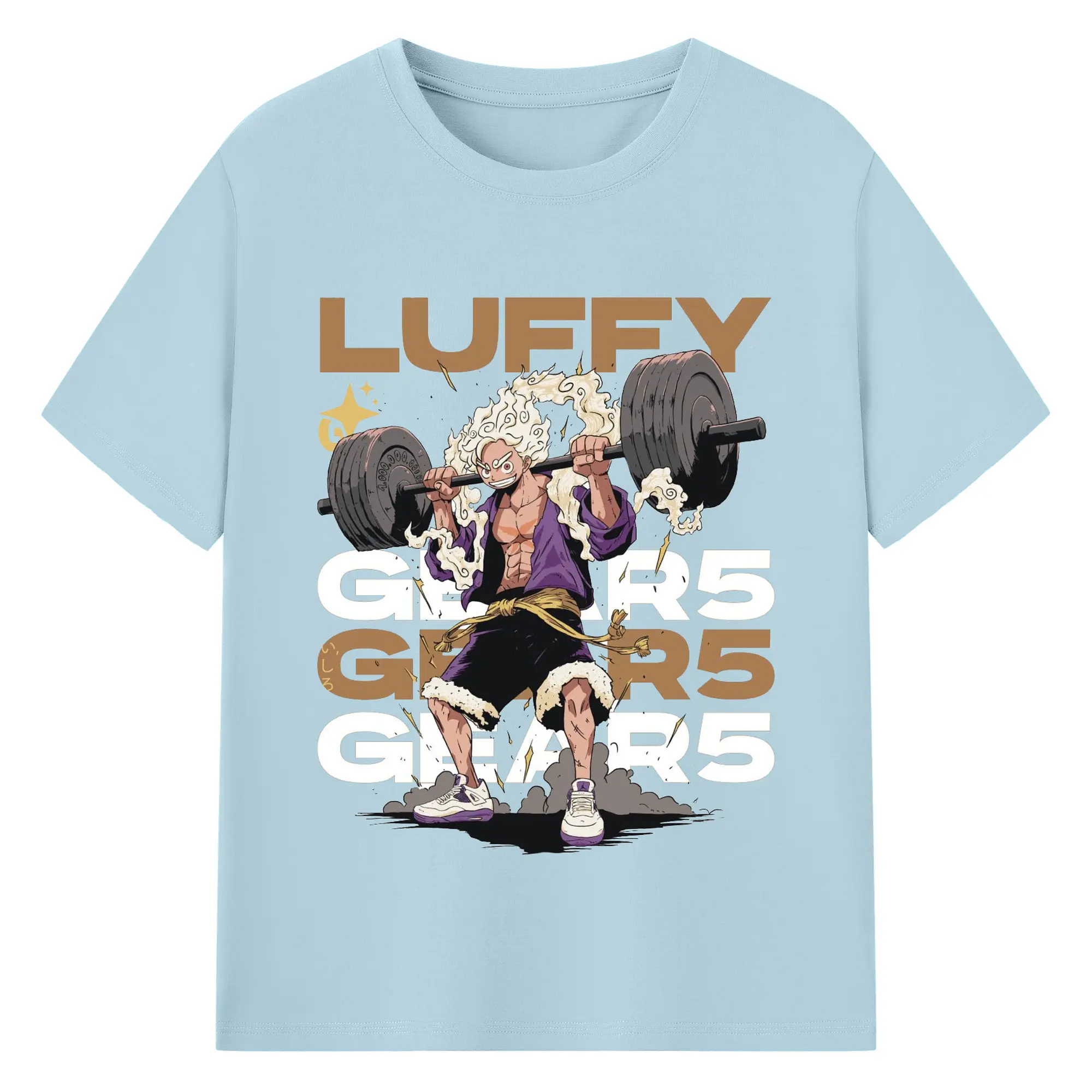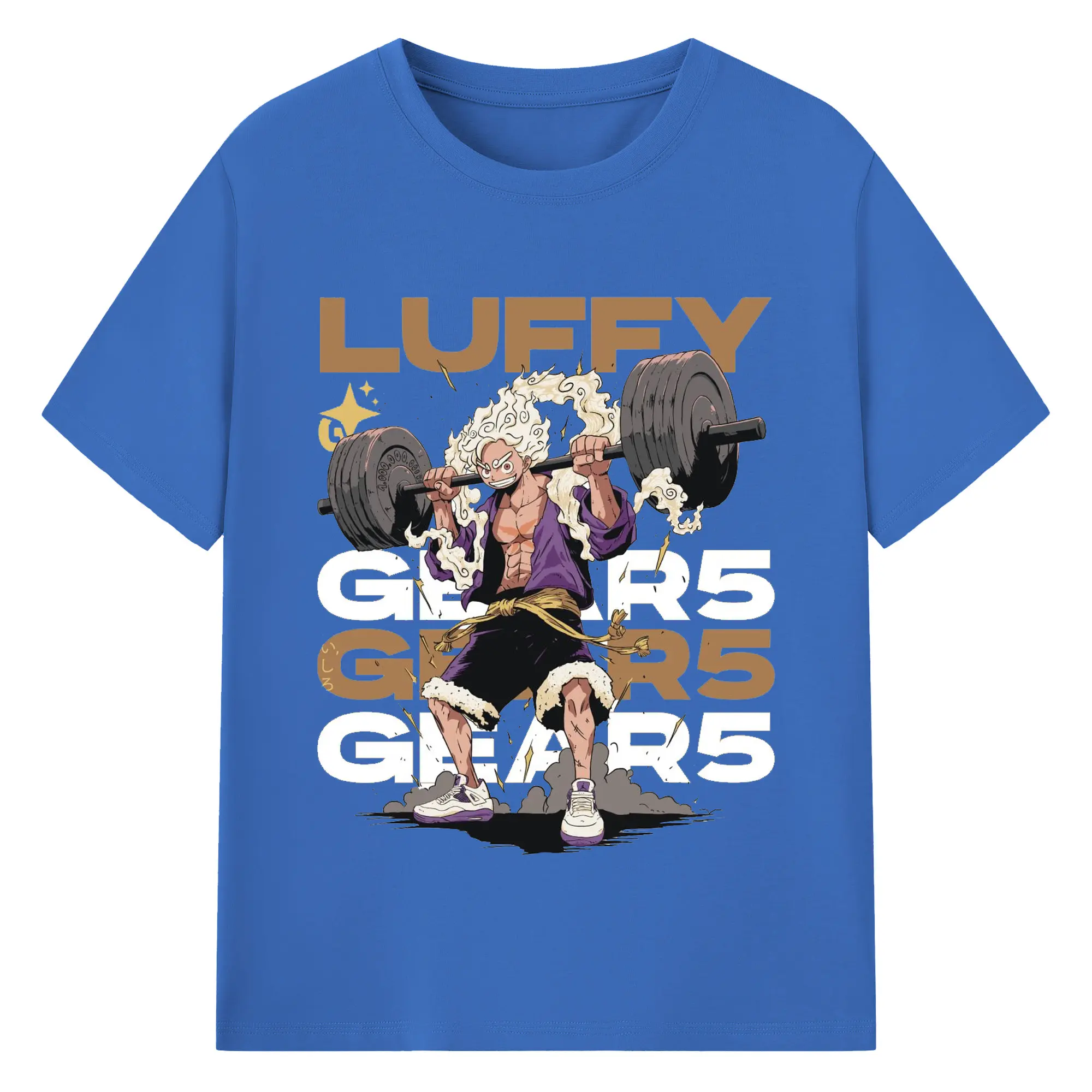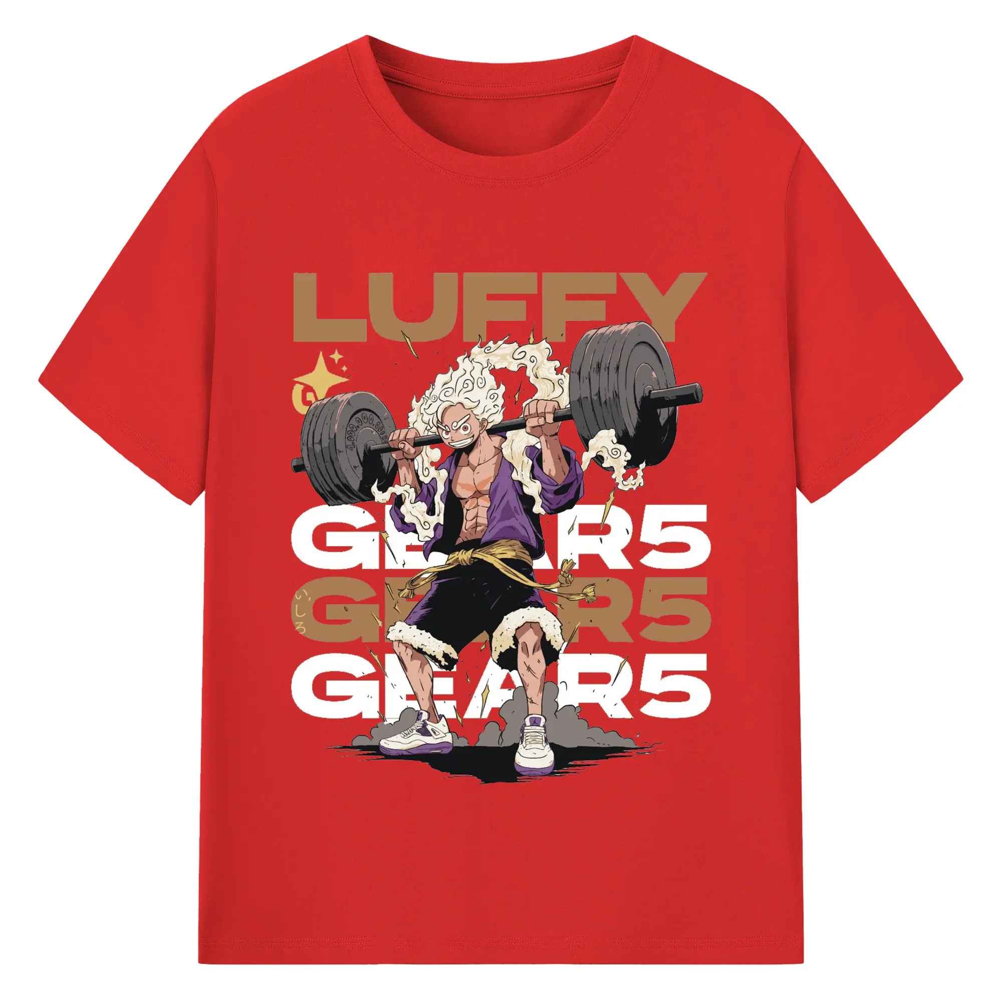 ワンピース モンキー・D・ルフィ GYMトレーニング限界 - 綿100% 半袖Tシャツ ・ フロントプリント ・ 快適 通気性 ・ 日常使い 散歩 スポーツ用