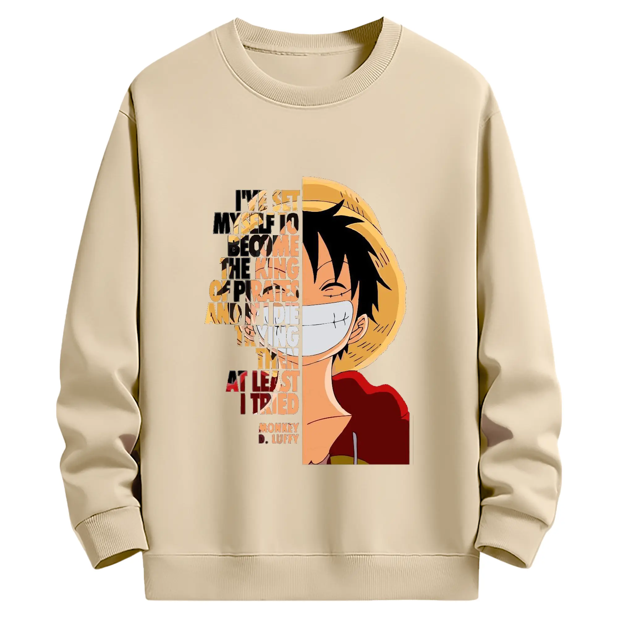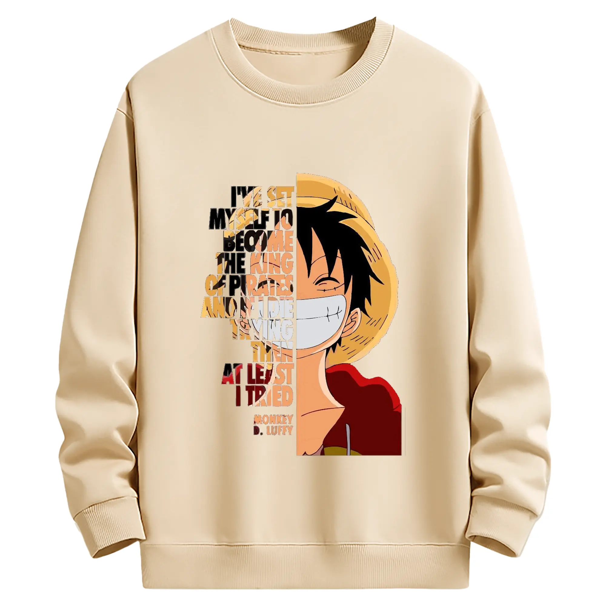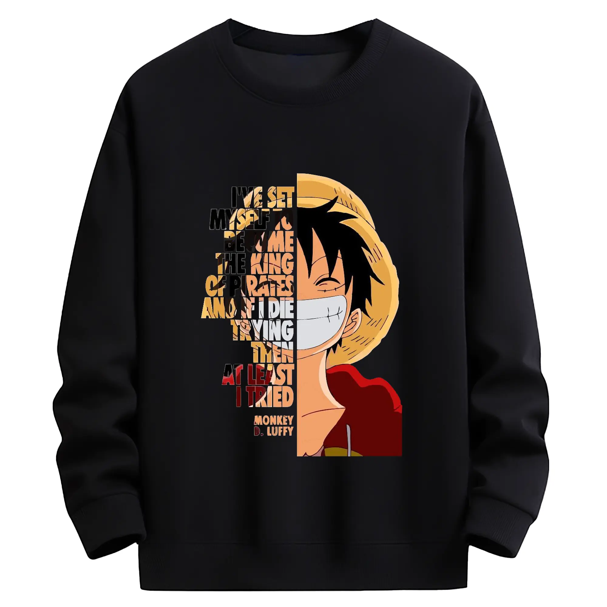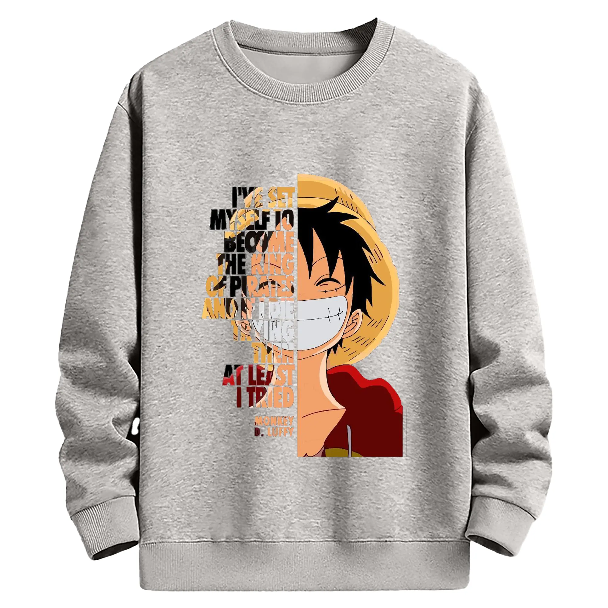 ワンピース モンキー・D・ルフィ - 高品質 クルーネック スウェット ・ コットン59% ポリエステル41% ・ ユニセックス 長袖 トレーナー ・ カジュアル デイリー スポーツ 散歩用