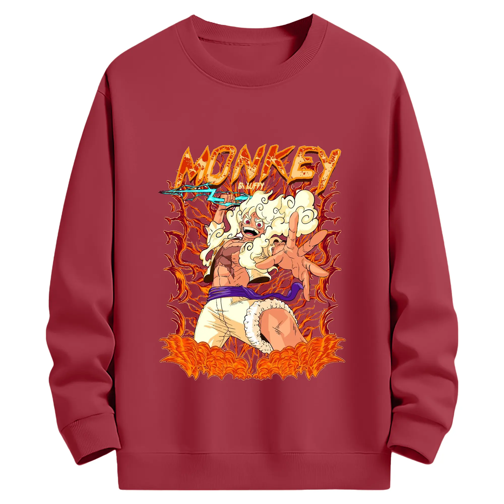 ワンピース モンキー・D・ルフィ - 高品質 クルーネック スウェット ・ コットン59% ポリエステル41% ・ ユニセックス 長袖 トレーナー ・ カジュアル デイリー スポーツ 散歩用