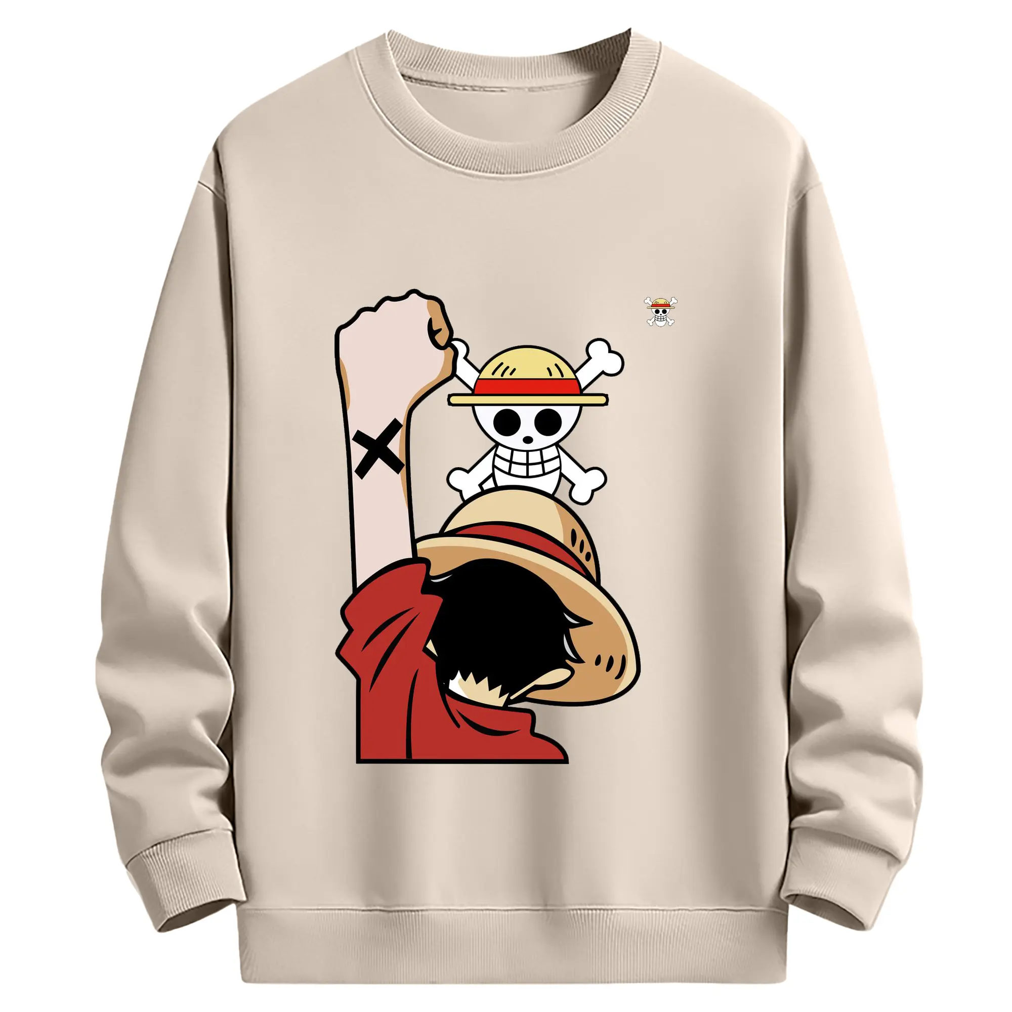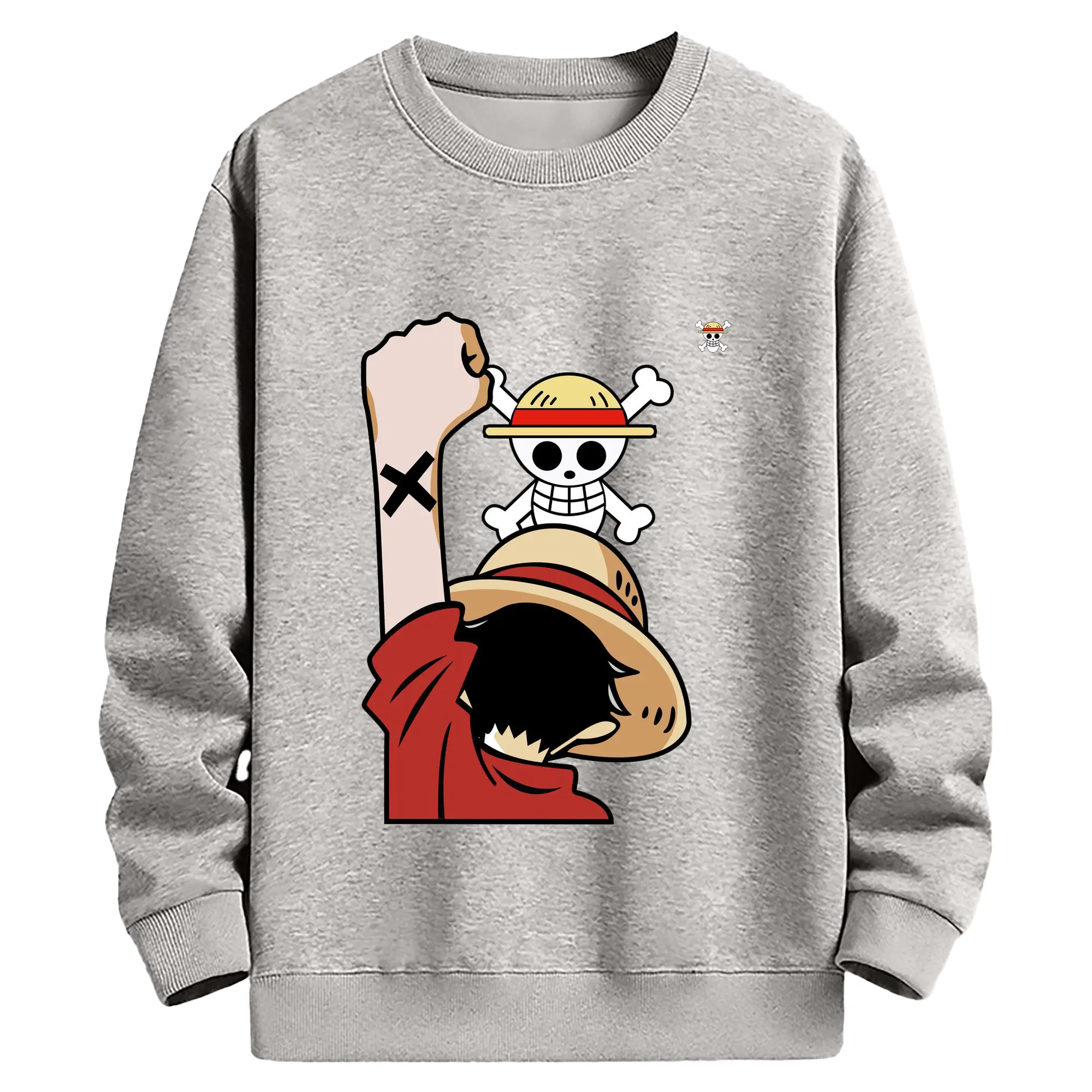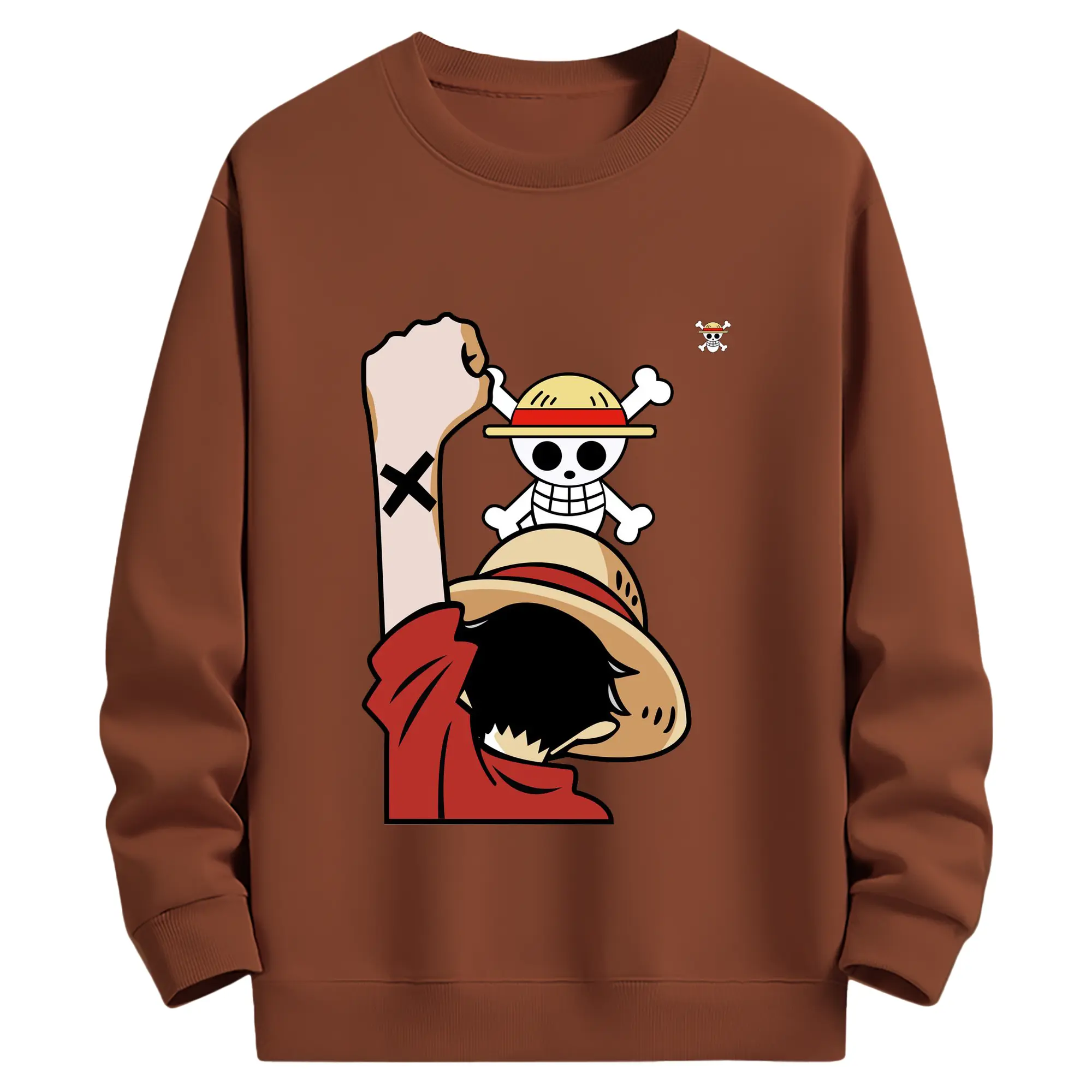 ワンピース モンキー・D・ルフィ - 高品質 クルーネック スウェット ・ コットン59% ポリエステル41% ・ ユニセックス 長袖 トレーナー ・ カジュアル デイリー スポーツ 散歩用