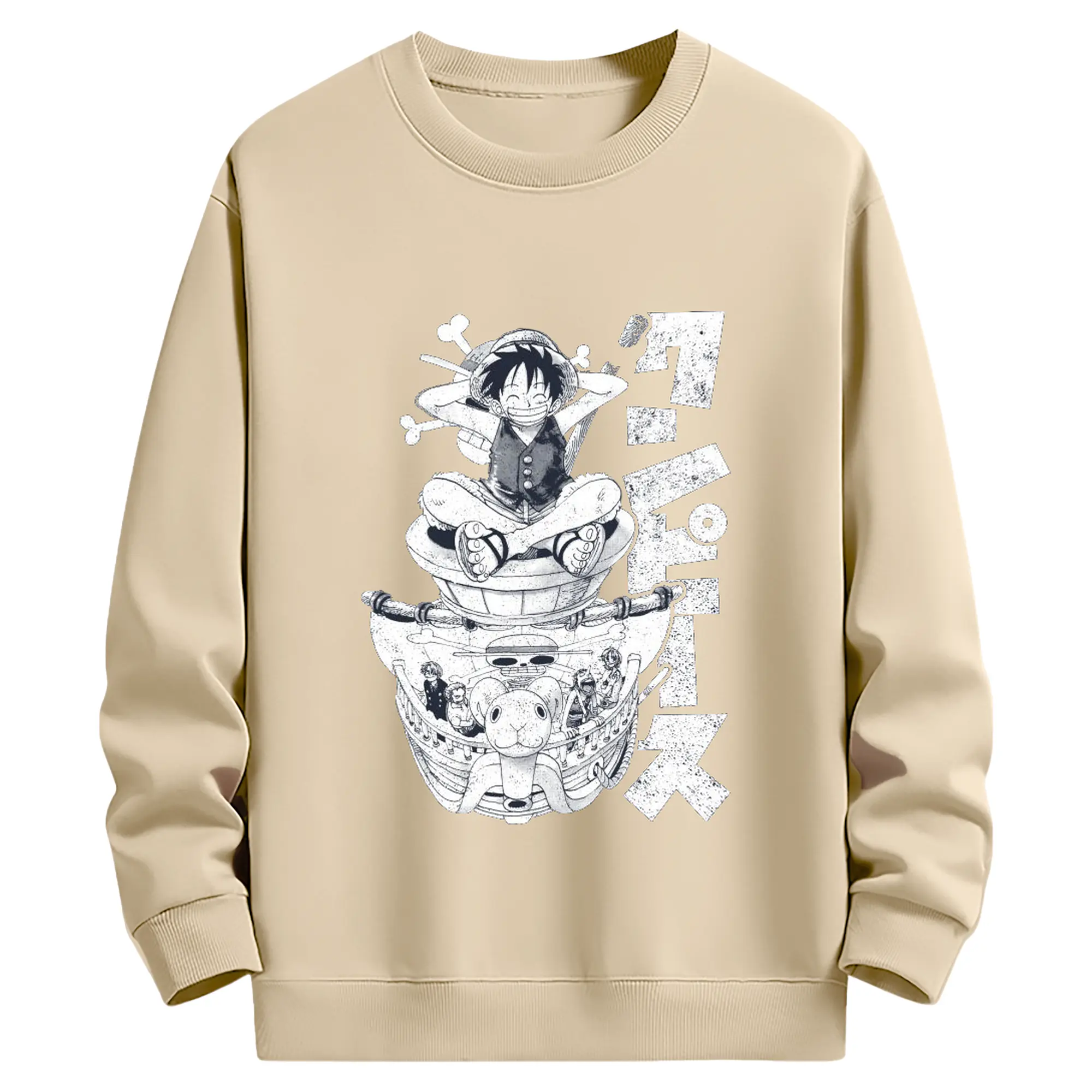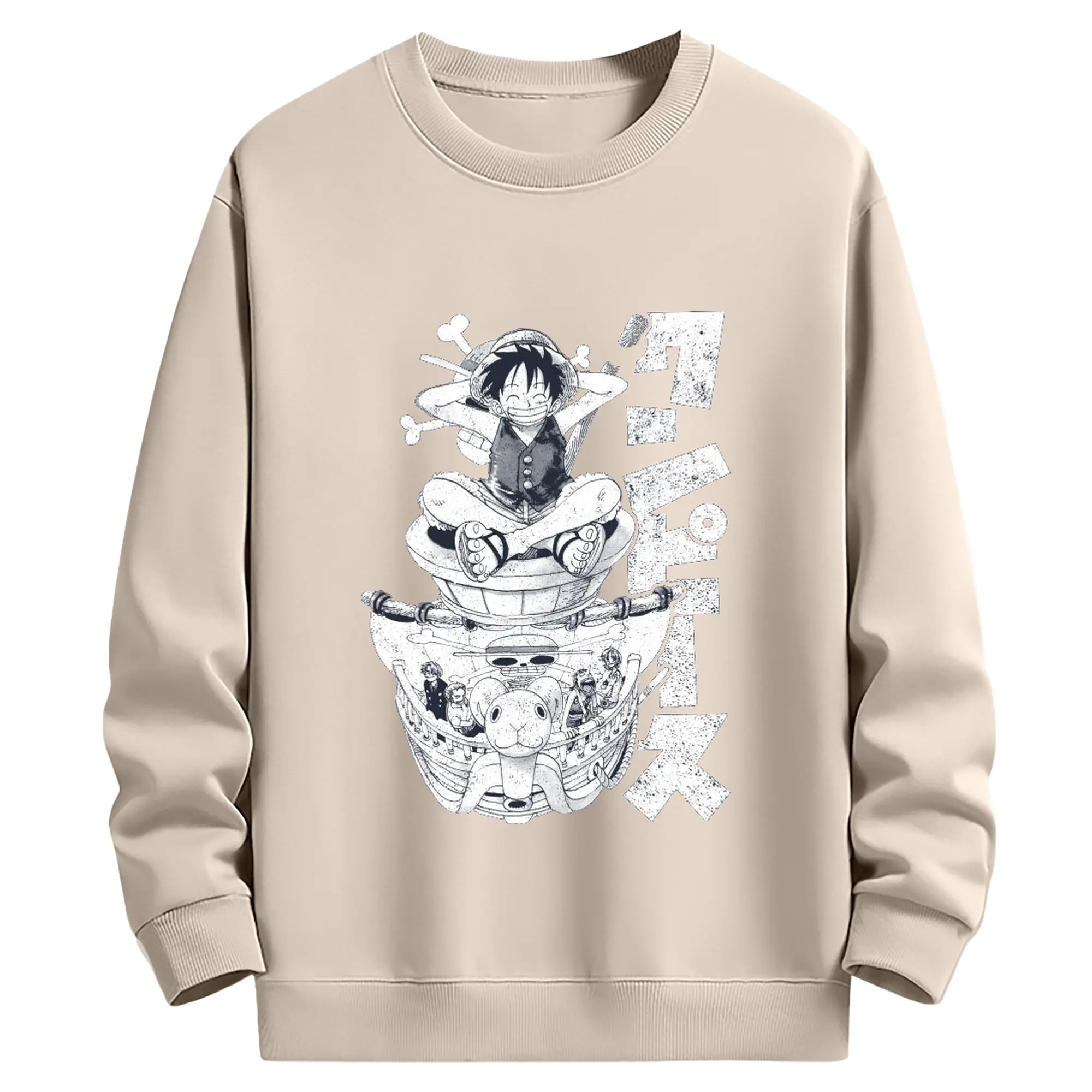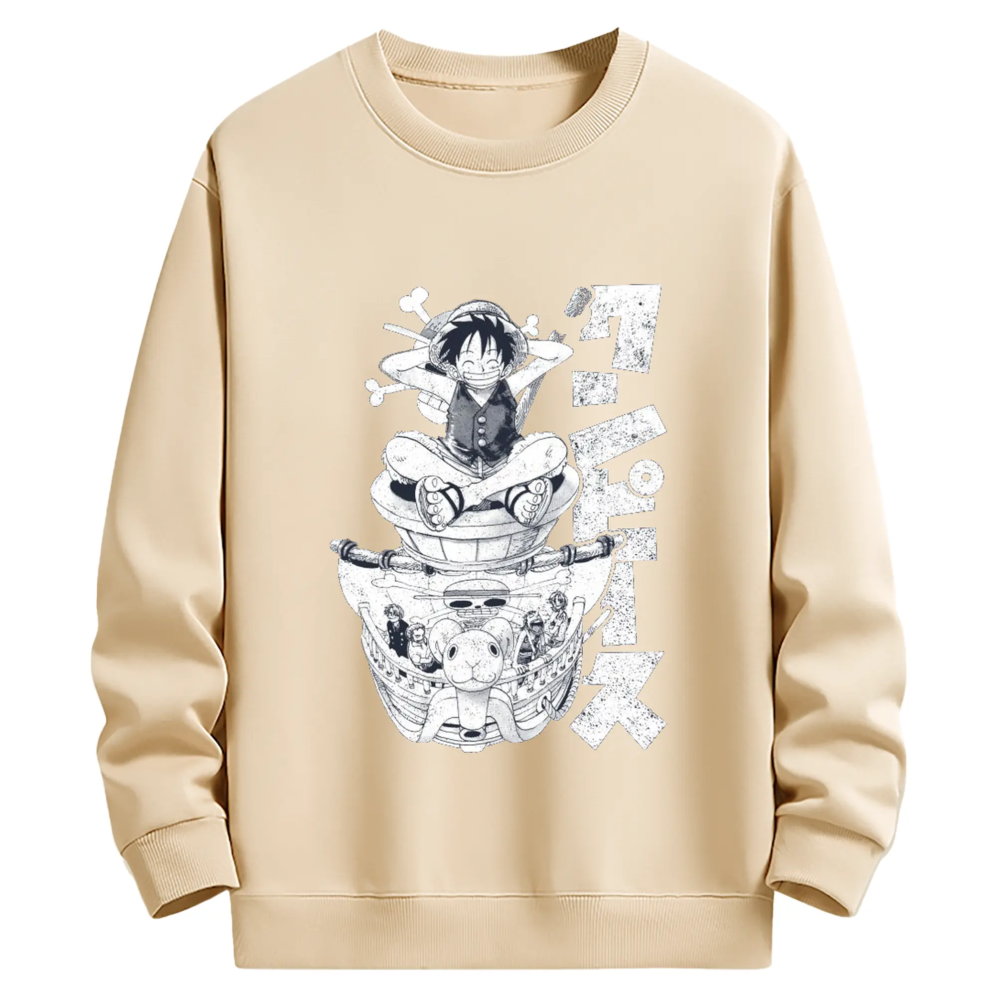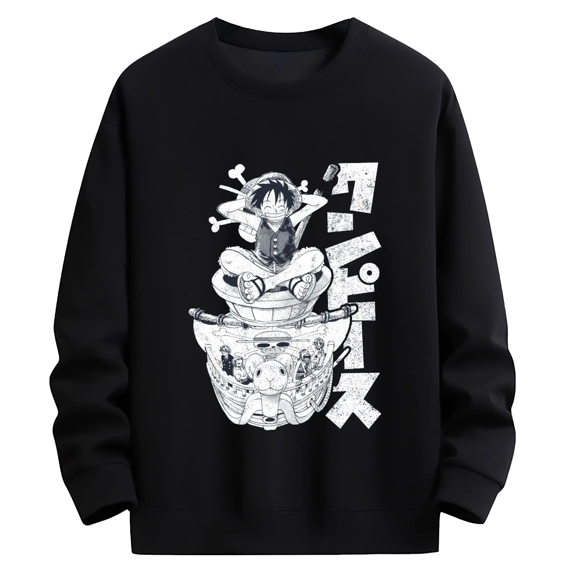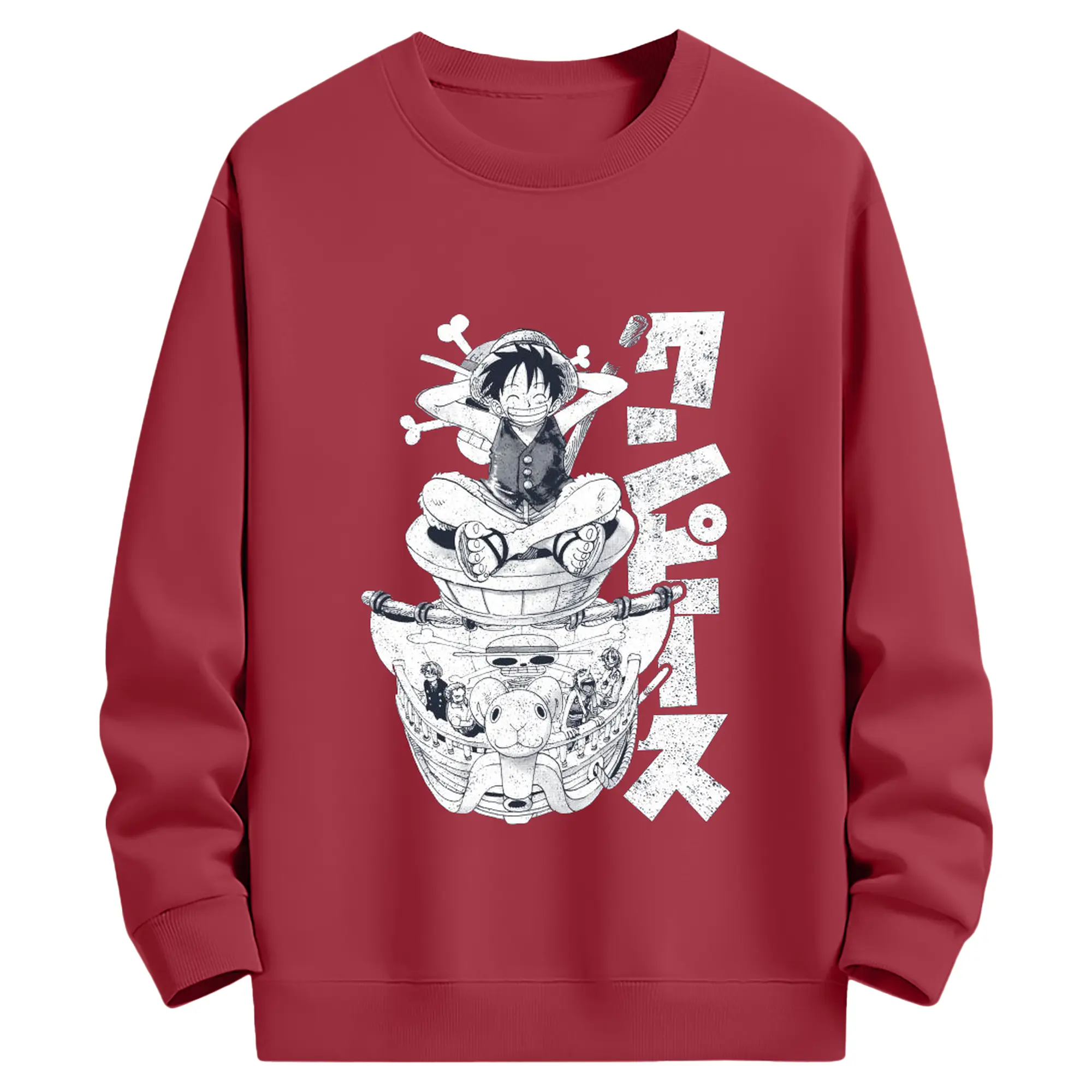 ワンピース モンキー・D・ルフィ - 高品質 クルーネック スウェット ・ コットン59% ポリエステル41% ・ ユニセックス 長袖 トレーナー ・ カジュアル デイリー スポーツ 散歩用
