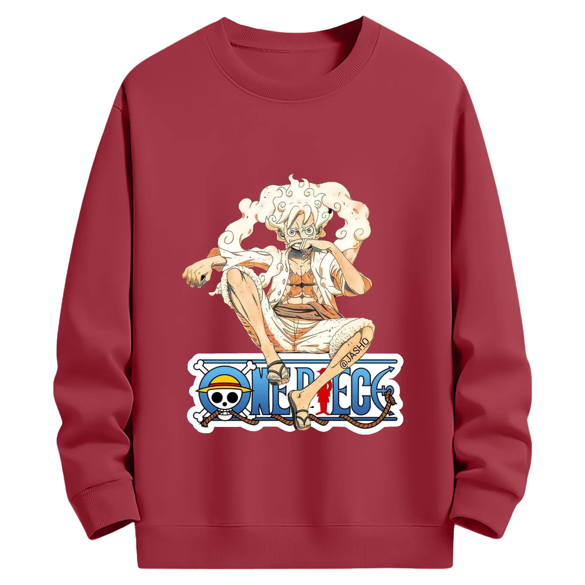 ワンピース モンキー・D・ルフィ - 高品質 クルーネック スウェット ・ コットン59% ポリエステル41% ・ ユニセックス 長袖 トレーナー ・ カジュアル デイリー スポーツ 散歩用