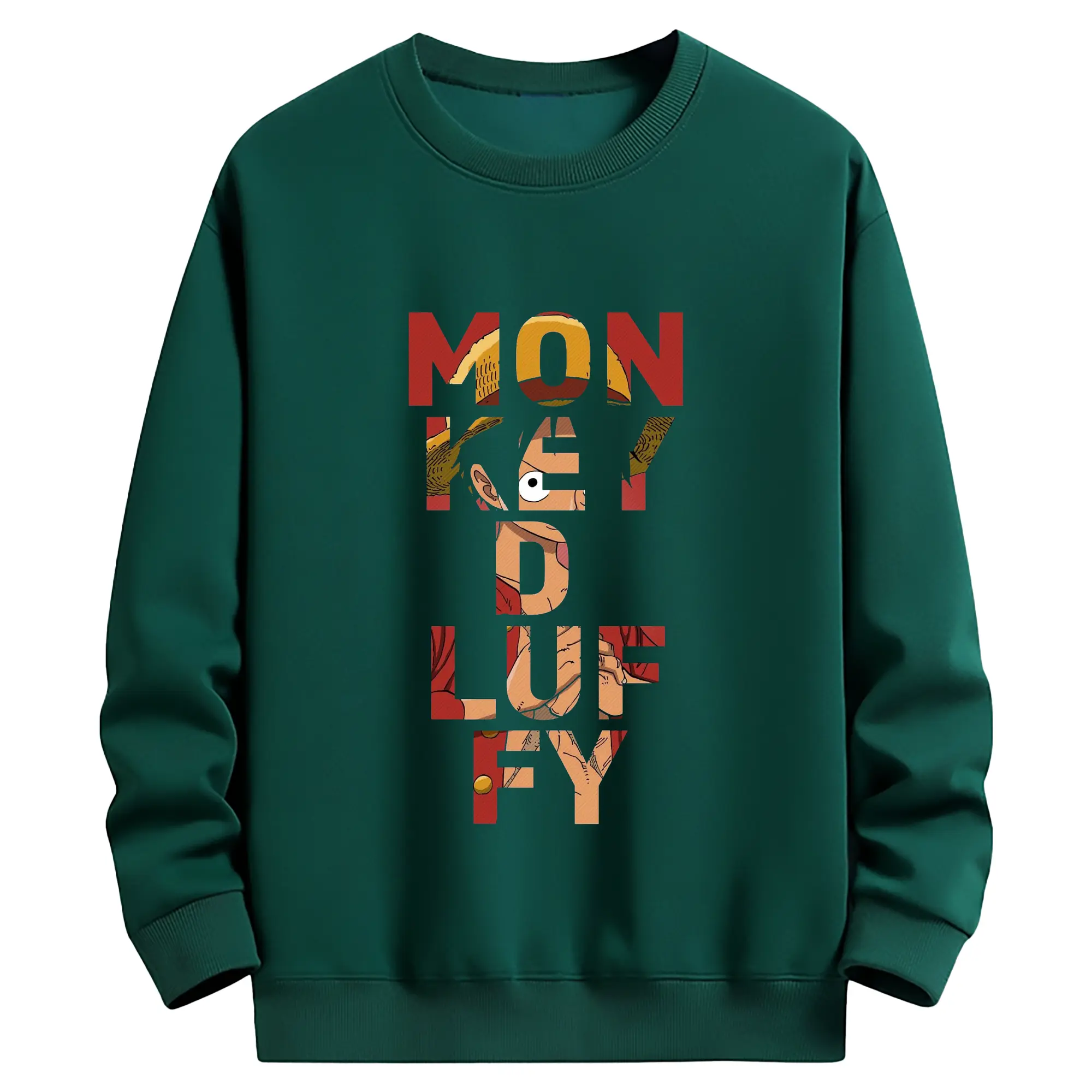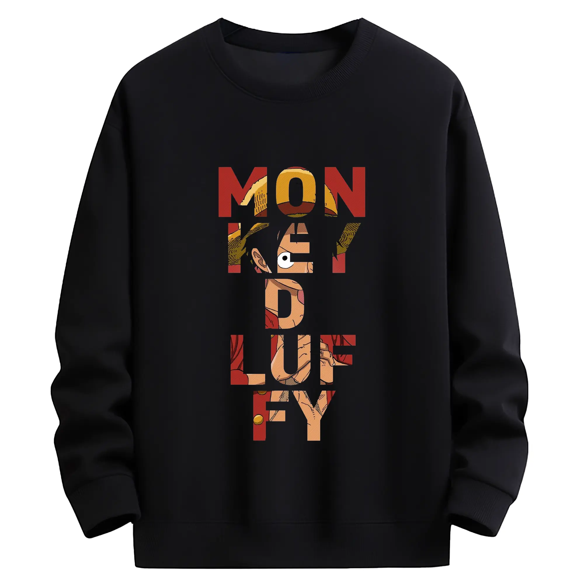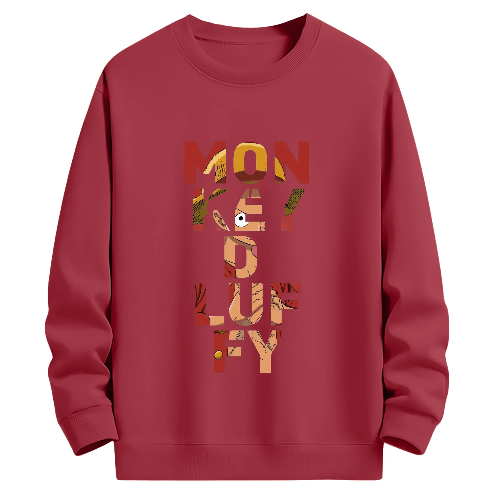 ワンピース モンキー・D・ルフィ - 高品質 クルーネック スウェット ・ コットン59% ポリエステル41% ・ ユニセックス 長袖 トレーナー ・ カジュアル デイリー スポーツ 散歩用