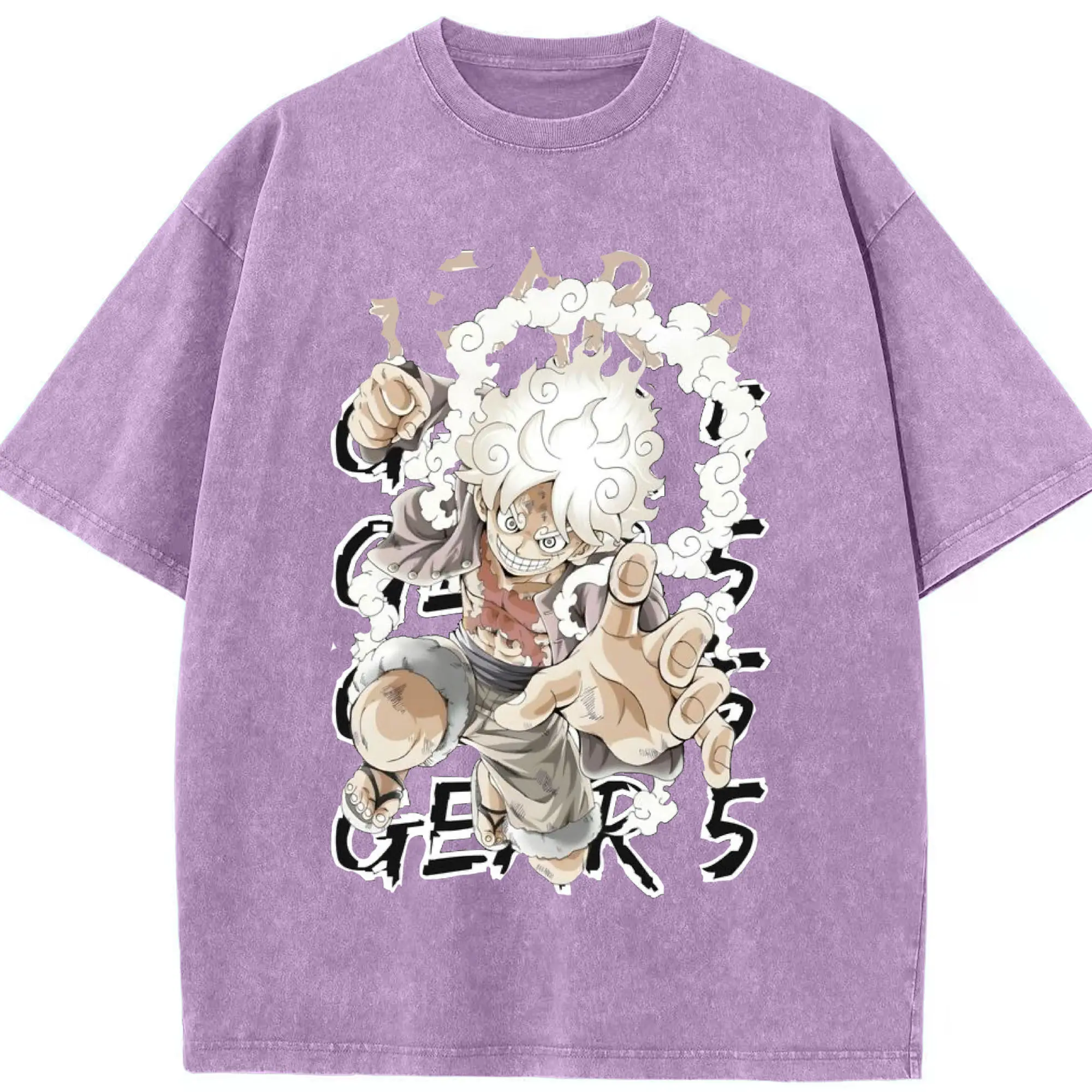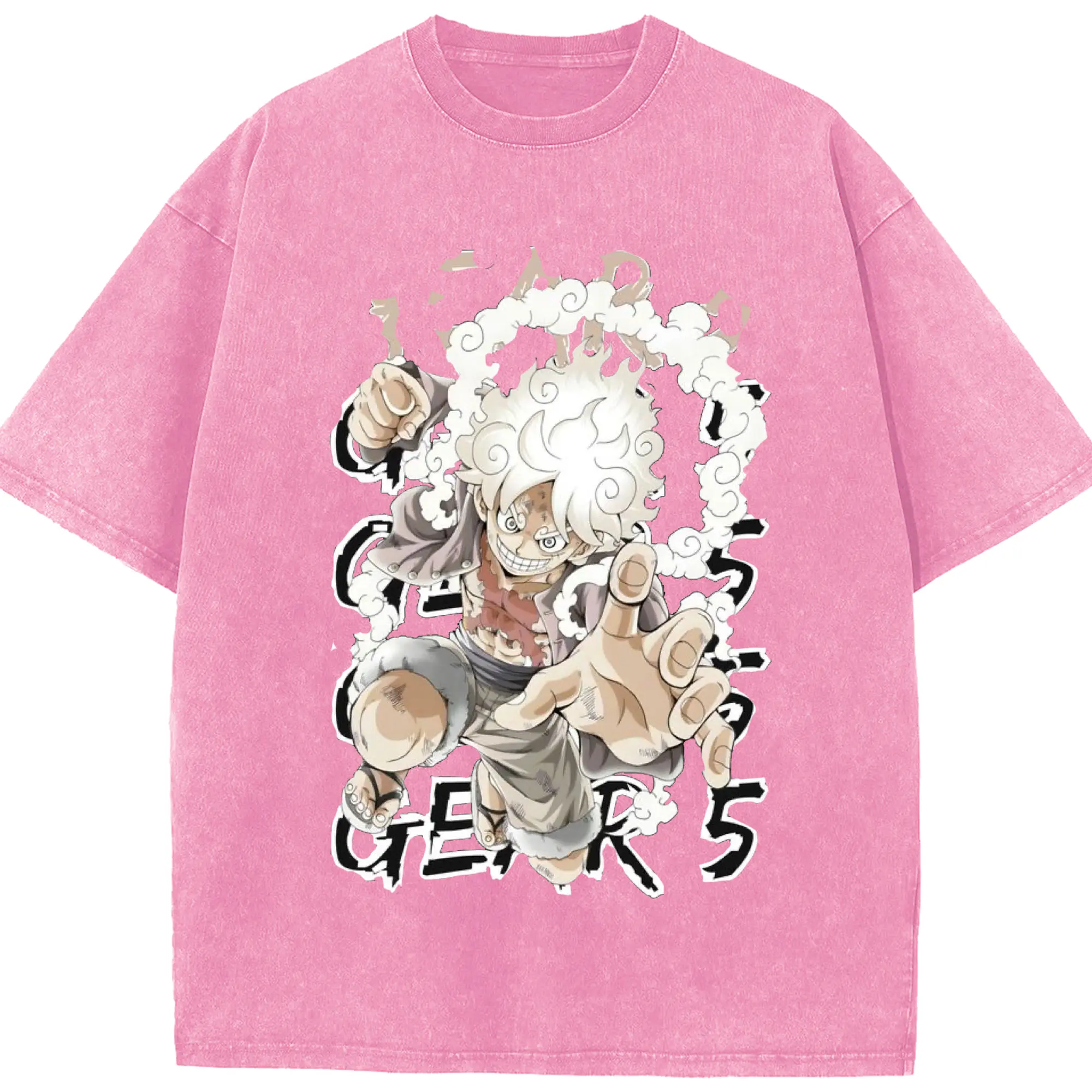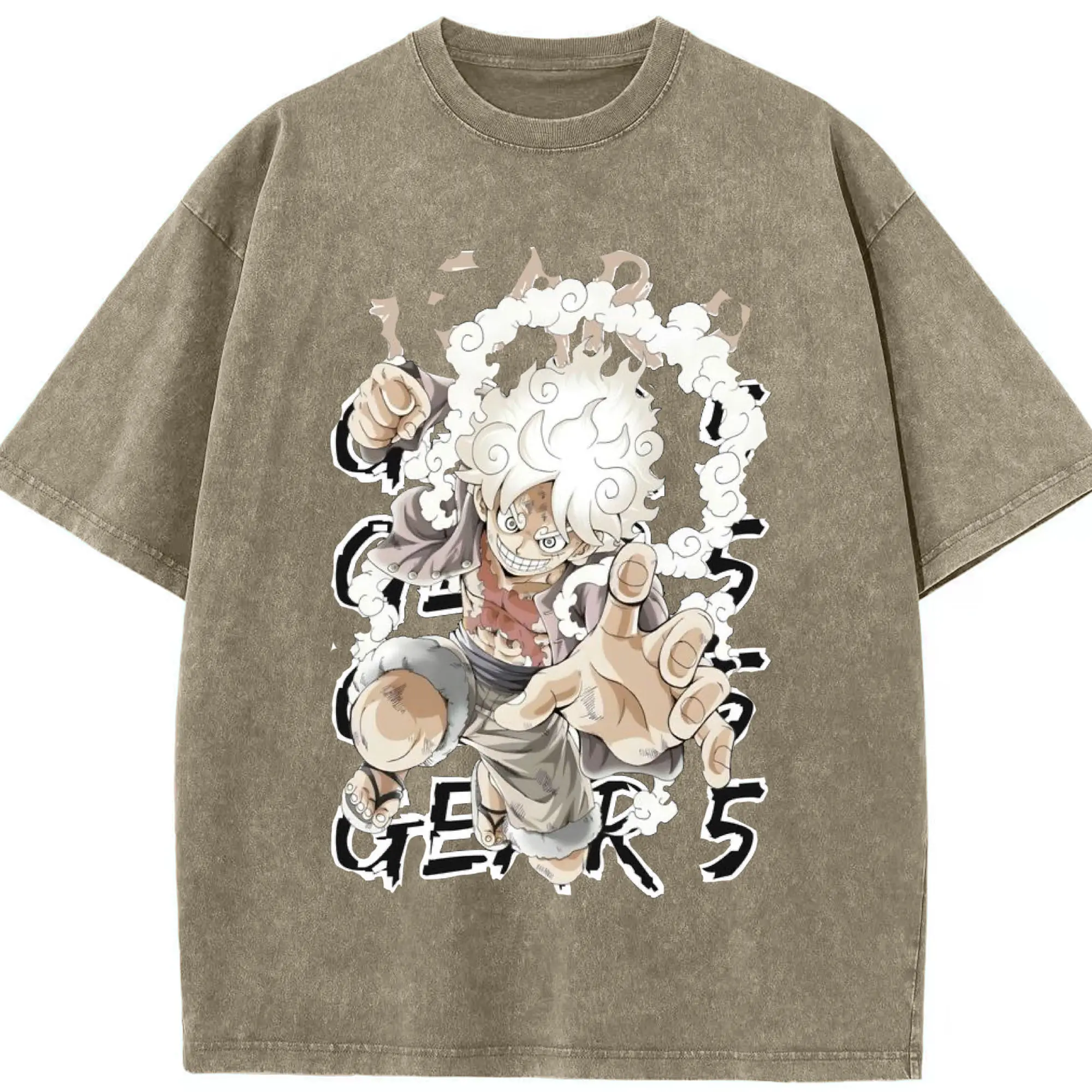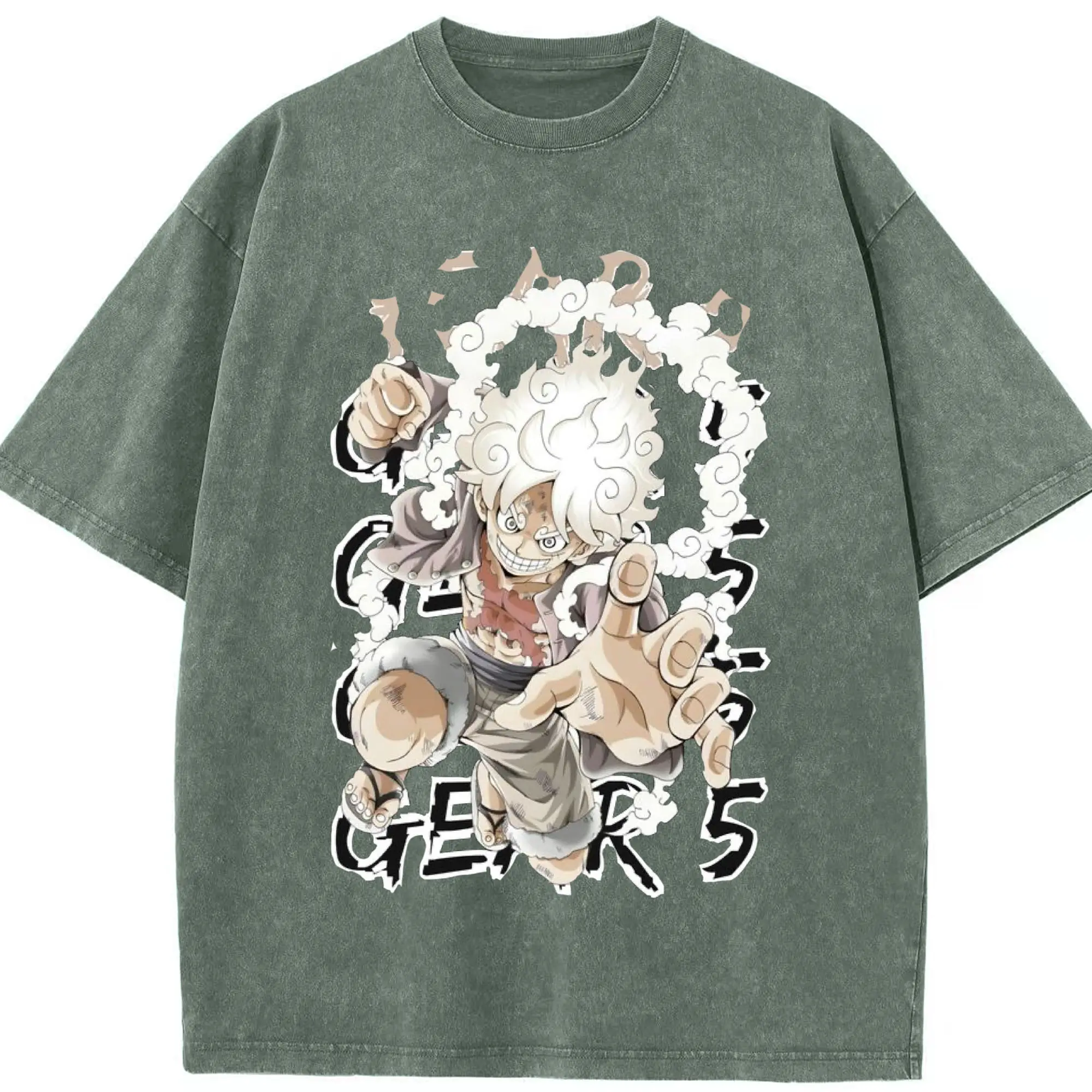 ワンピース モンキー・D・ルフィ - 綿100% ヴィンテージ風 半袖Tシャツ ・ フロントプリント ・ 柔らか肌触り ・ 通気性 快適 ・ スポーツ カジュアル 外出用