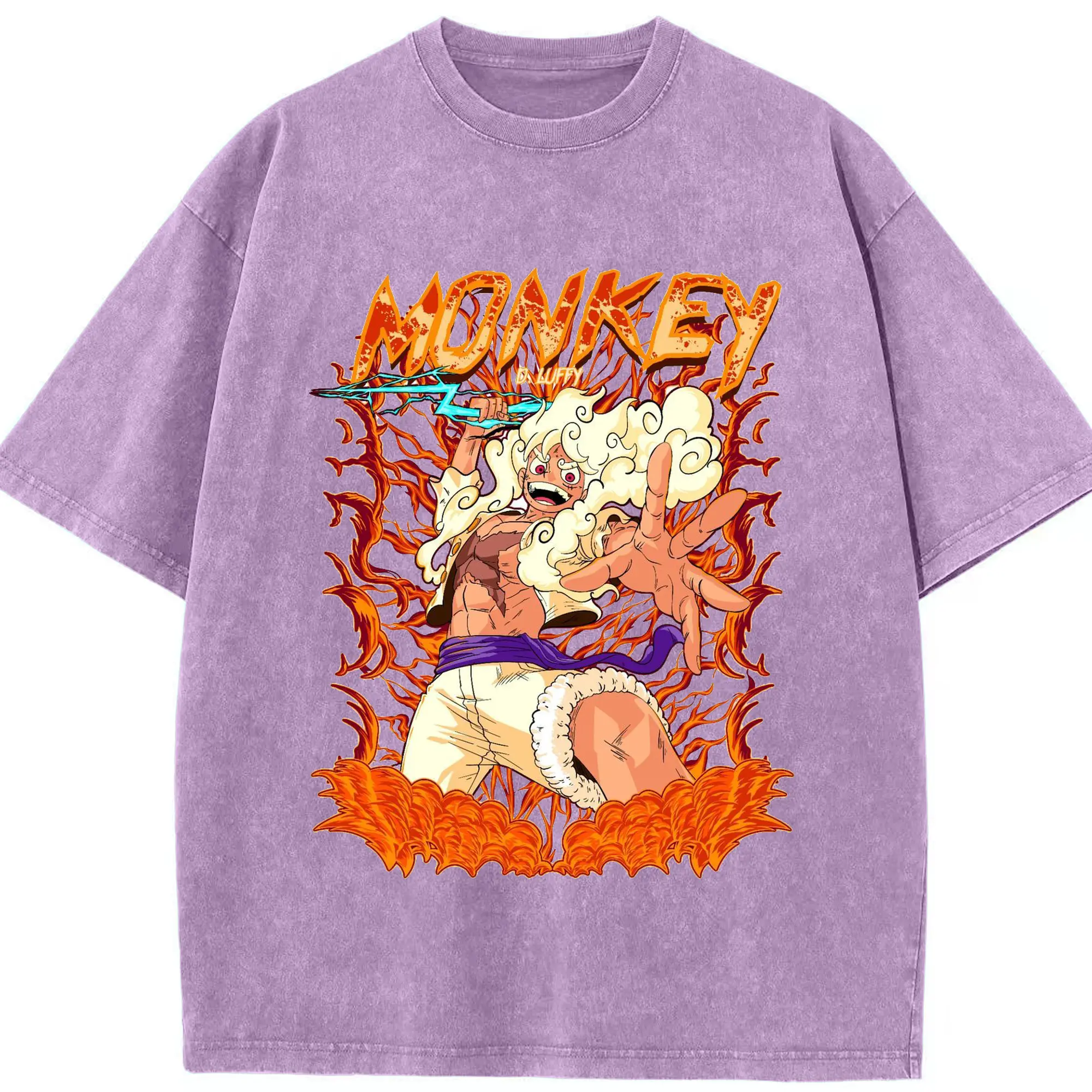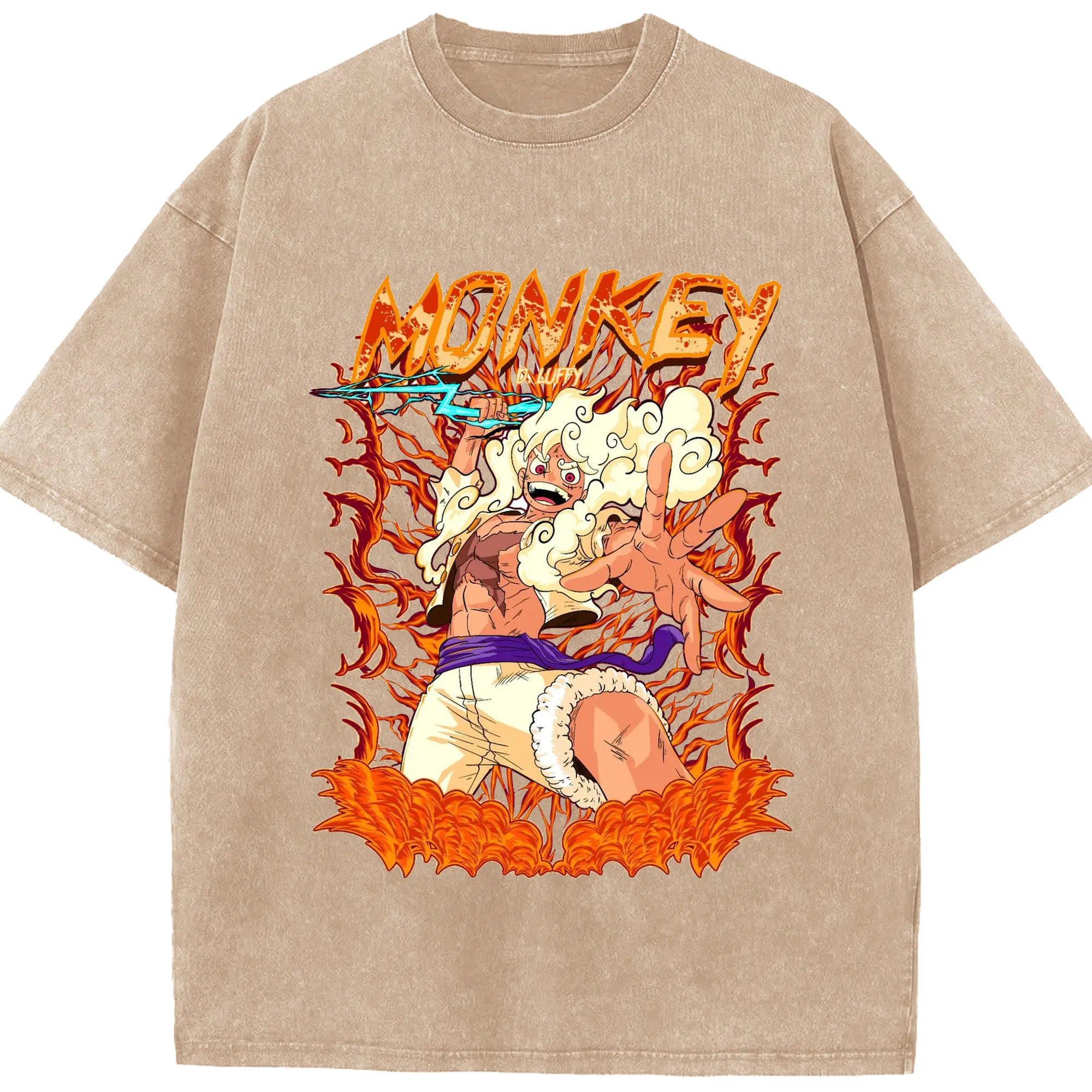 ワンピース モンキー・D・ルフィ - 綿100% ヴィンテージ風 半袖Tシャツ ・ フロントプリント ・ 柔らか肌触り ・ 通気性 快適 ・ スポーツ カジュアル 外出用