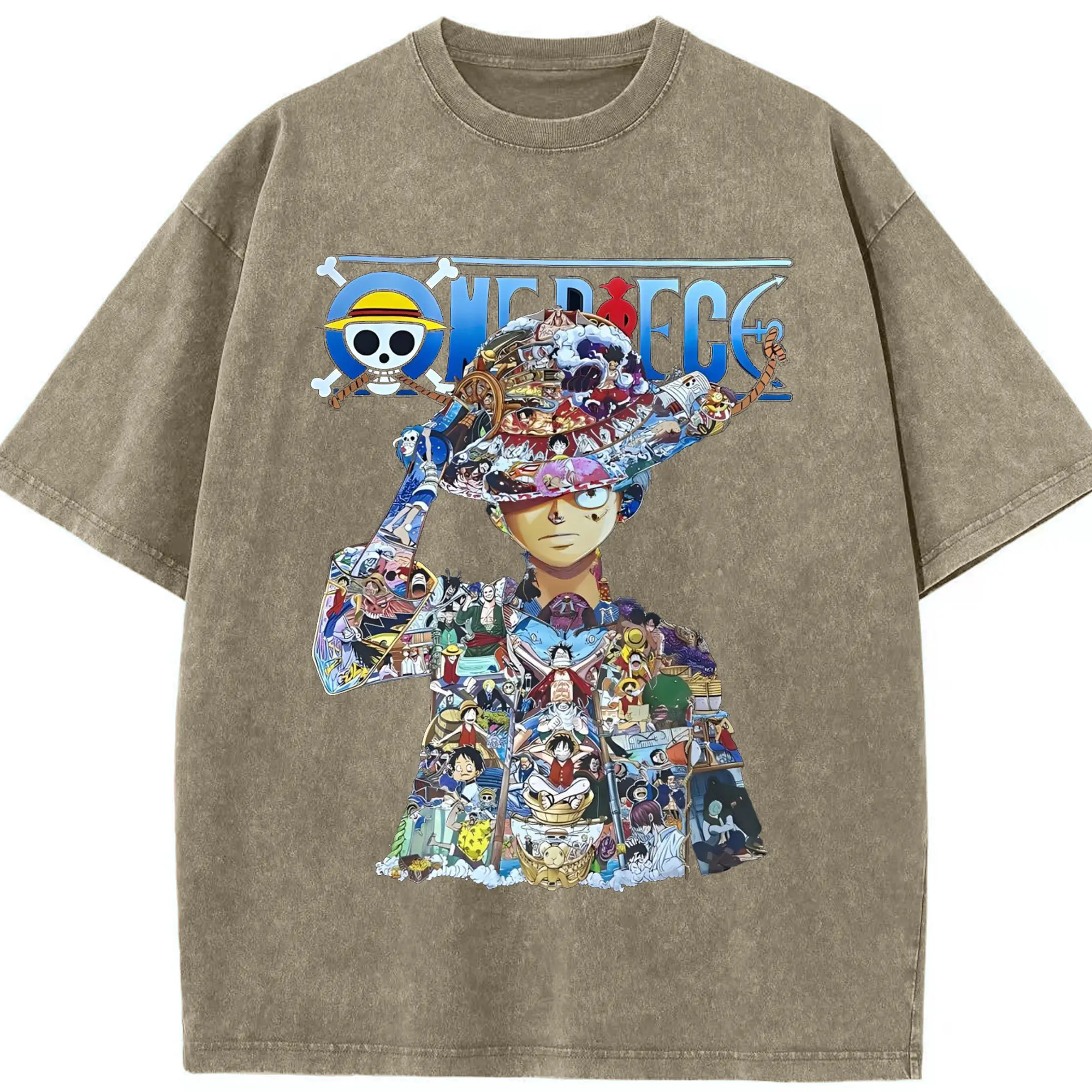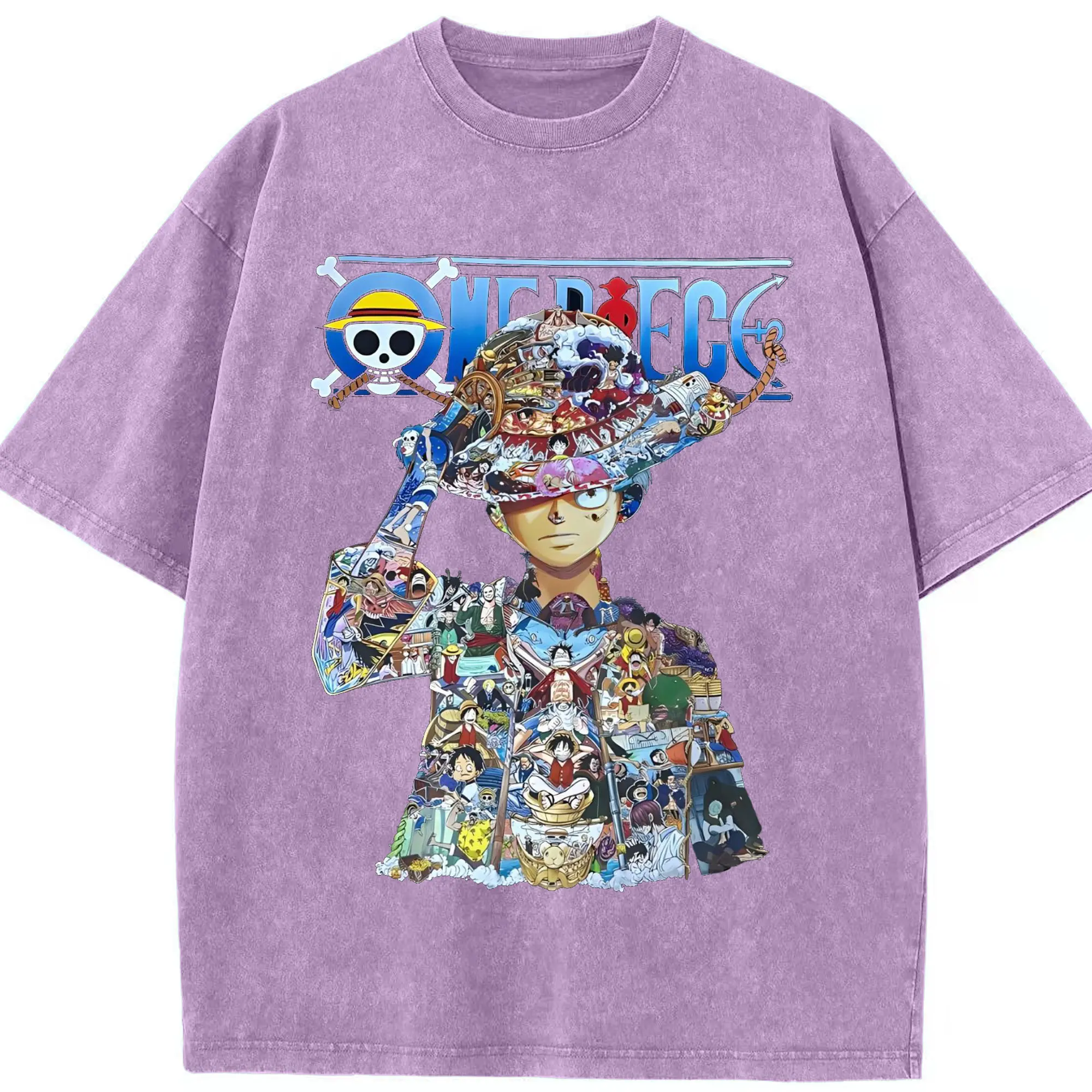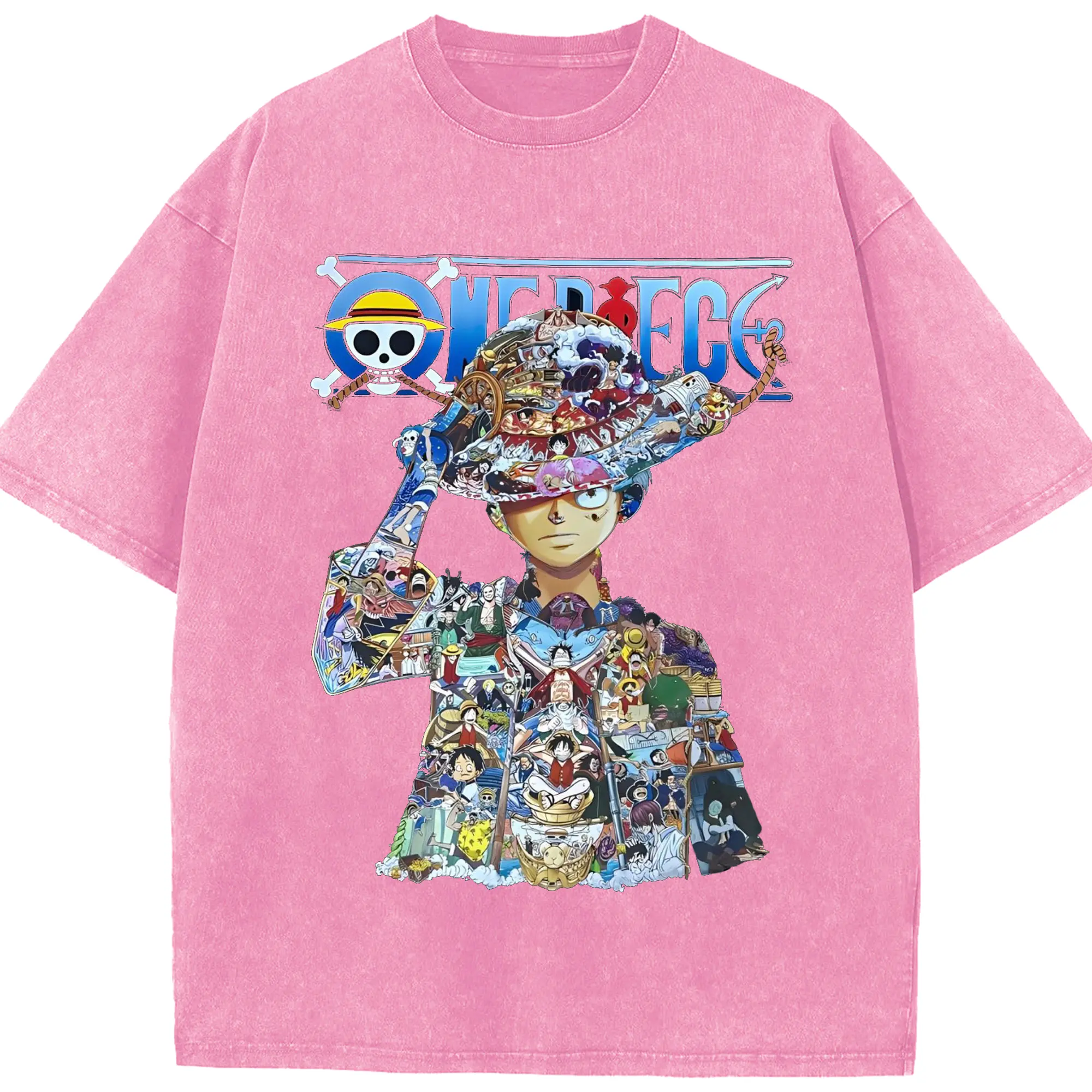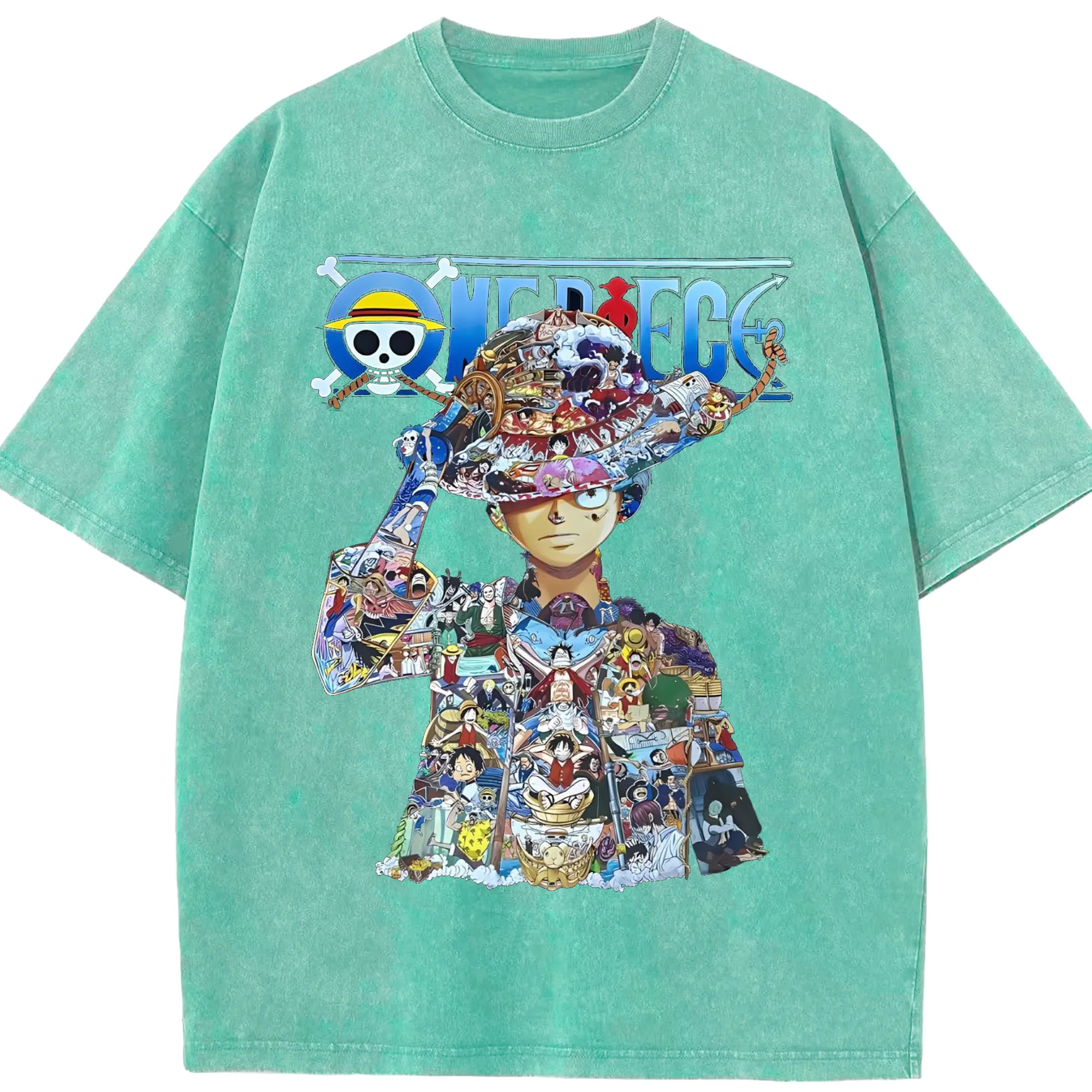 ワンピース モンキー・D・ルフィ - 綿100% ヴィンテージ風 半袖Tシャツ ・ フロントプリント ・ 柔らか肌触り ・ 通気性 快適 ・ スポーツ カジュアル 外出用
